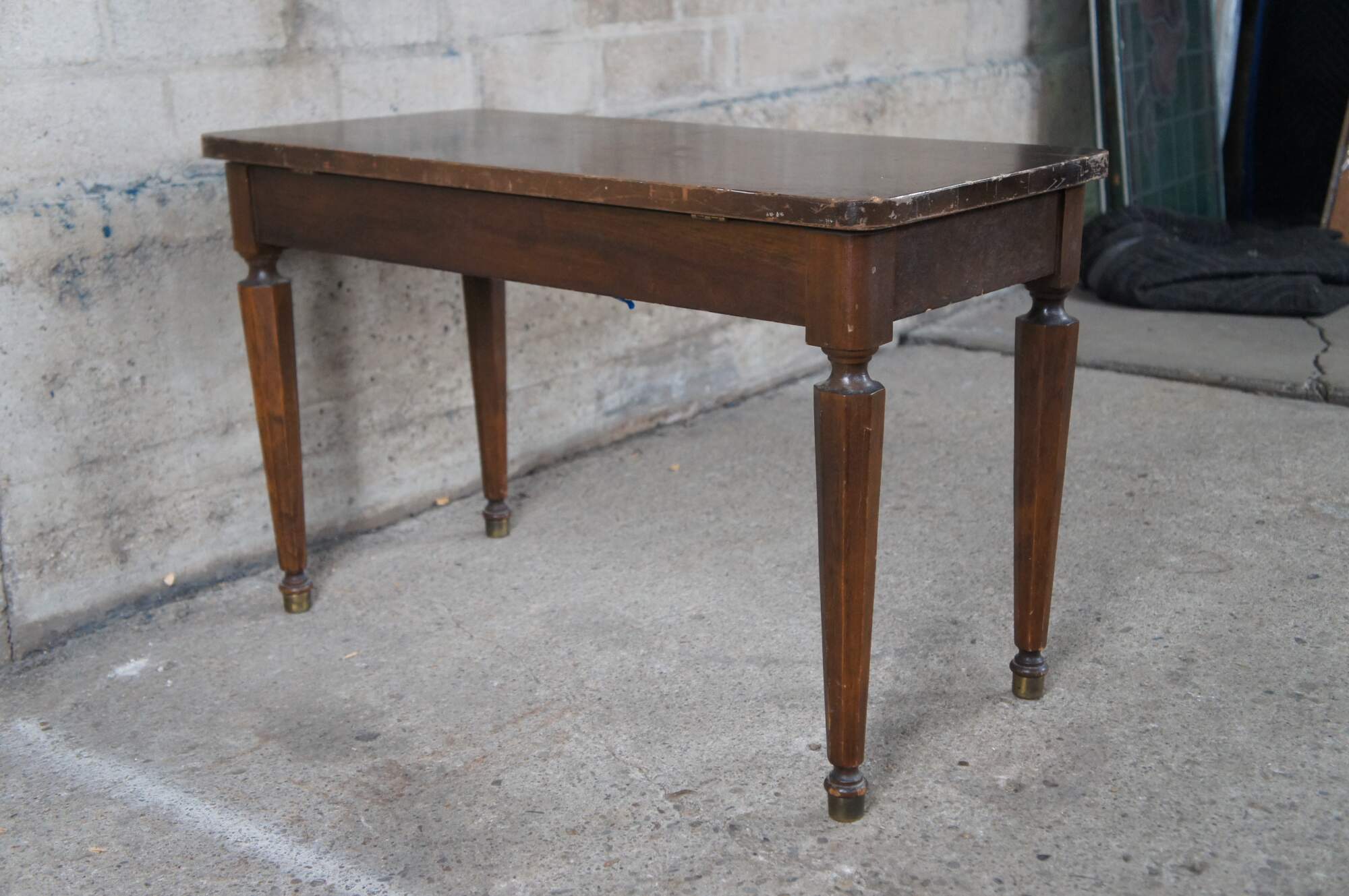 Fair; heavy wear from use and age. Scratching, scuffing and veneer loss