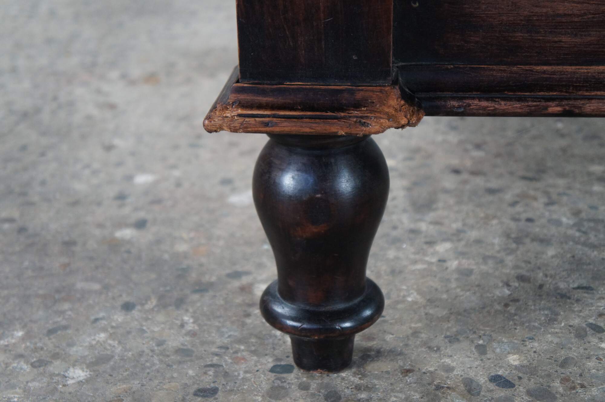Good Condition; some finish wear and edge wear from use and age, rubbing to the finish on the two back panesl of the headboard. Small split on the left side of the back board (doesn't affect structure)