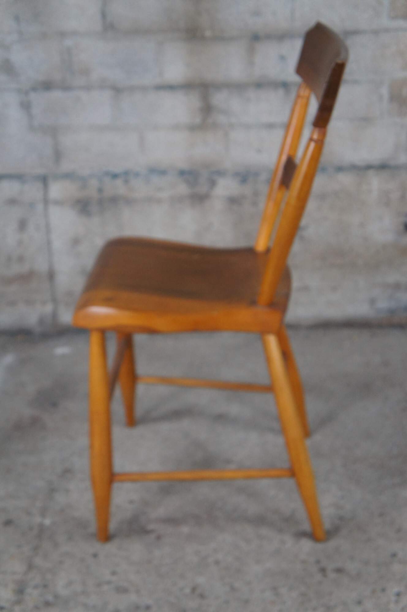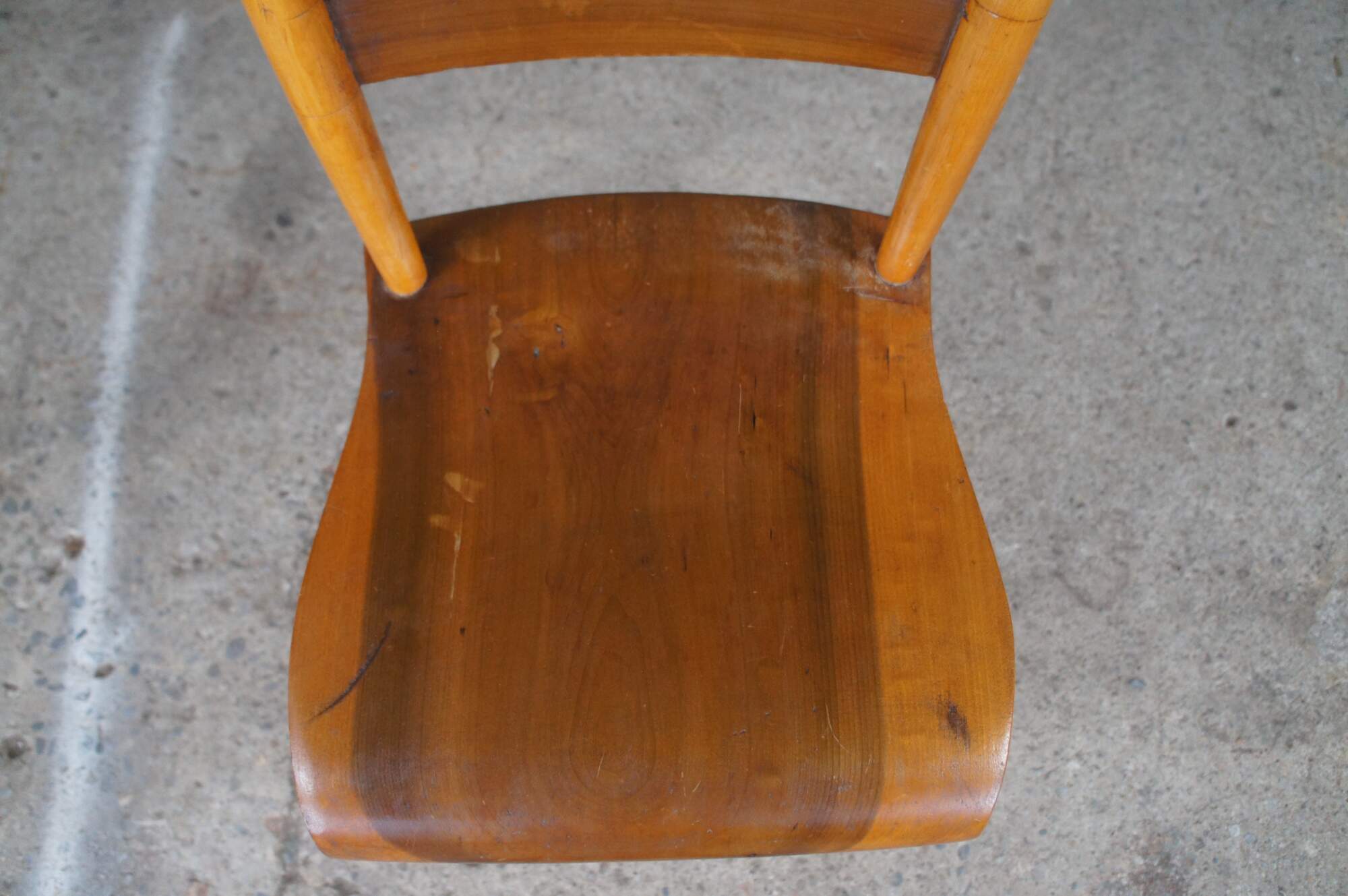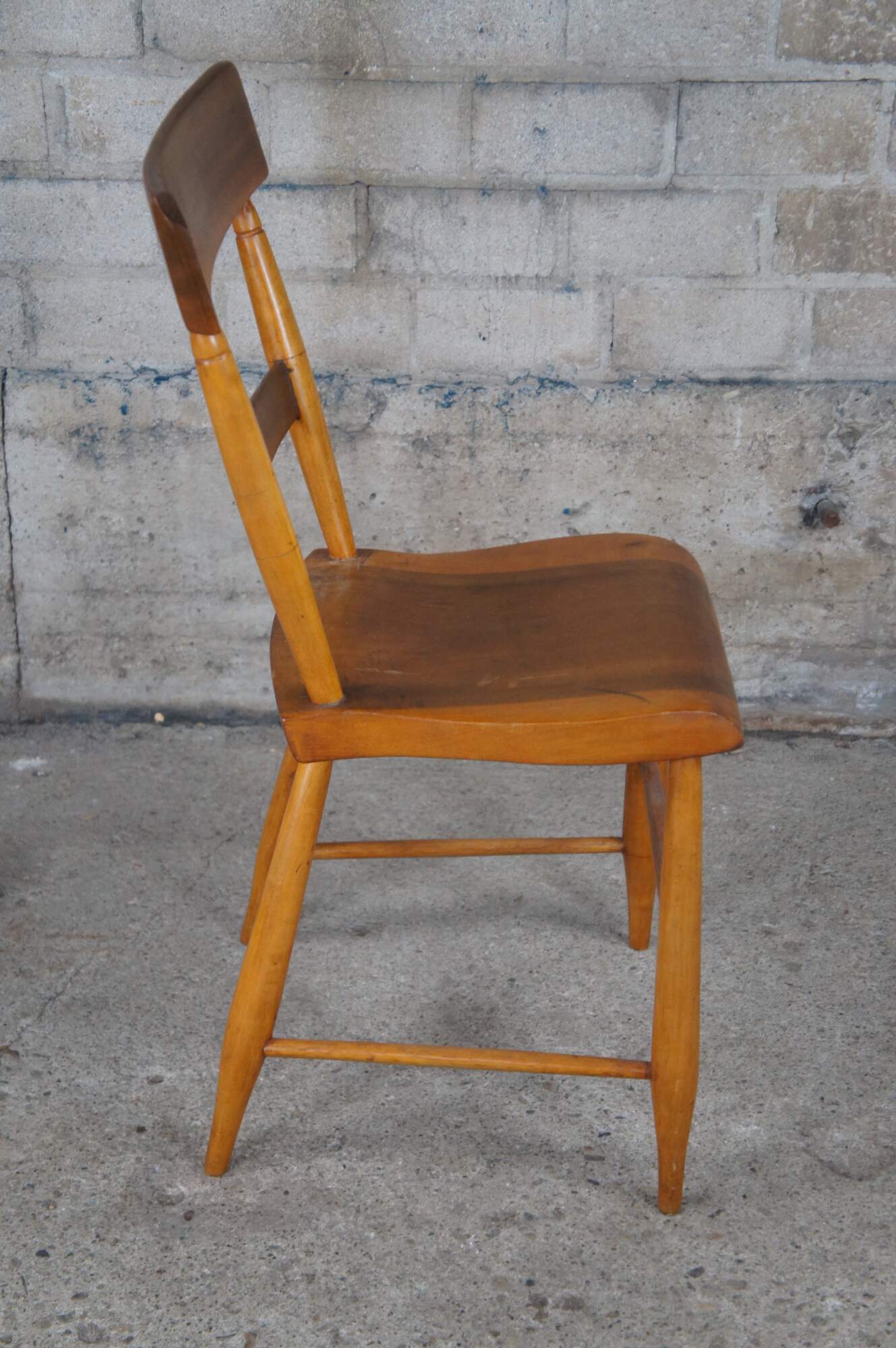 A charming antique side chair. Features a petite size made from maple with a contoured plank seat. A fun addition to any space.