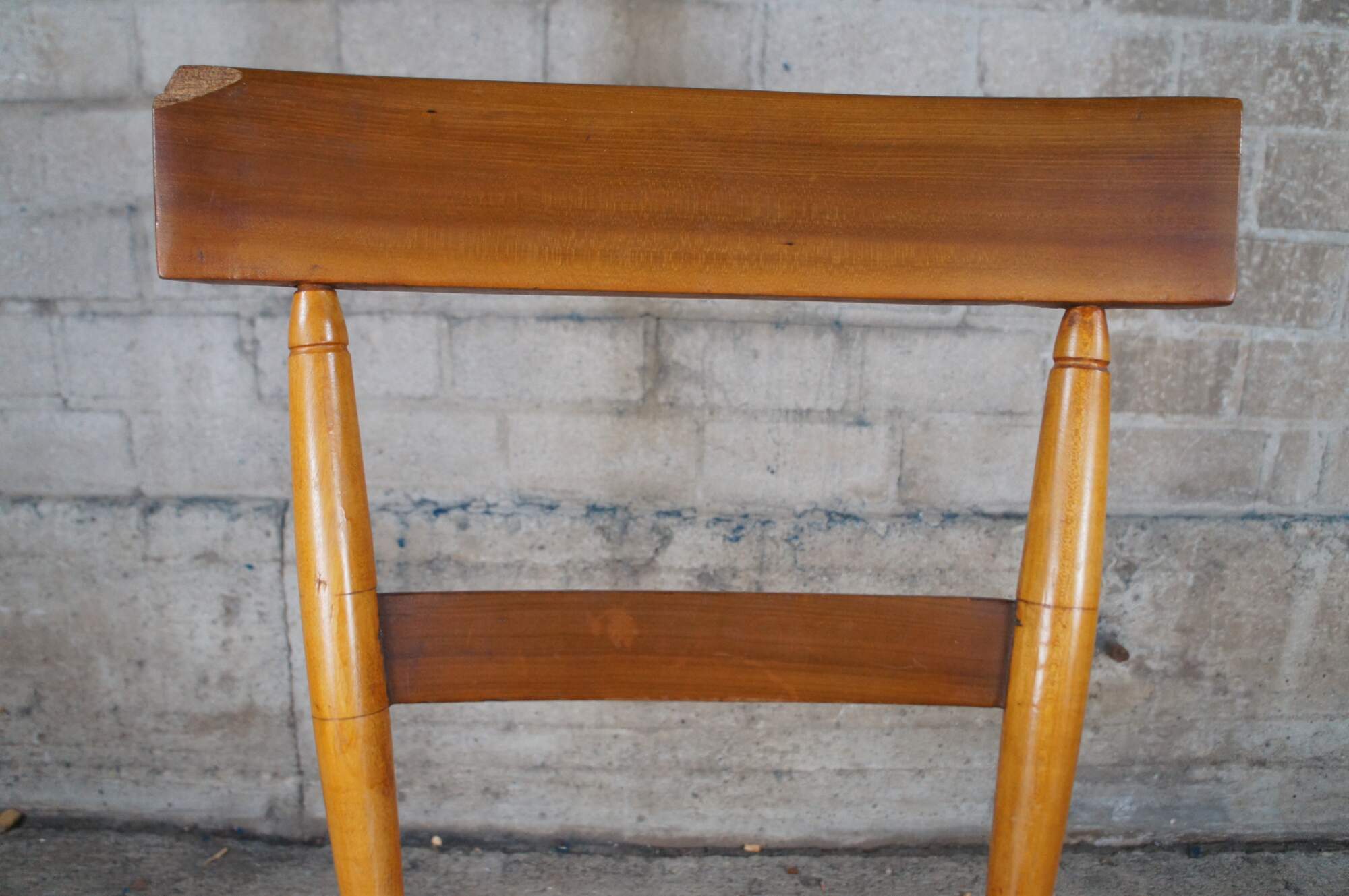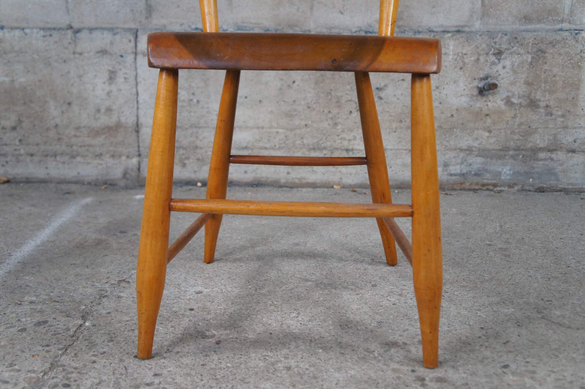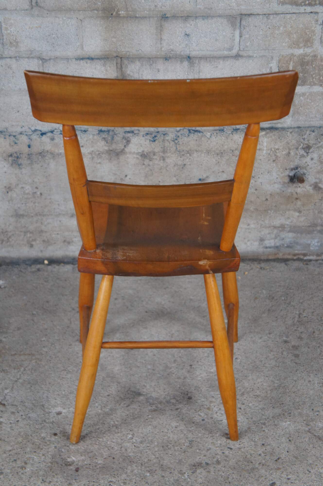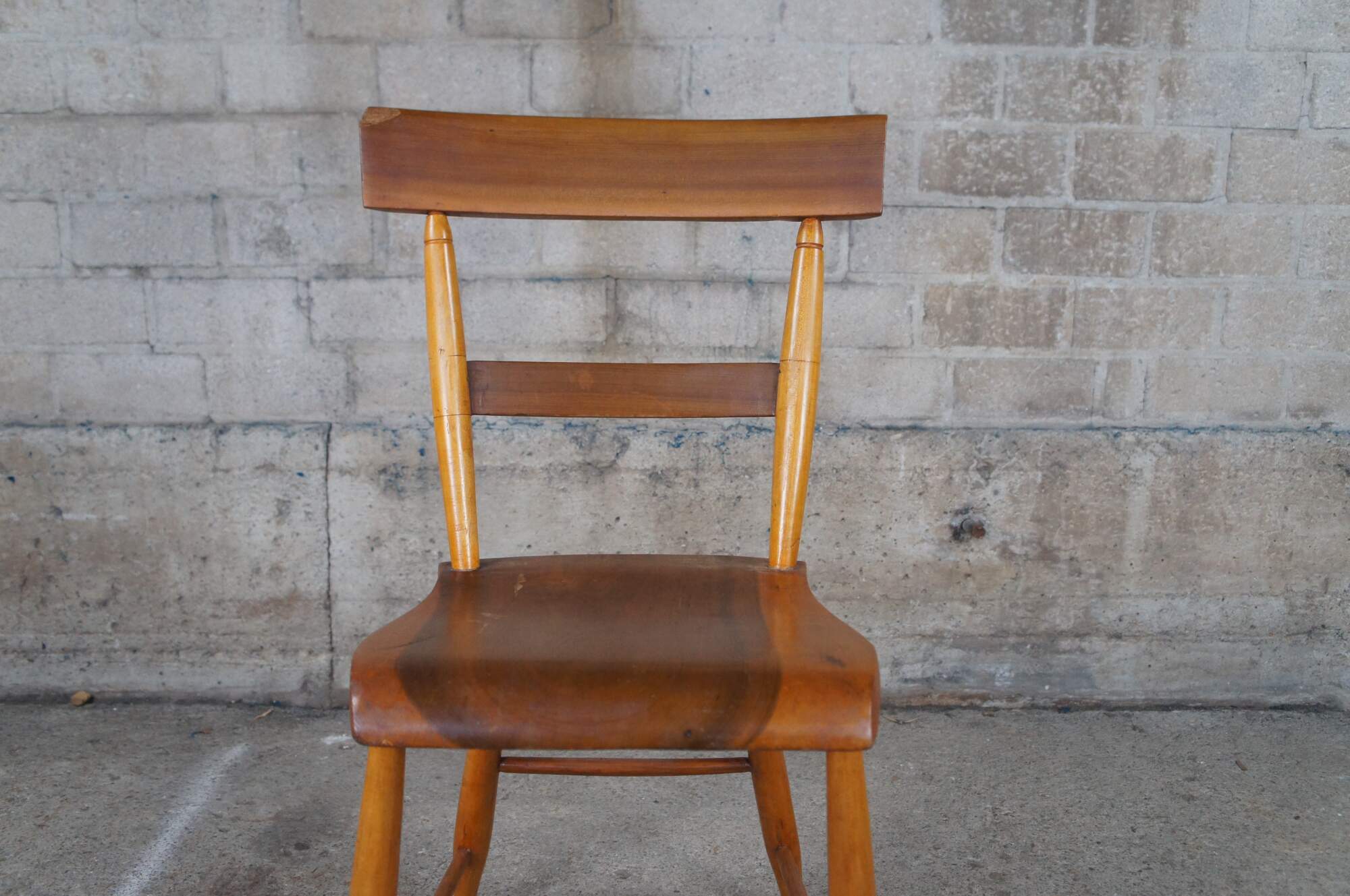 A charming antique side chair. Features a petite size made from maple with a contoured plank seat. A fun addition to any space.