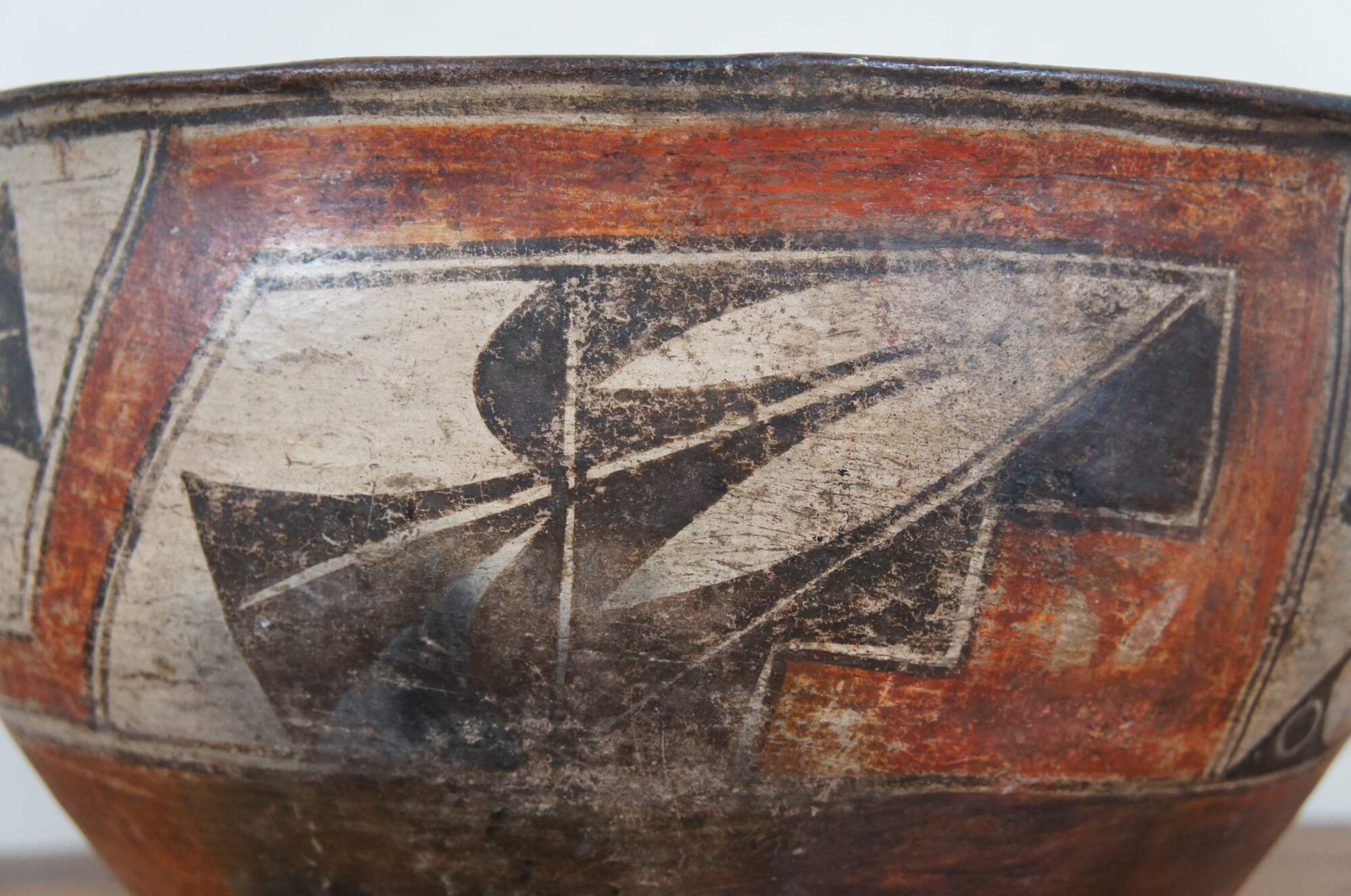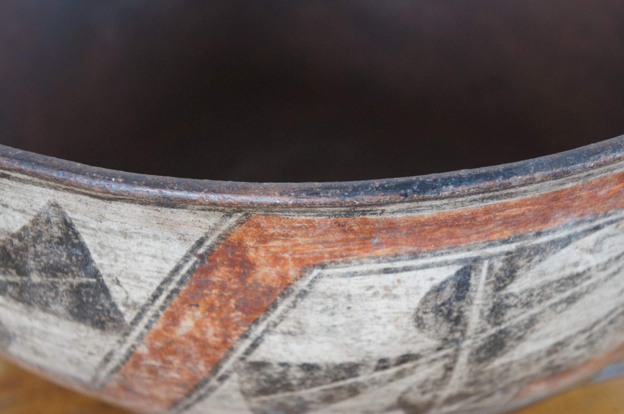 Very large and impressive, circa 1880's, Zia Pueblo polychrome dough bowl. Round shape with slightly tapered base, crafted of red clay, decorated with a band of red, white, and black geometric motifs.