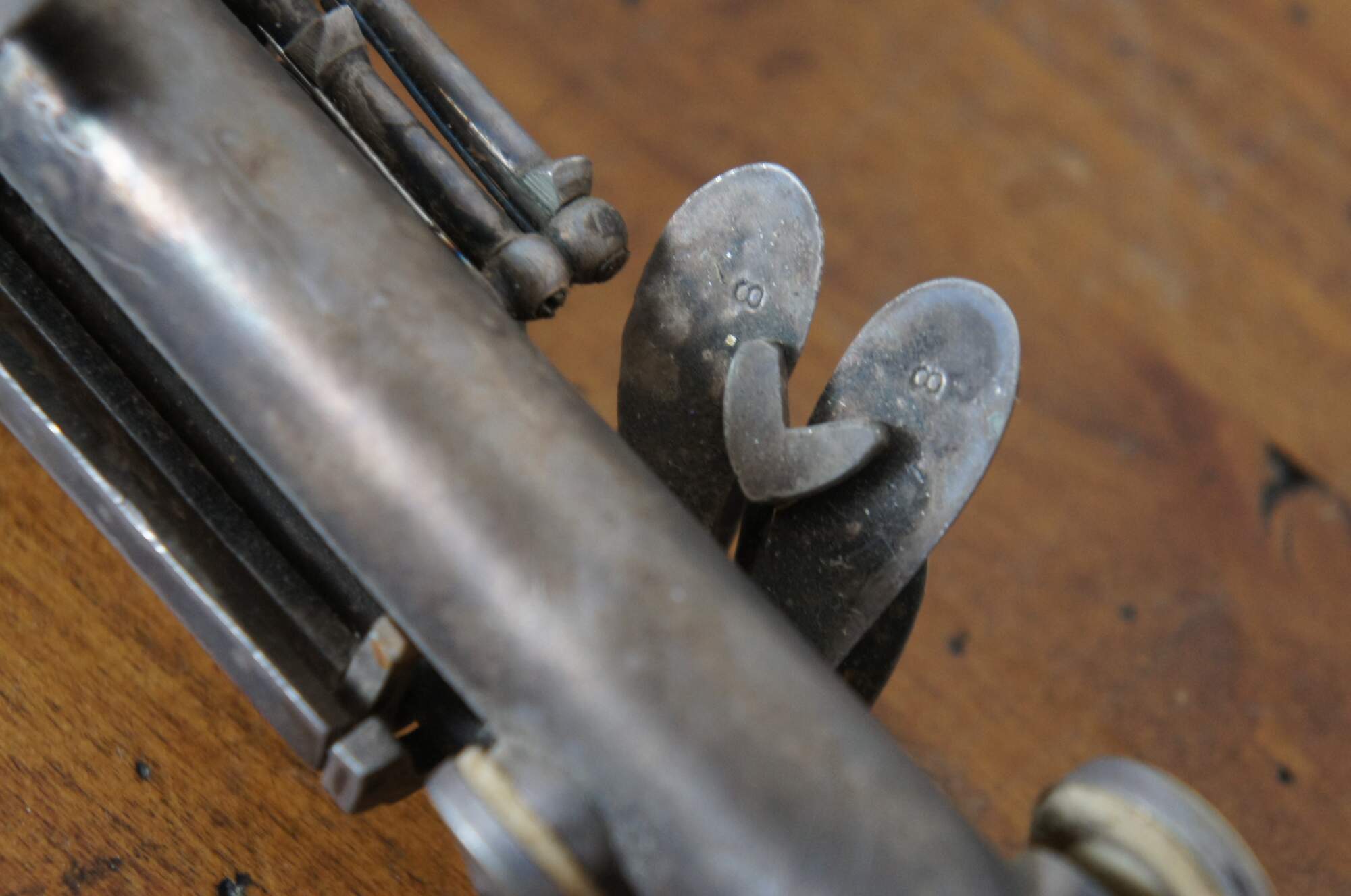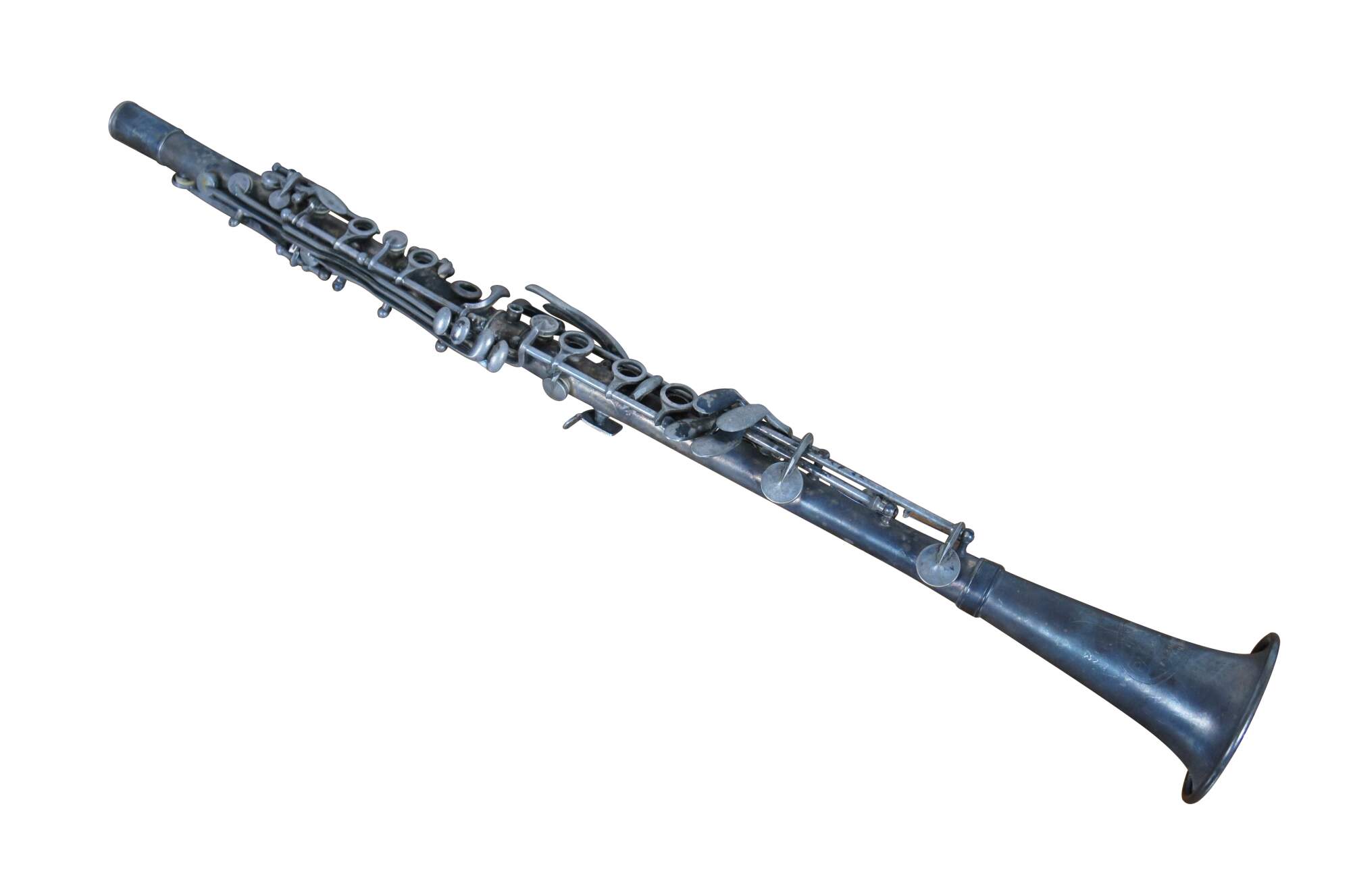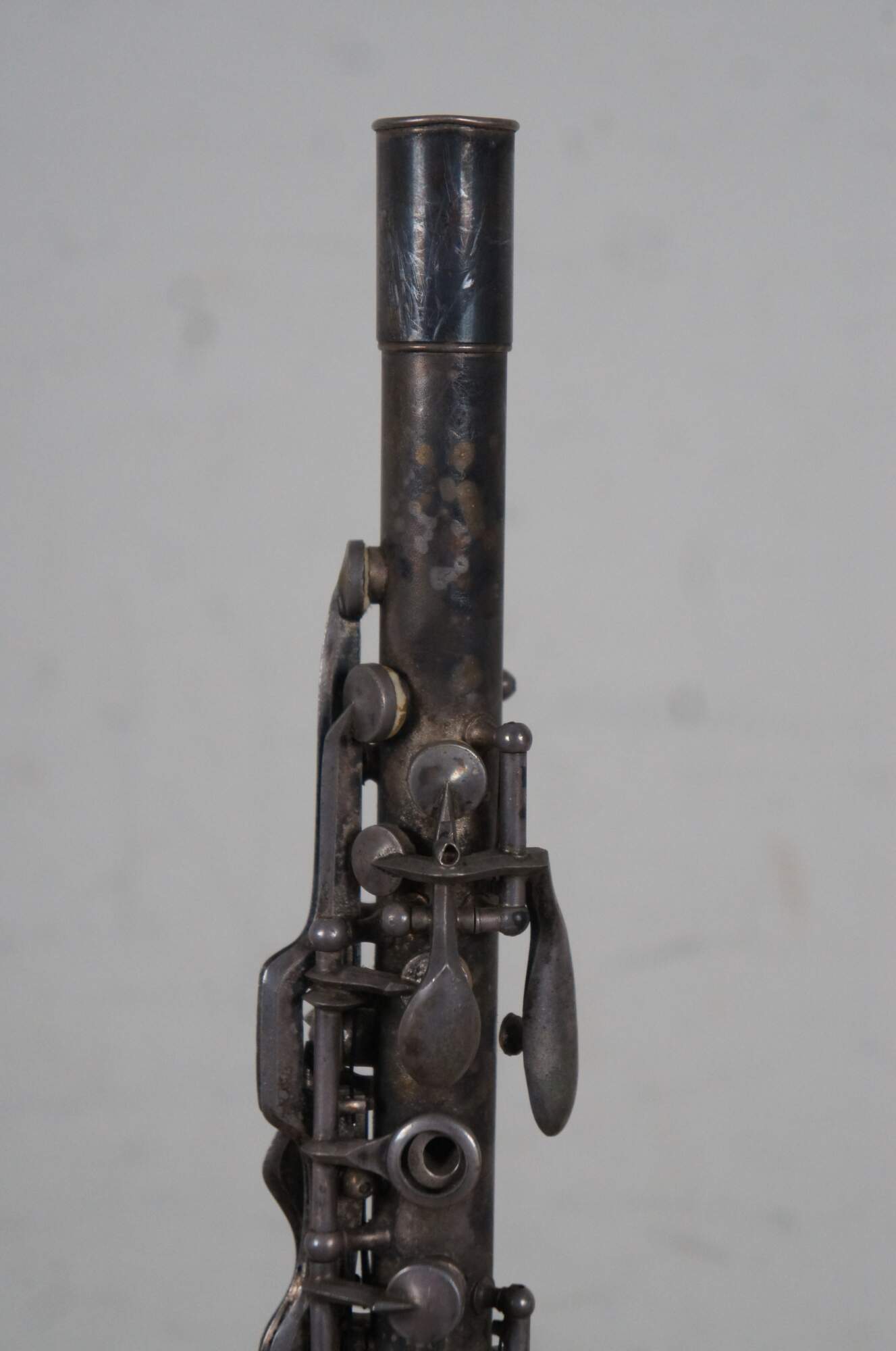 Antique 1920s-1930s Pan American Brilliante metal clarinet made in Elkhart, IN by Conn Instruments. Model 884N - Boehm System, 17 keys, 3 rings, circa 1927-1929 (Source: Conn Loyalist). Numbered 15058. No case.