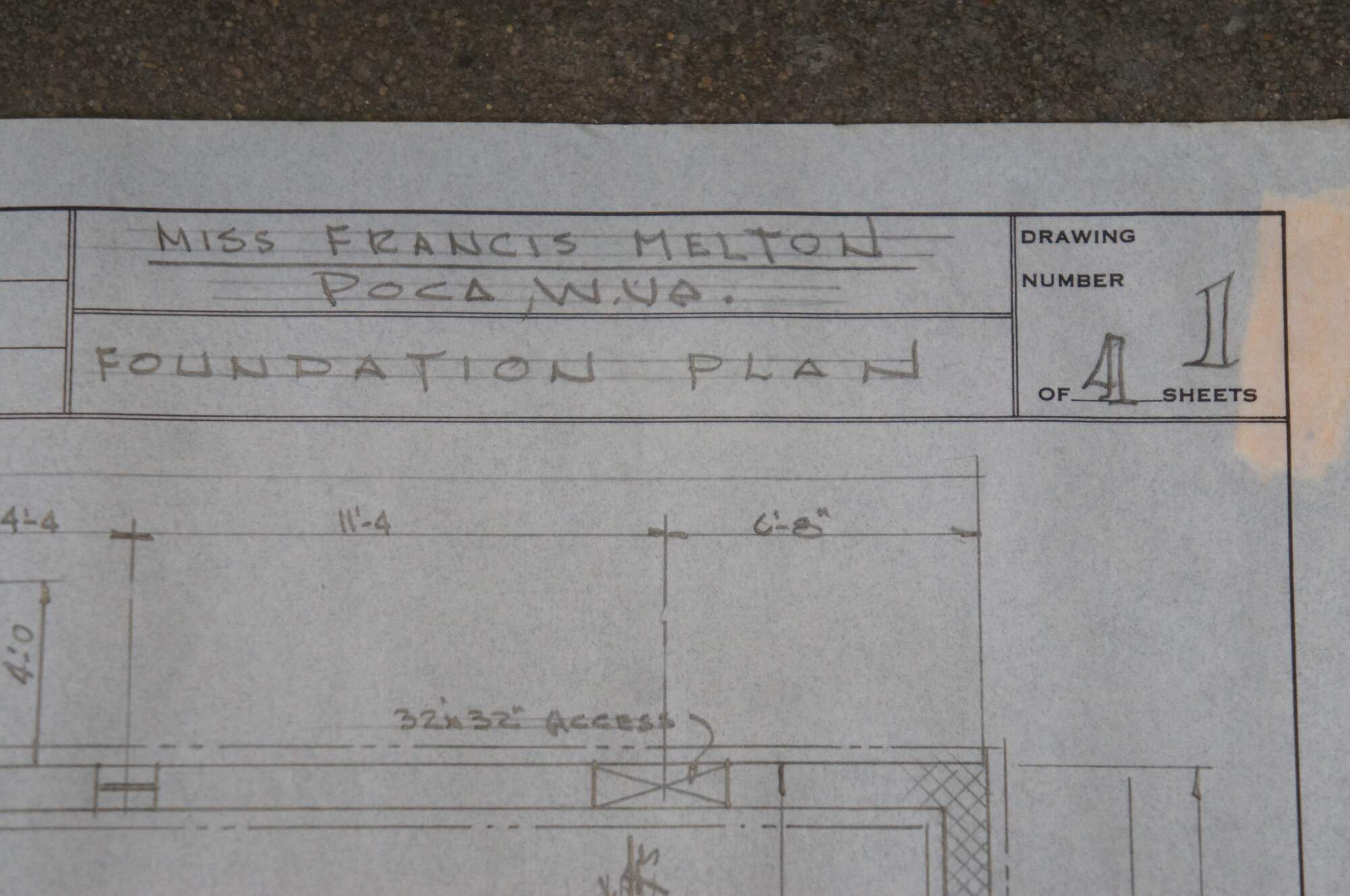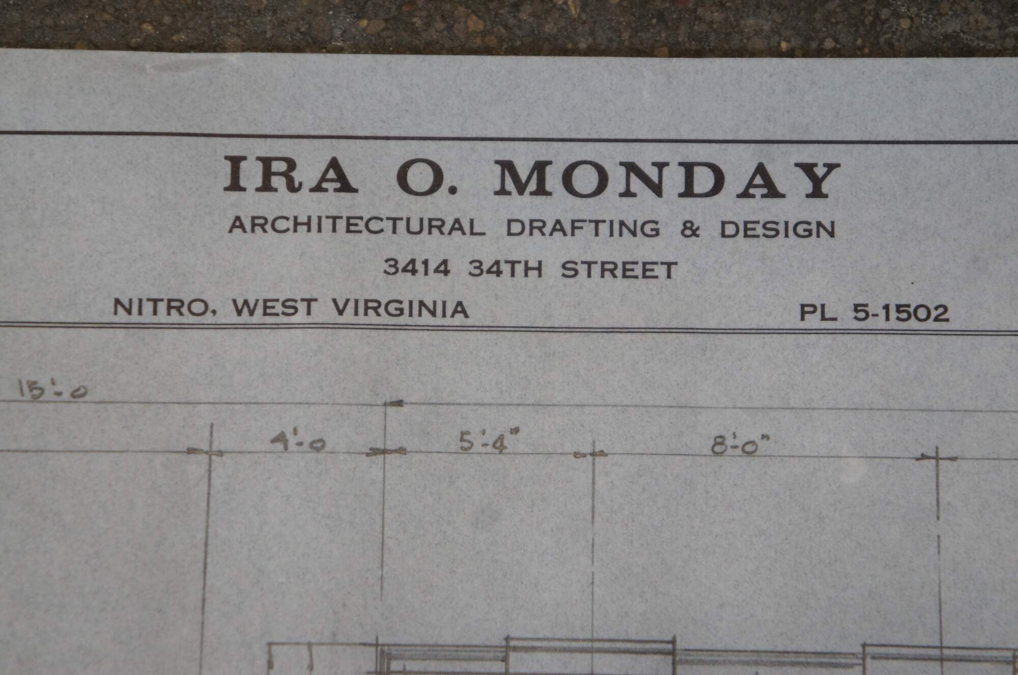 Set of 4 vintage 1964 architectural blueprints for a residential detached home, designed by Ira O. Monday of Nitro, West Virginia for Mis Francis Melton.