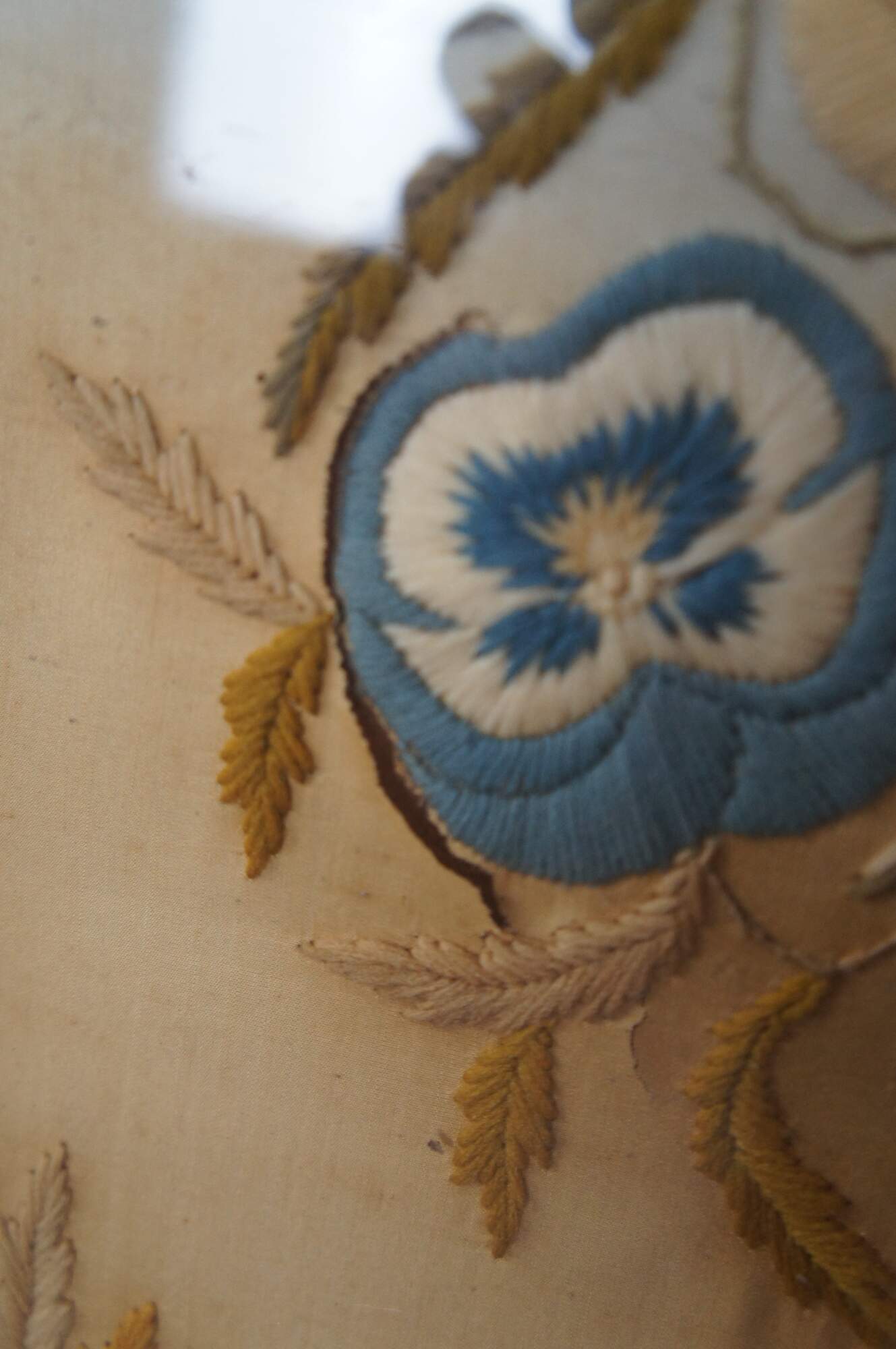 Good antique condition, wear and distressing commensurate with age and use, fading / distressing / tear / holes to tapestry, splitting to fret / fading.