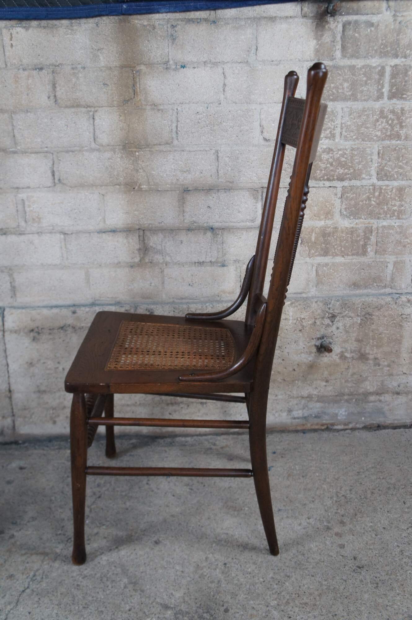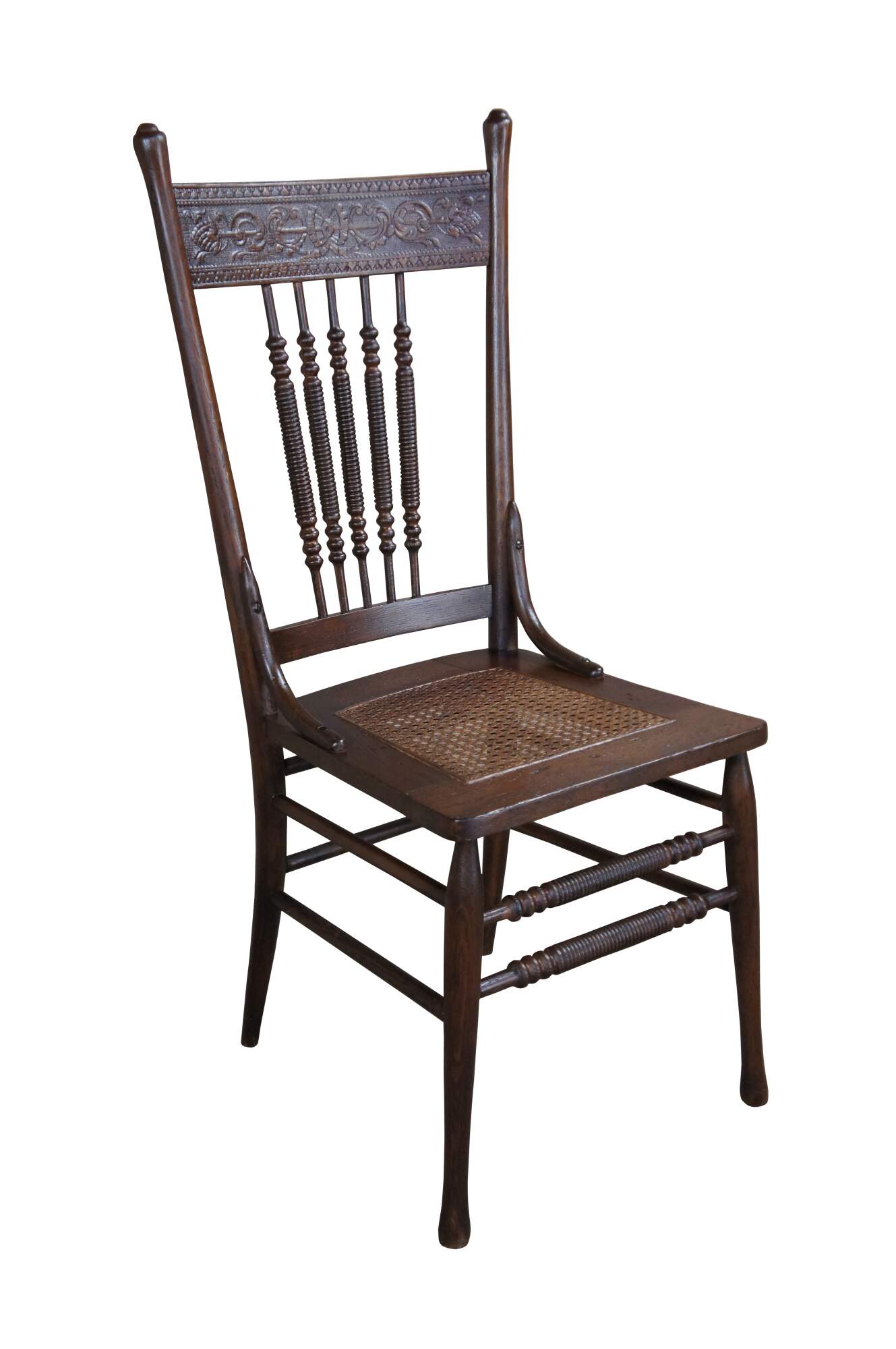 Pressback chairs were popular in the 1800s and 1900s, and were a significant part of American furniture history. They were created in response to the growing demand for carved and ornamented furniture, but were more affordable and faster to produce than hand-carved chairs. To make a pressback chair, manufacturers engraved patterns into a metal plate and then pressed the patterns into the wood. In 1902, Sears offered a dining chair with a pressback and "handsome carving" on the back for 63¢.