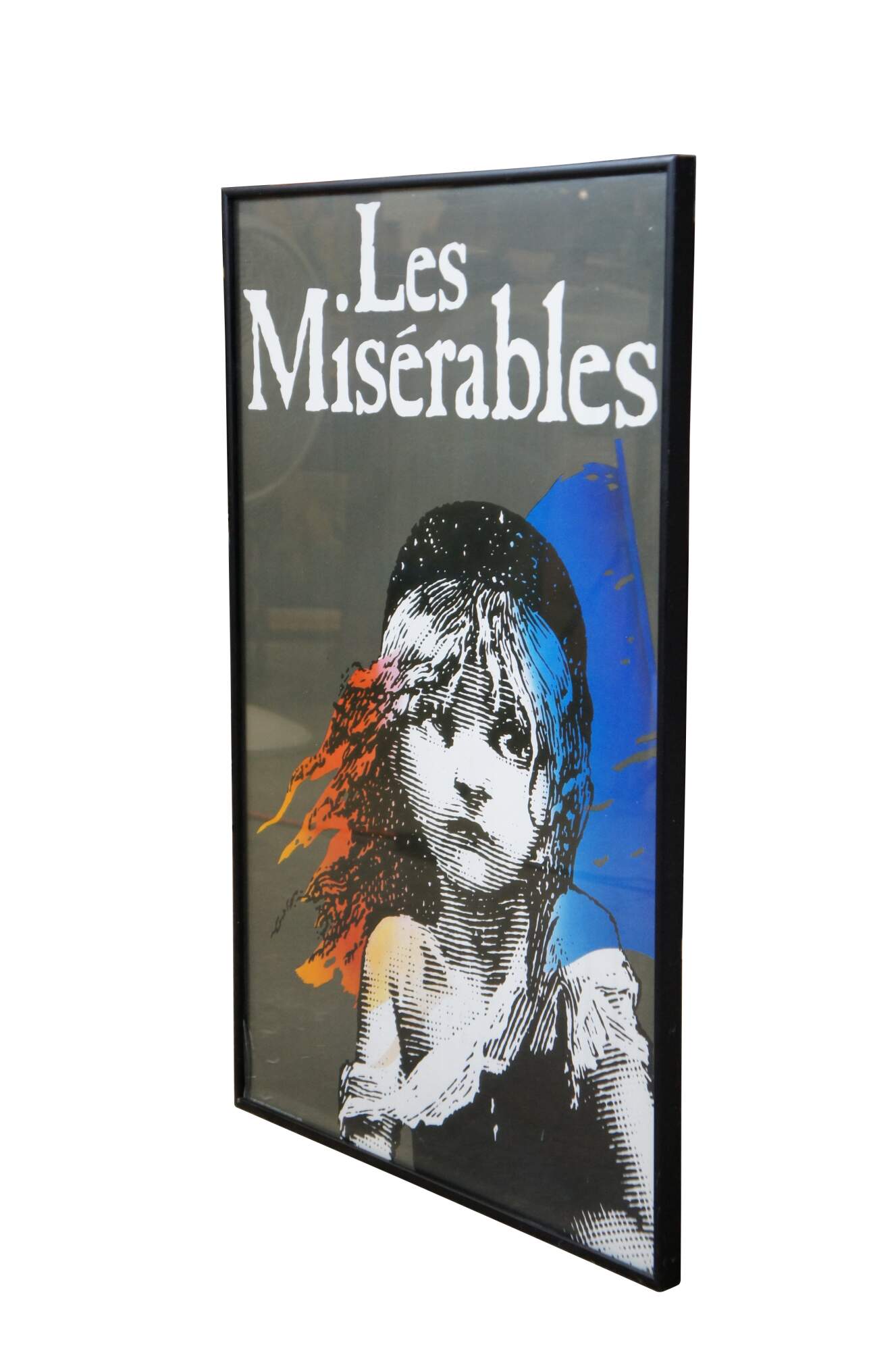Vintage 1986 poster for the musical Les Miserables. CMOL Designed, Printed and Produced by Dewynters PLC, London. Black metal frame; no mat.
