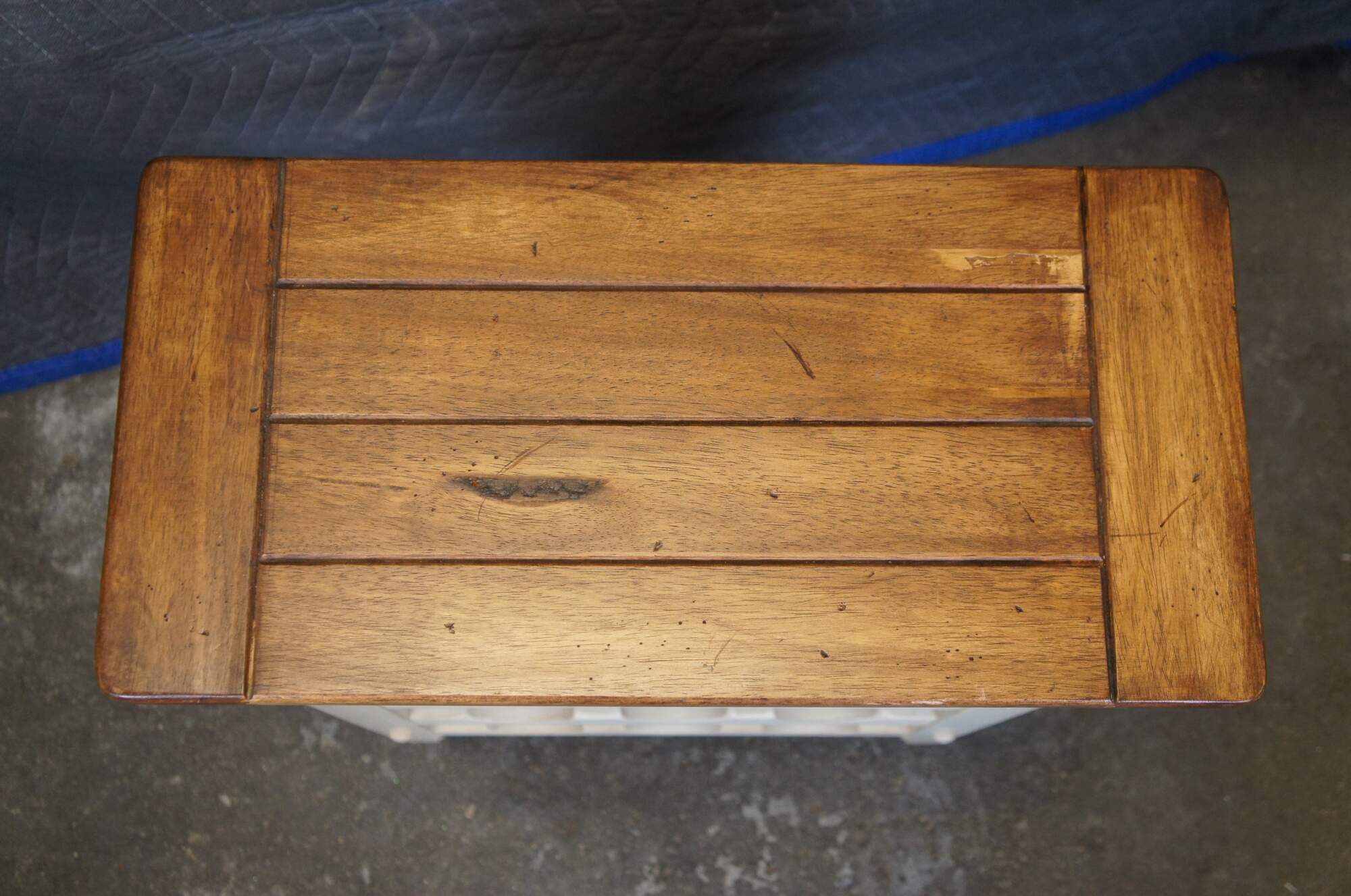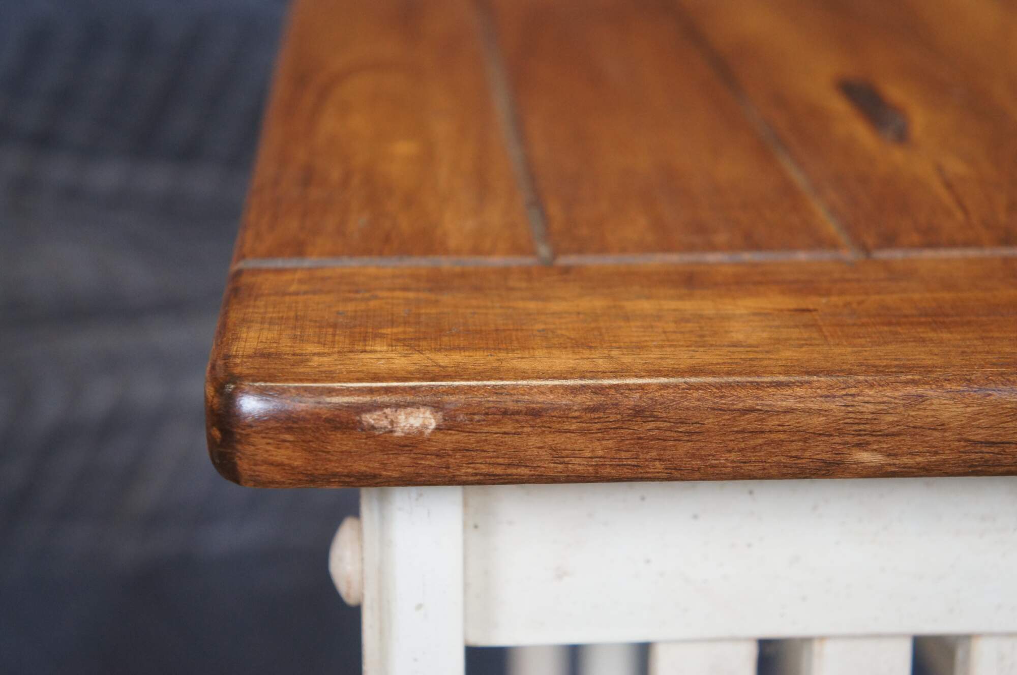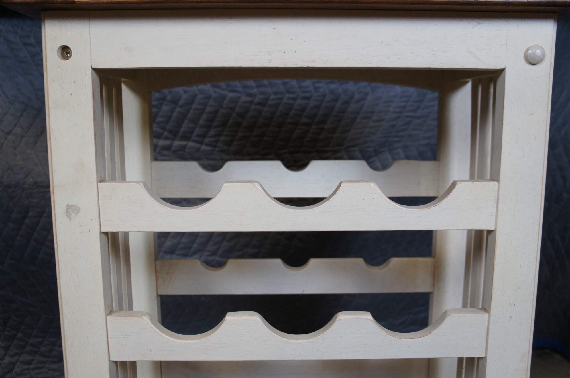 Late 20th century wooden wine bottle rack / holder with capcity for 12 bottles. White painted base with wood tone top for serving. Made in Thailand.