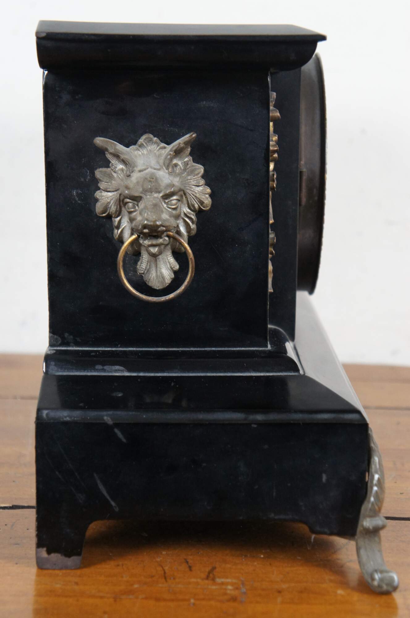 Antique Victorian New Haven Cast Iron Lion Head Mantel Clock Case Only 16"