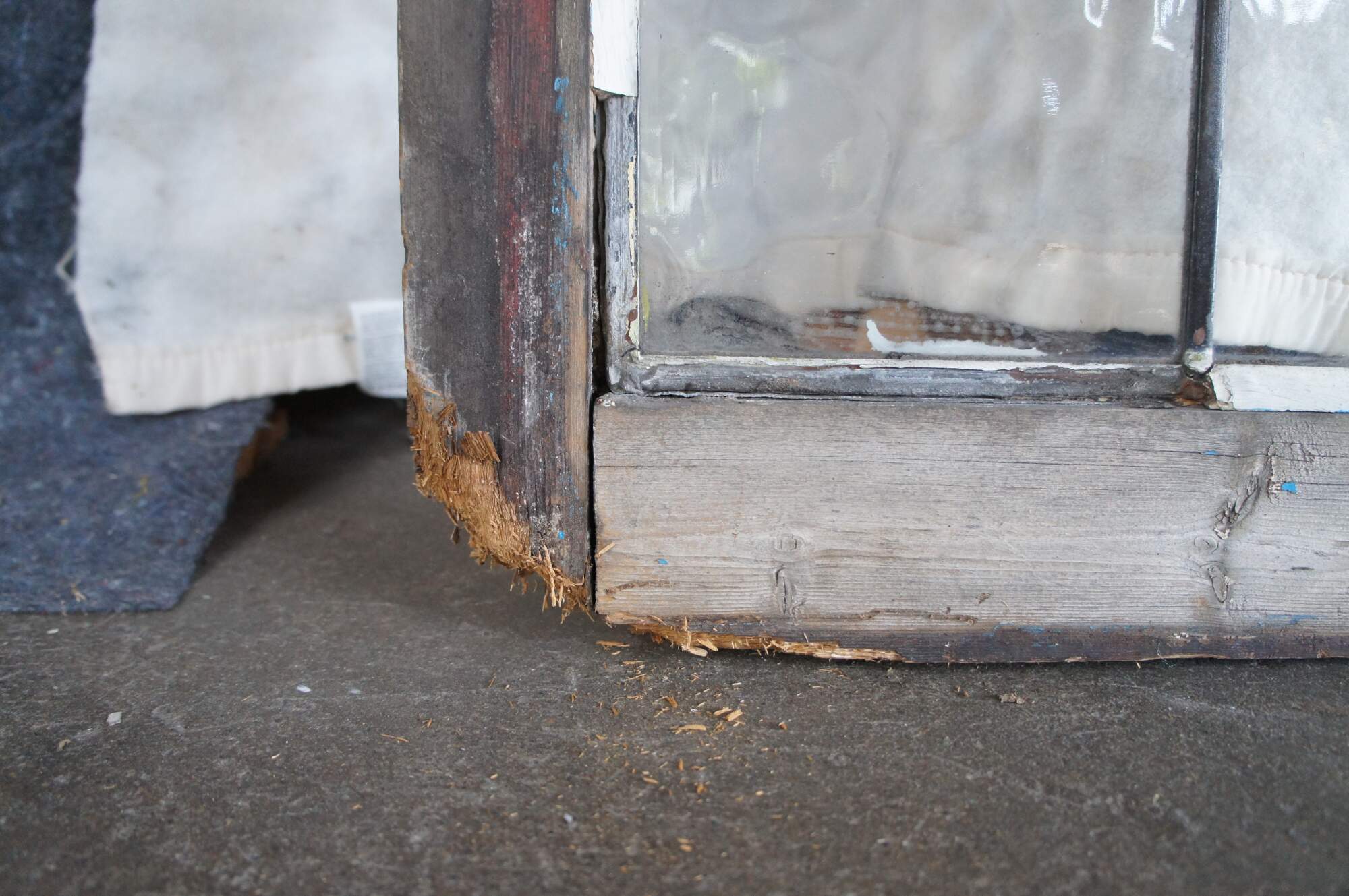 Good Condition; Age and use-related wear. A few small hairlines to colored glass panel. Edge / corner wear to wooden frame and missing trim.