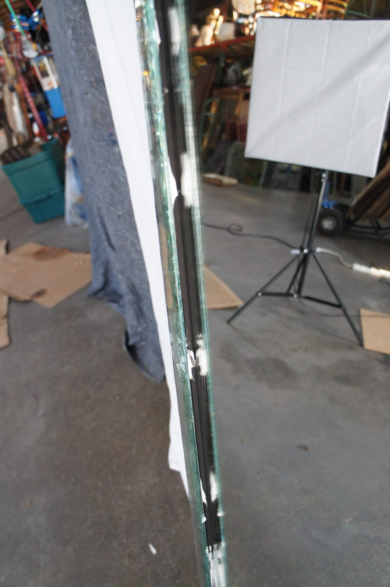 1970s Vintage Venetian style mirror. Features a beveled frame with cut glass accents. Great for use over a mantel, as a vanity or along a wall.