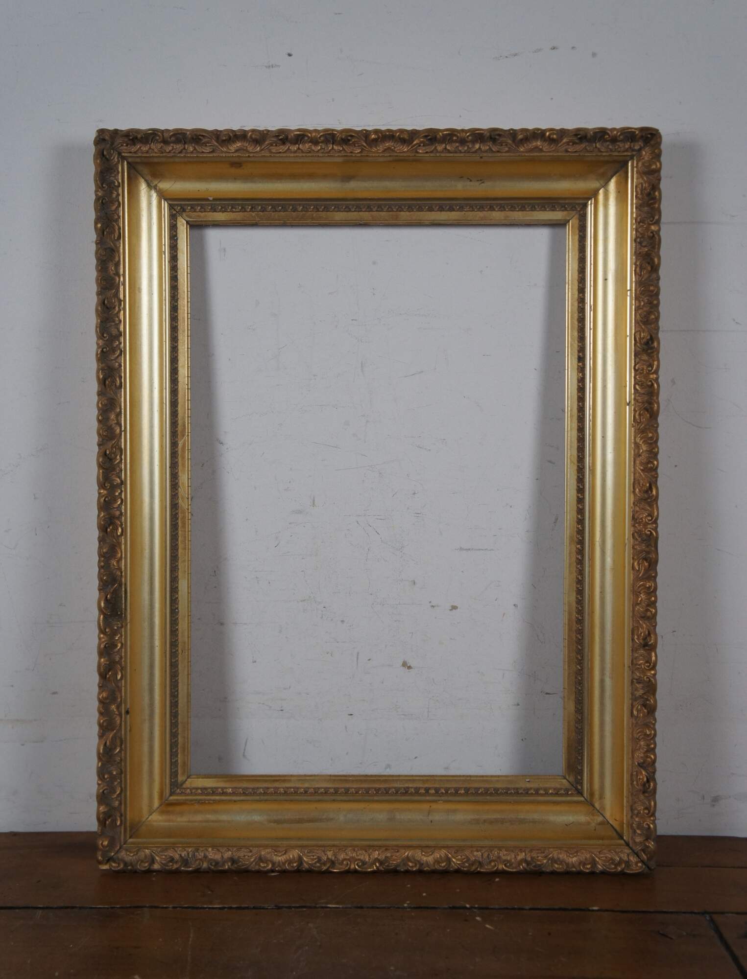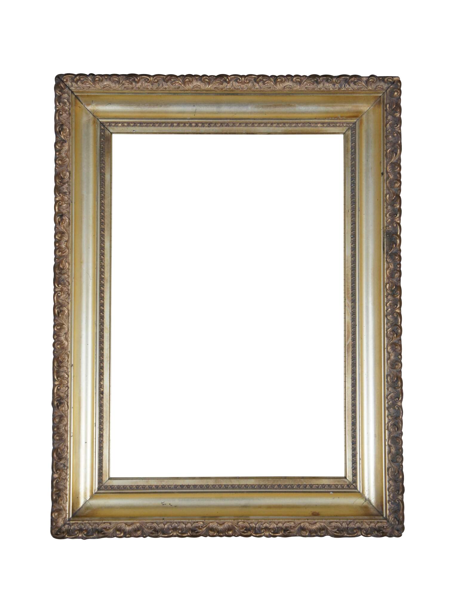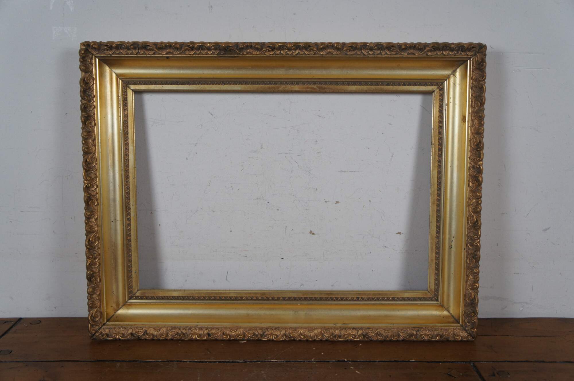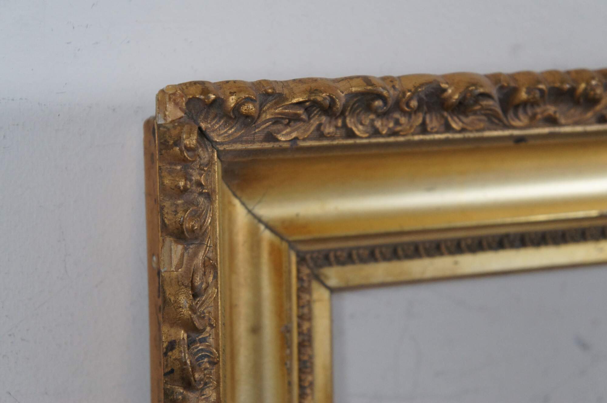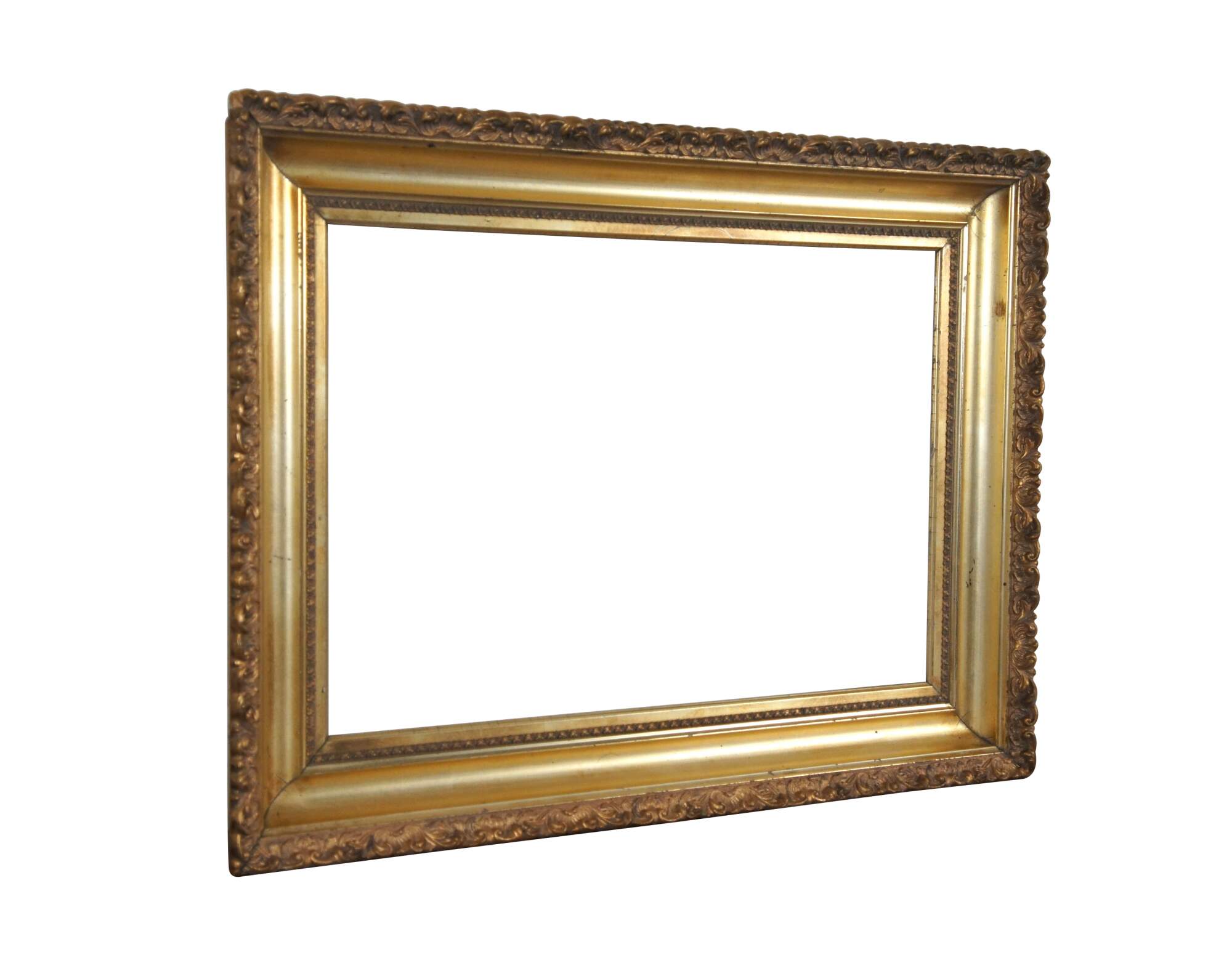 Antique giltwood picture / art / mirror frame, featuring a scalloped / foliate carved edge and smooth deep bevel. Accomodates art approximately 19" x 13".