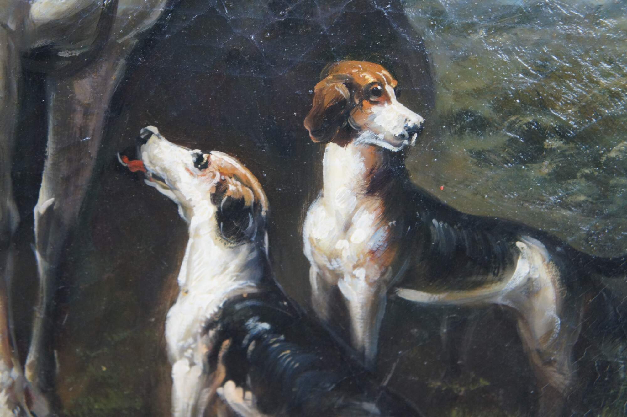 Portrait of Charles Trelawny, Esq., Master of the Dartmoor Hunt, on his favourite hunter Grimaldi, with the the hounds Conqueror, Lounger and Windermere). After Francis Grant.