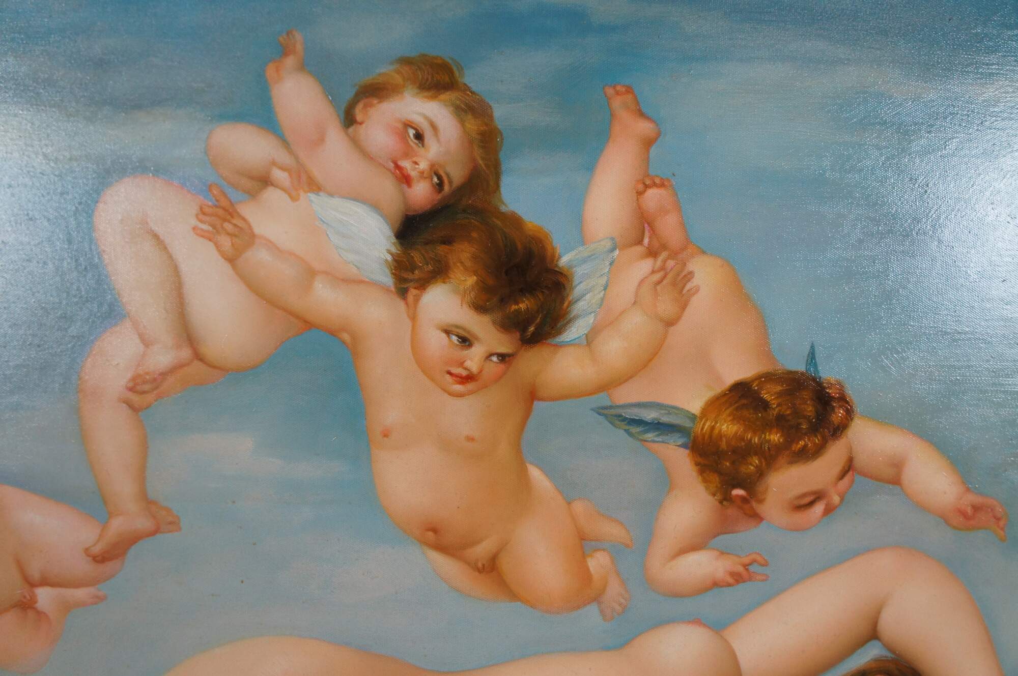 Hand painted reproduction of the Birth of Venus by Alexandre Cabanel. The oil painting is on canvas and framed in a neoclassical design with gold finish.