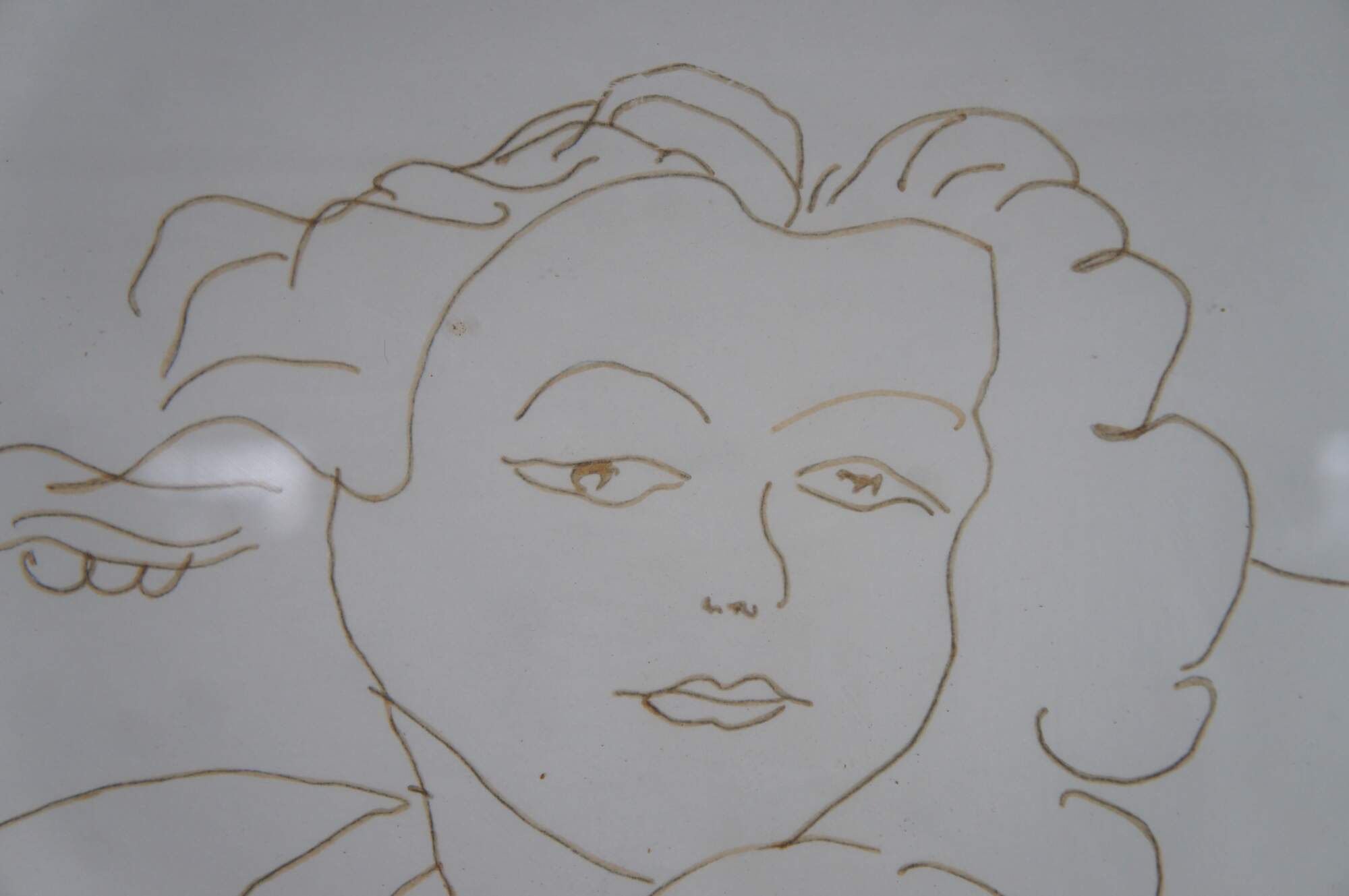 Lithograph F-4 features a female portrait signed in stone. The print is framed