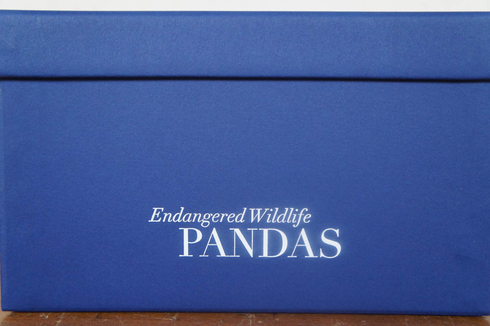 Swarovski Collectors Society 2008 Annual Edition Endangered Wildlife serie, Pandas. Black and clear crystal figurine pair depicting a mother / adult panda holding a frosted stalk of bamboo and a baby panda. Includes Certificate of authenticity and original packaging. Made in Austria.