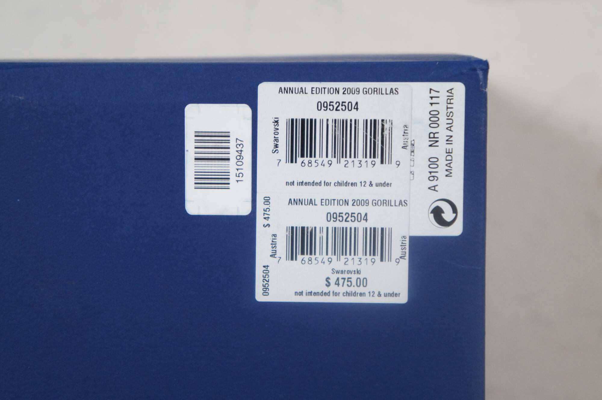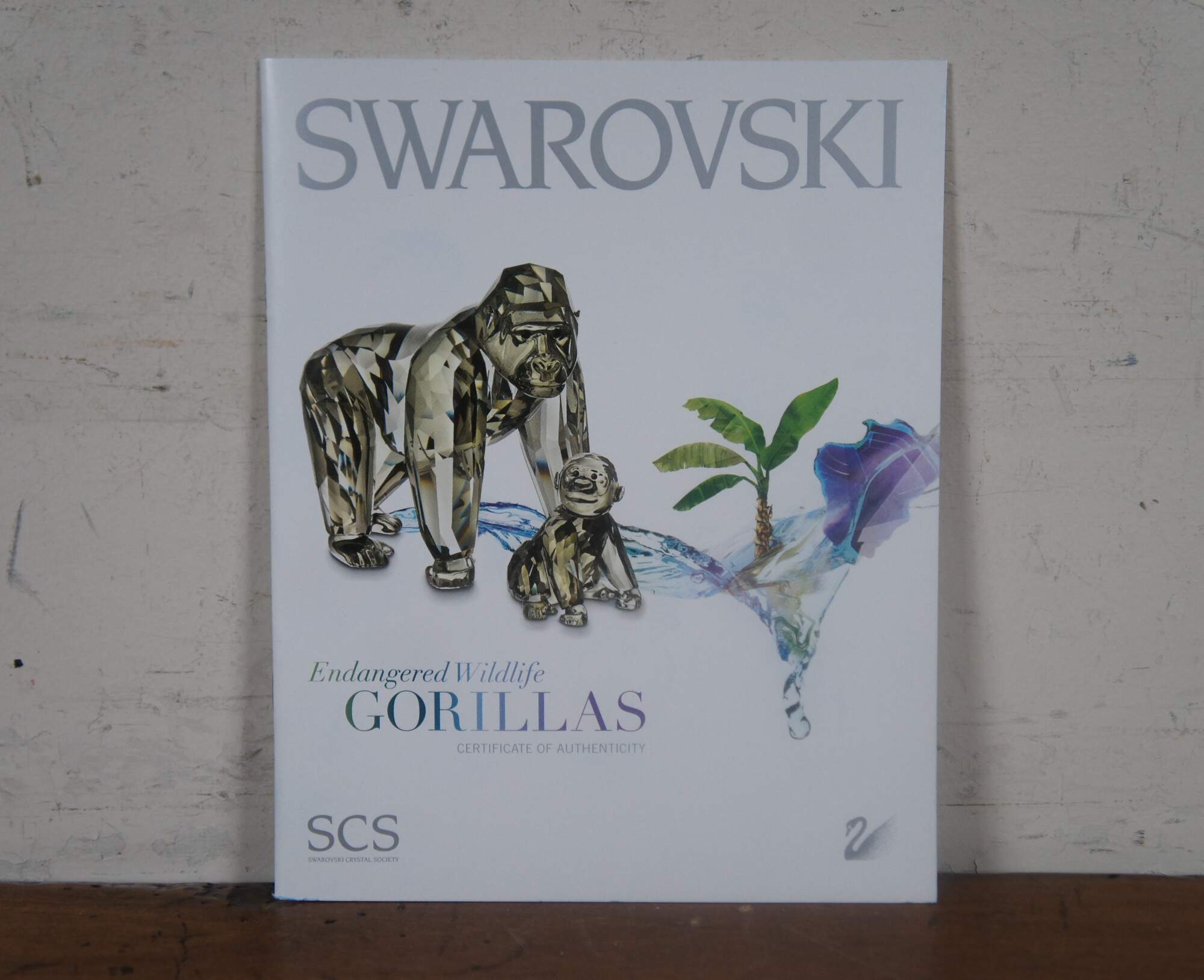Swarovski Collectors Society 2009 Annual Edition Endangered Wildlife series, Gorillas. Gray crystal figurine pair in the shape of an adult / mother gorilla and a baby. Includes Certificate of Authenticity and original packaging. Made in Austria.
