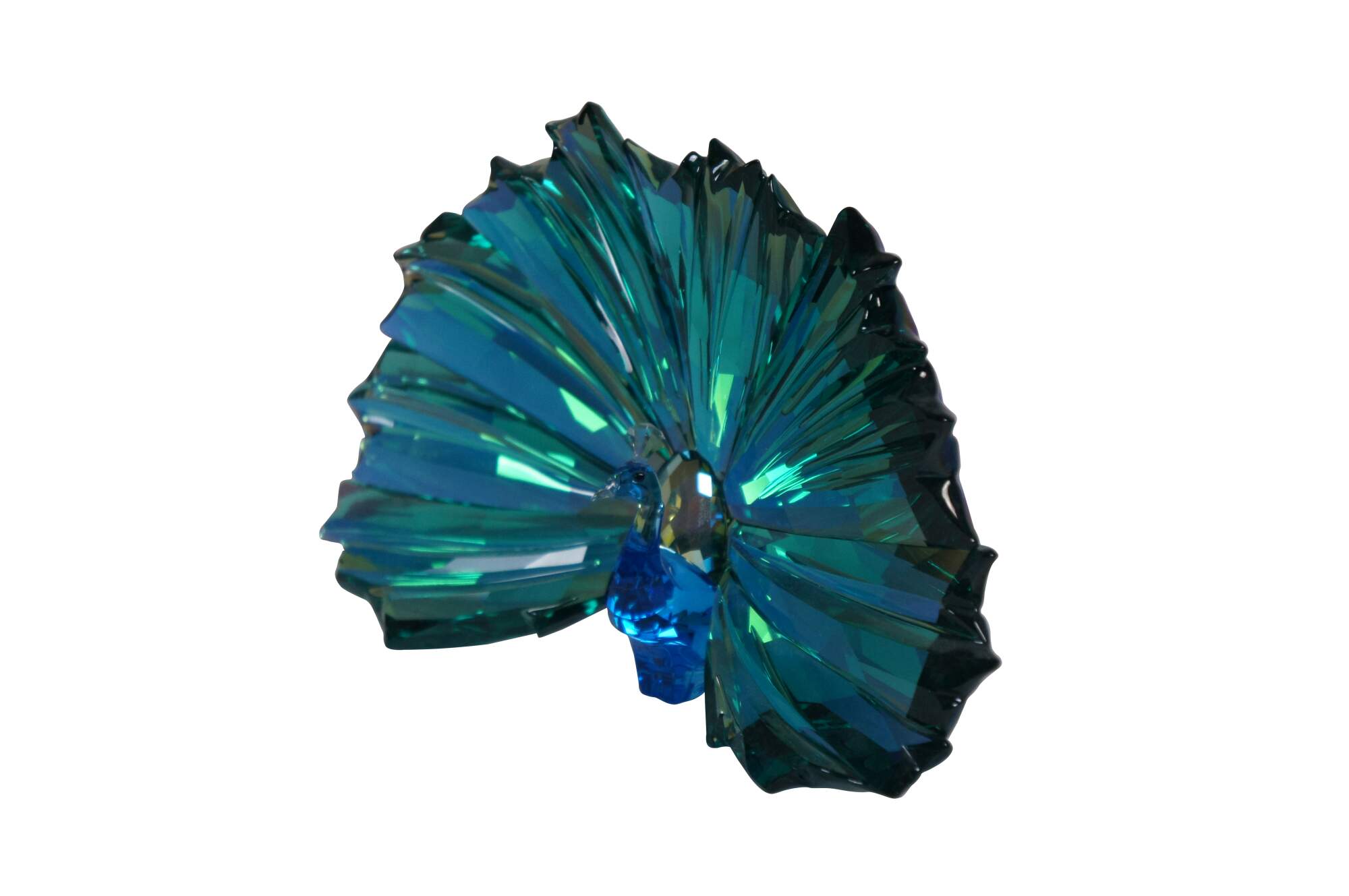 Swarovski Collectors Society 2015 Annual Edition, Arya Peacock. Iridescent blue / green crystal figurine in the shape of a male peacock with feathers fanned. Includes Certificate of Authenticity and original packaging. Made in Switzerland.
