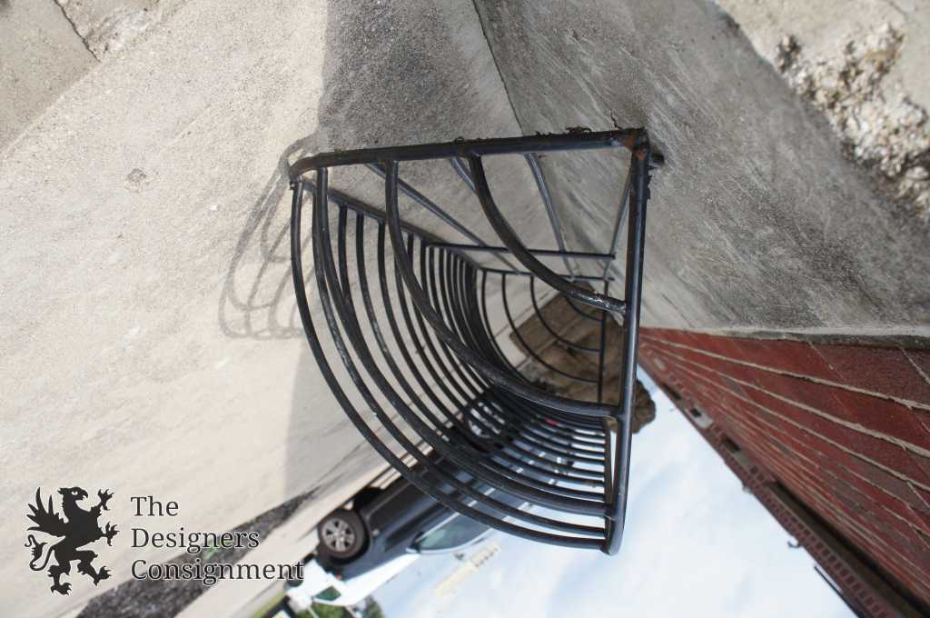 Iron coated black window box. 55" with rounded front. Mounts along the outside of the back to any solid surface.