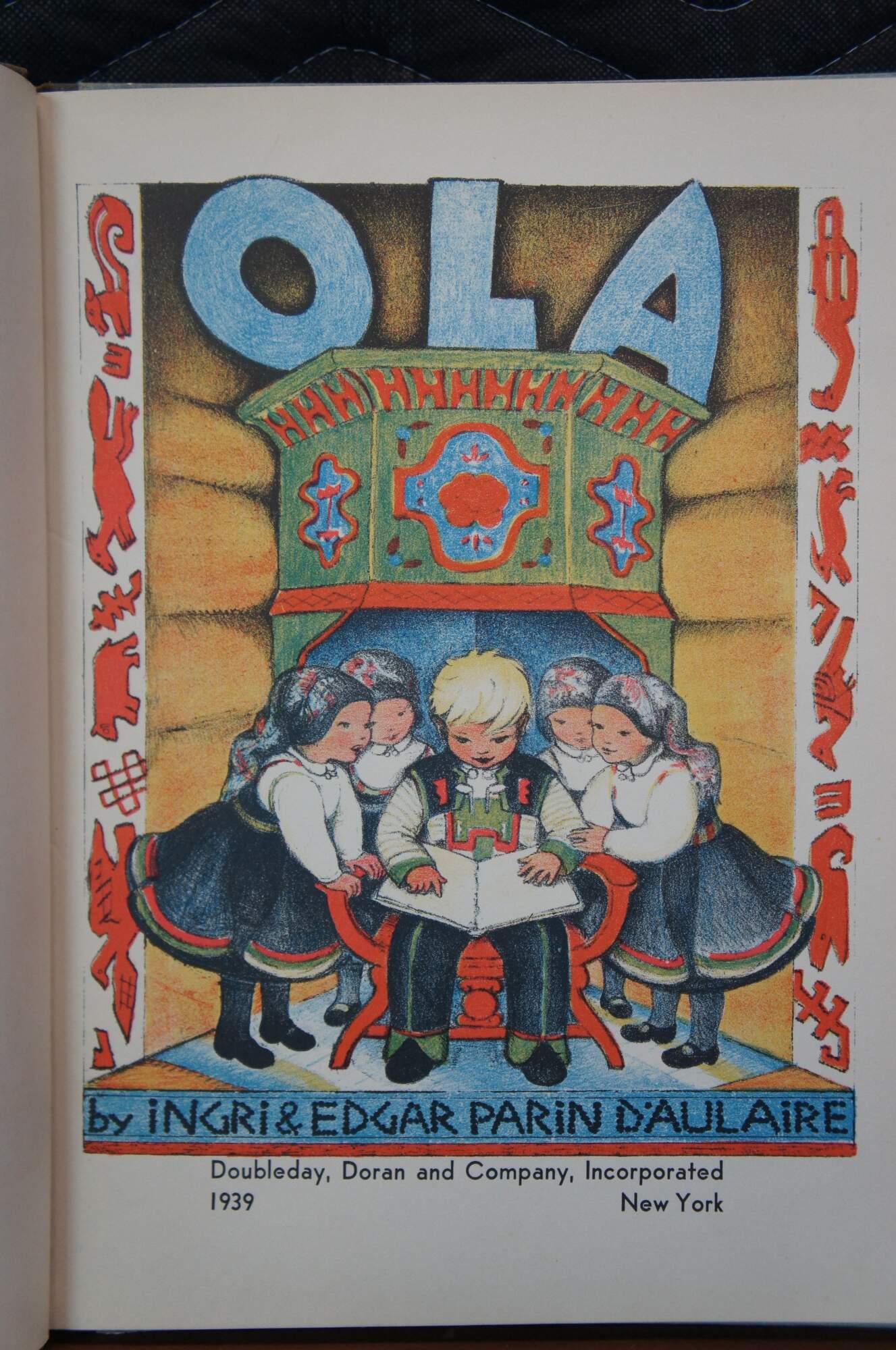 Ola" by Ingri & Edgar Parin D'Aulaire - Published by Doubleday, Doran & company Inc, New York 1939 - Copyright 1932 by Doubleday, Doran & Co Inc - Lithographed in the United States of America by William C.D. Glaser, New York. Paper bound hard back / hard cover; black cloth spine. No jacket.