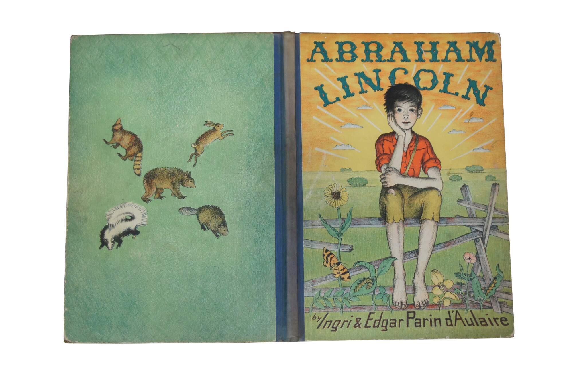 Abraham Lincoln" by Ingri & Edgar Parin D'Aulaire - Copyright / Published by Doubleday, Doran & Company Inc, New York 1939 - Lithographed on stone in five colora by the authors and printed by offset lithography in the United States of America by the Duenewald Printing Corporation - First Edition. Paper bound hard back / hard cover; blue cloth spine. No jacket.
