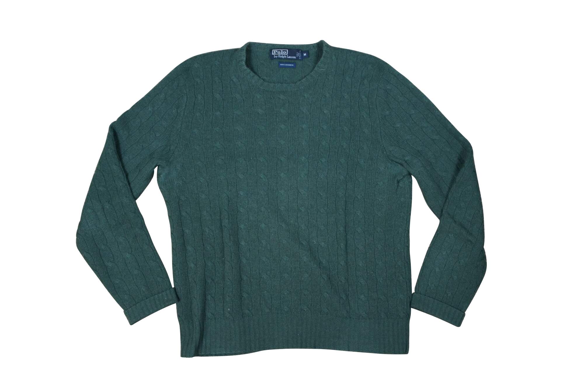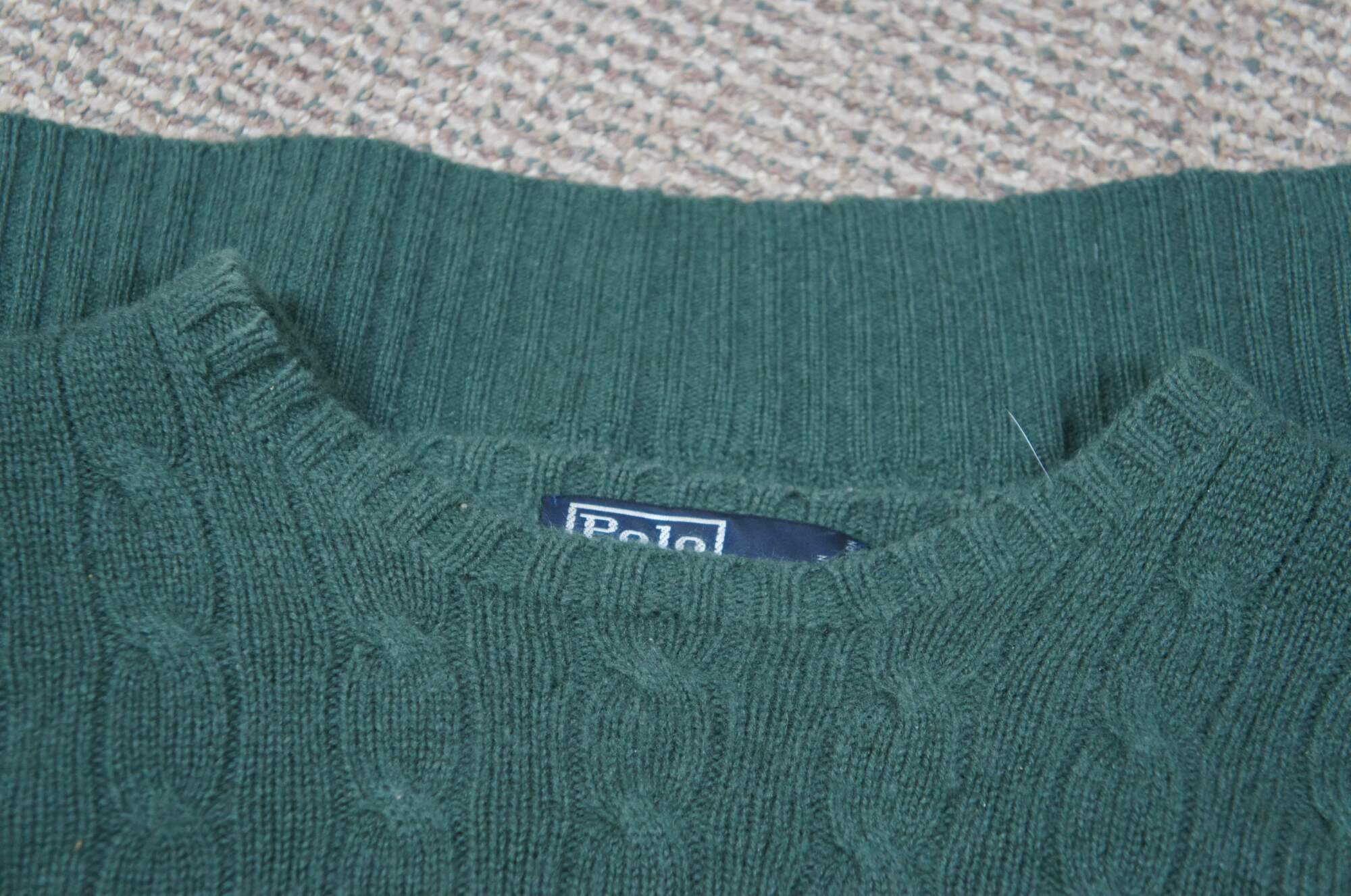 2 Vintage Polo Ralph Lauren Mens Crew Neck Cable Knit Cashmere Sweaters Medium