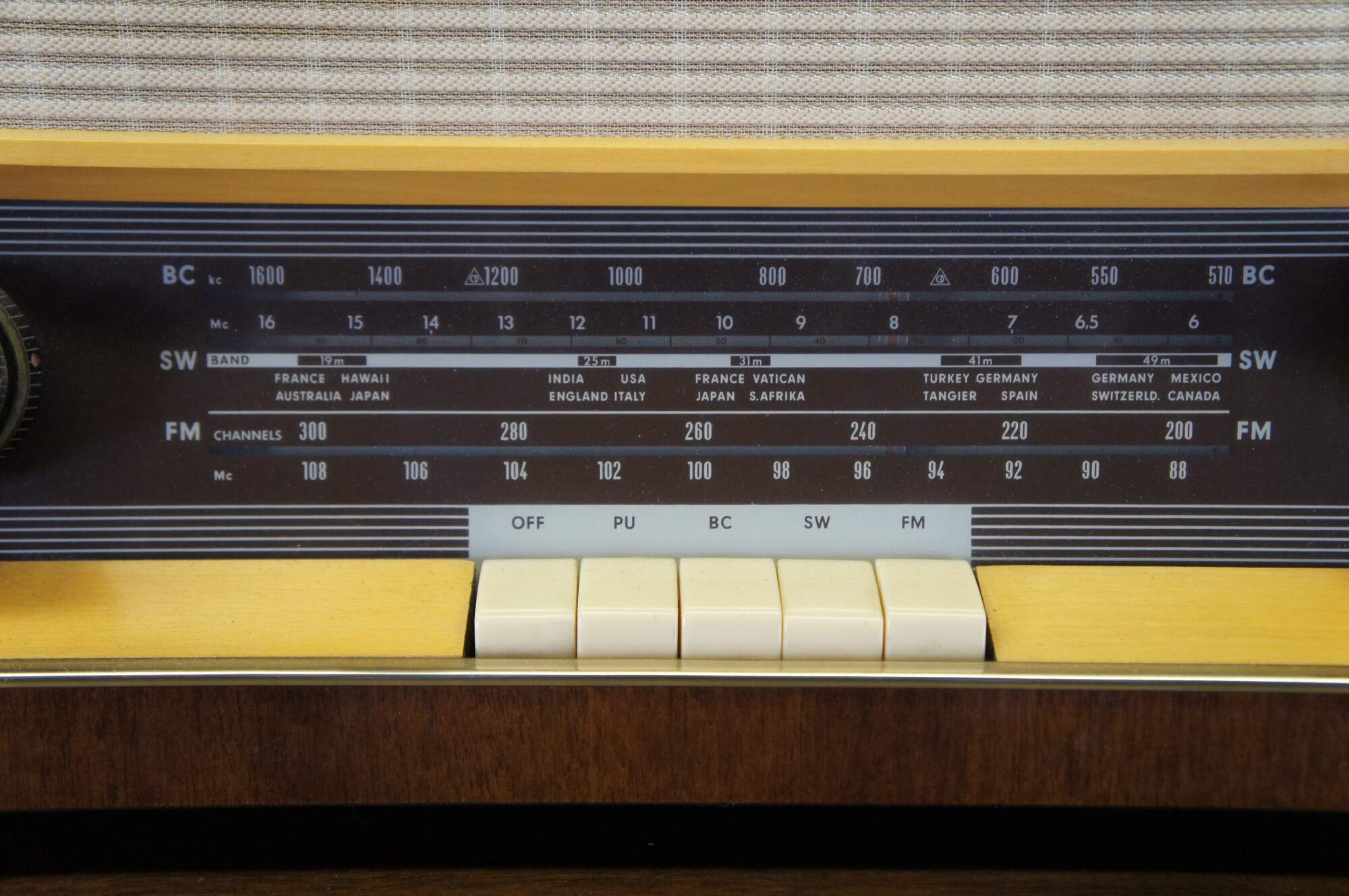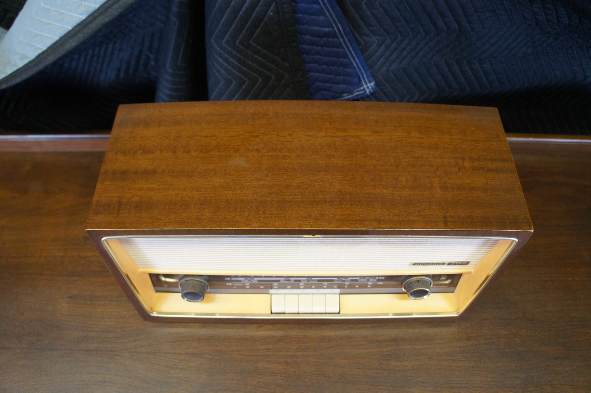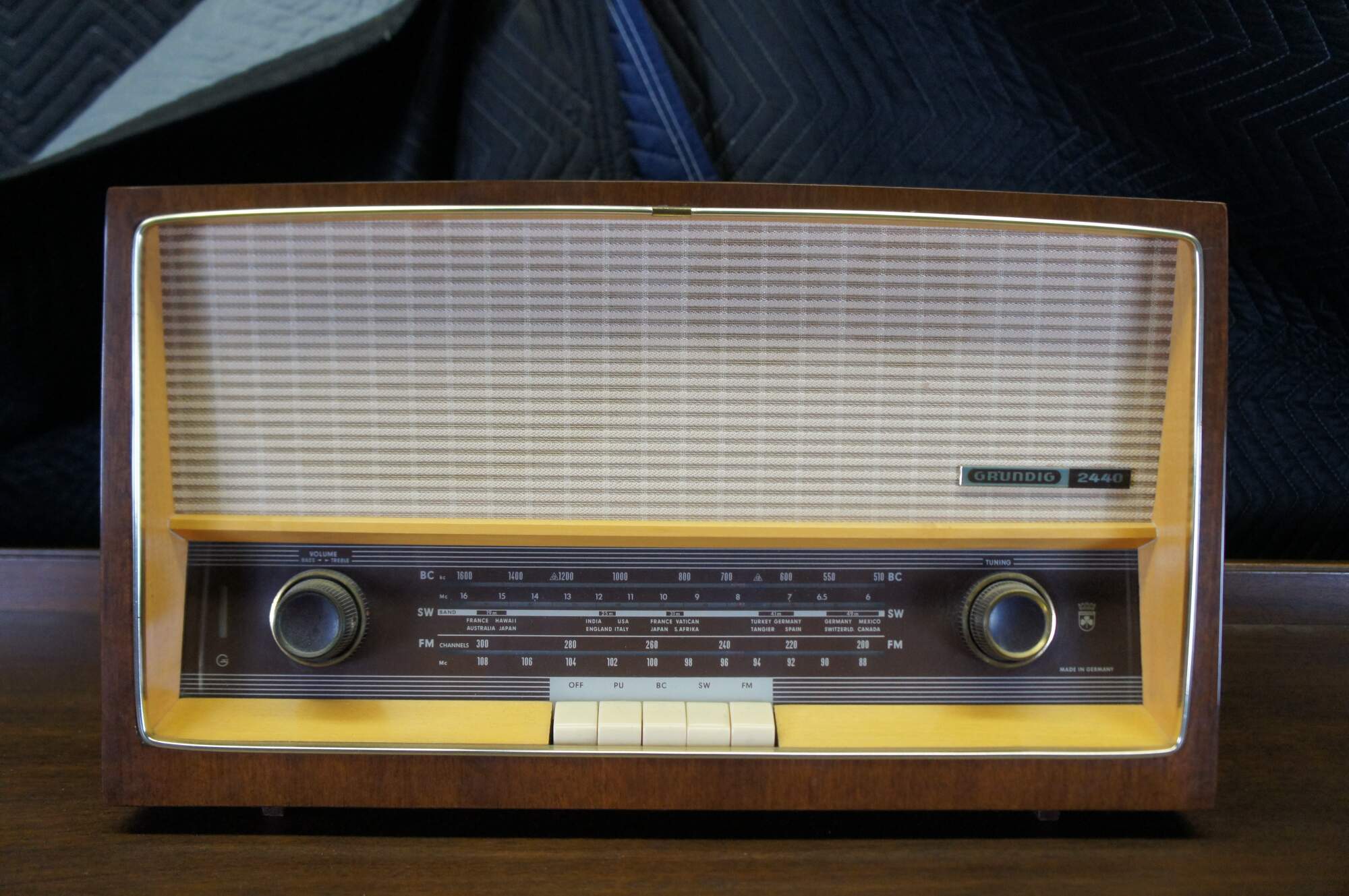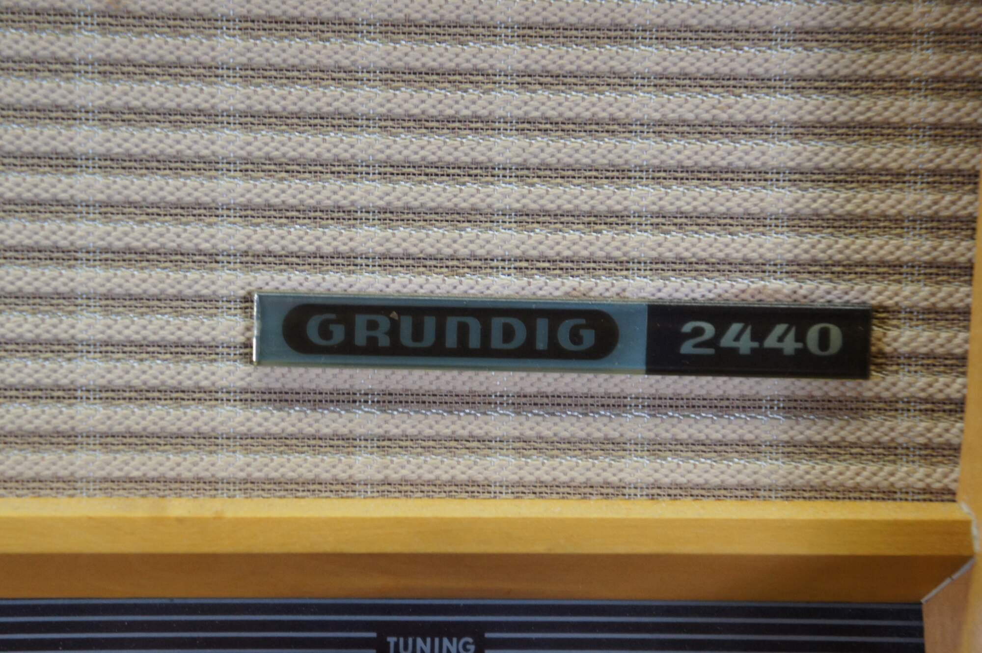 Mid century modern circa 1960s Grundig Werke model 2440 walnut bakelite tube radio, made in Germany. Serial #1322605287
