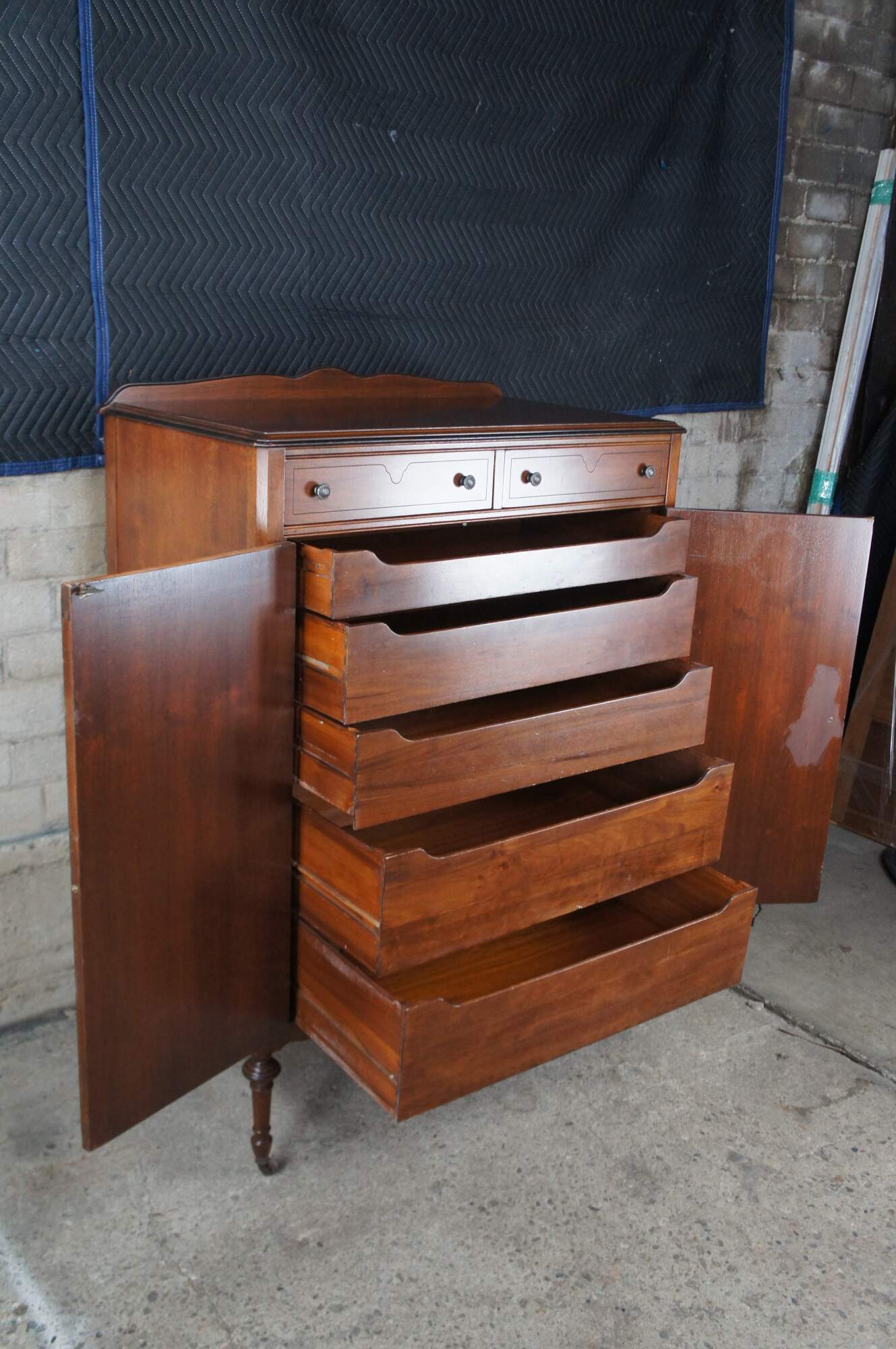 Very Good Antique Condition; Gently used. Some finish wear on the inside of the right door.