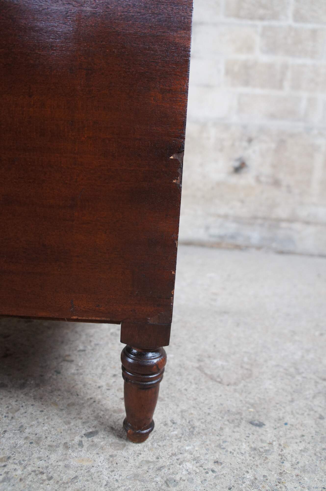 Fair antique condition, good structurally, wear and distressing from age and use, veneer loss, chipping to edge, marking / scuffing / fading, finish loss, damage to leather - marking, fading, bubbling.