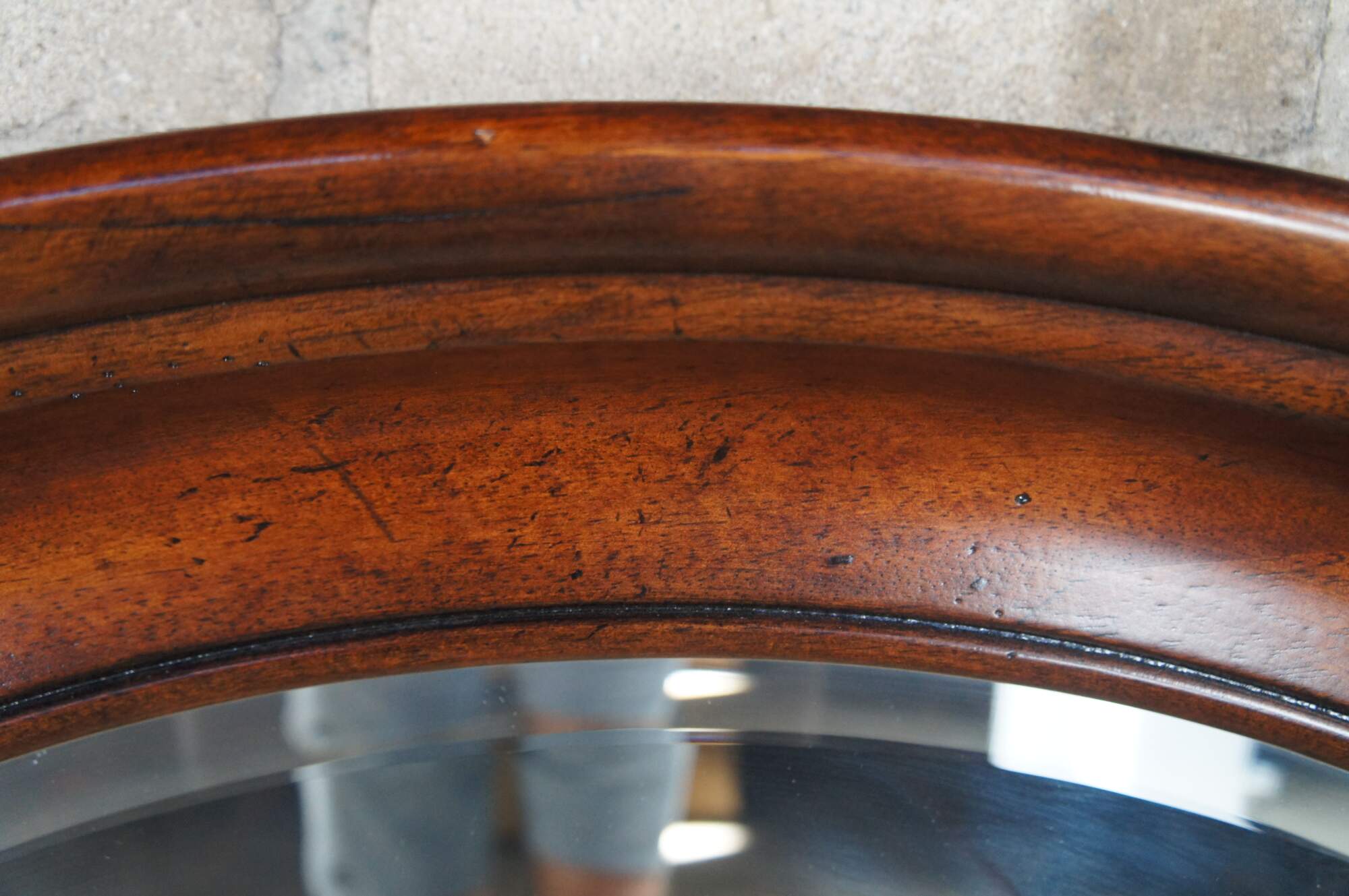 Vintage Henredon cavalier aged cherry round beveled bullseye style vanity or hall mirror. Includes hanging bracket. 6200 - 04 - 93, 350498, 5492916. Made in Columbia.