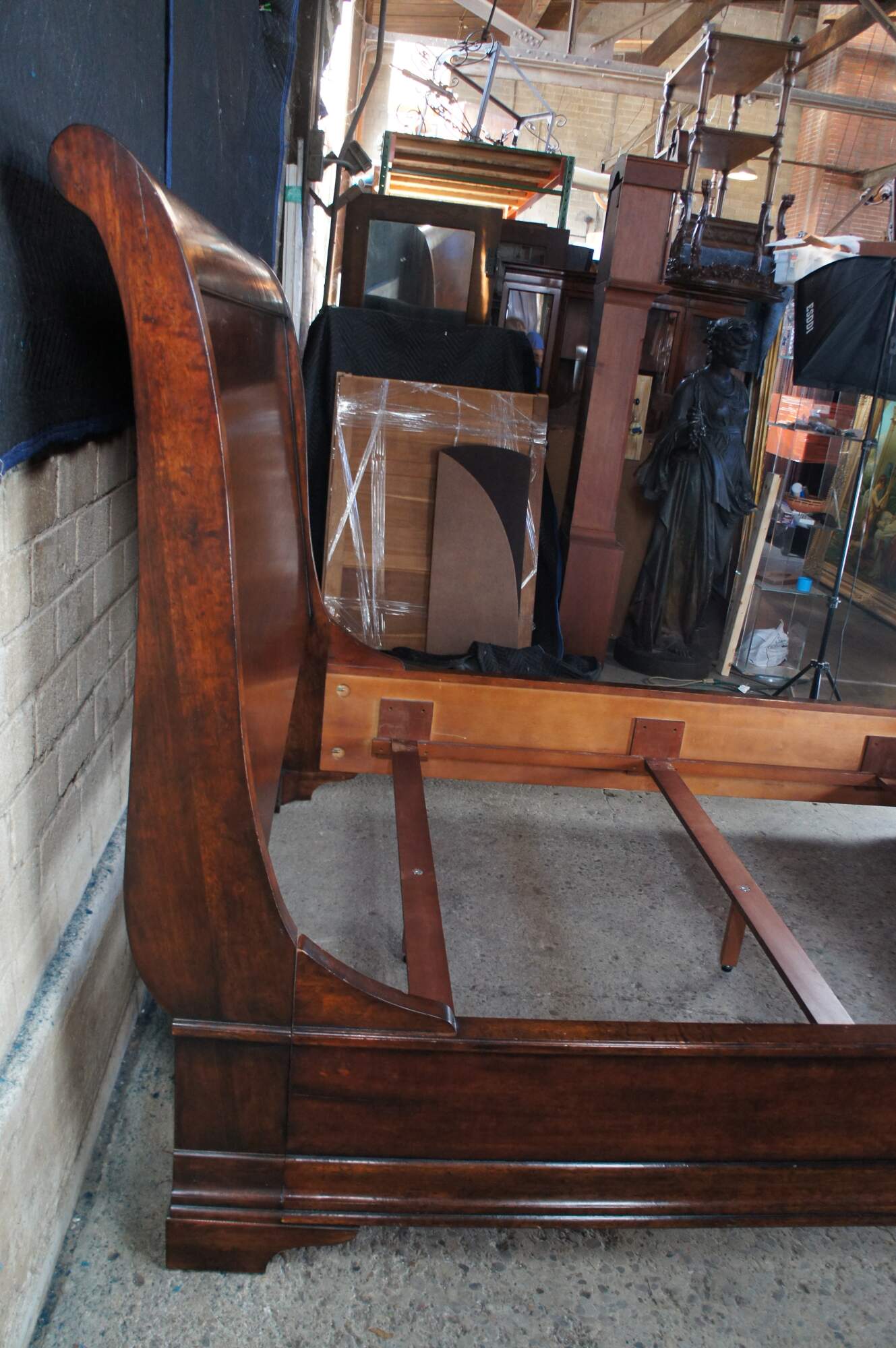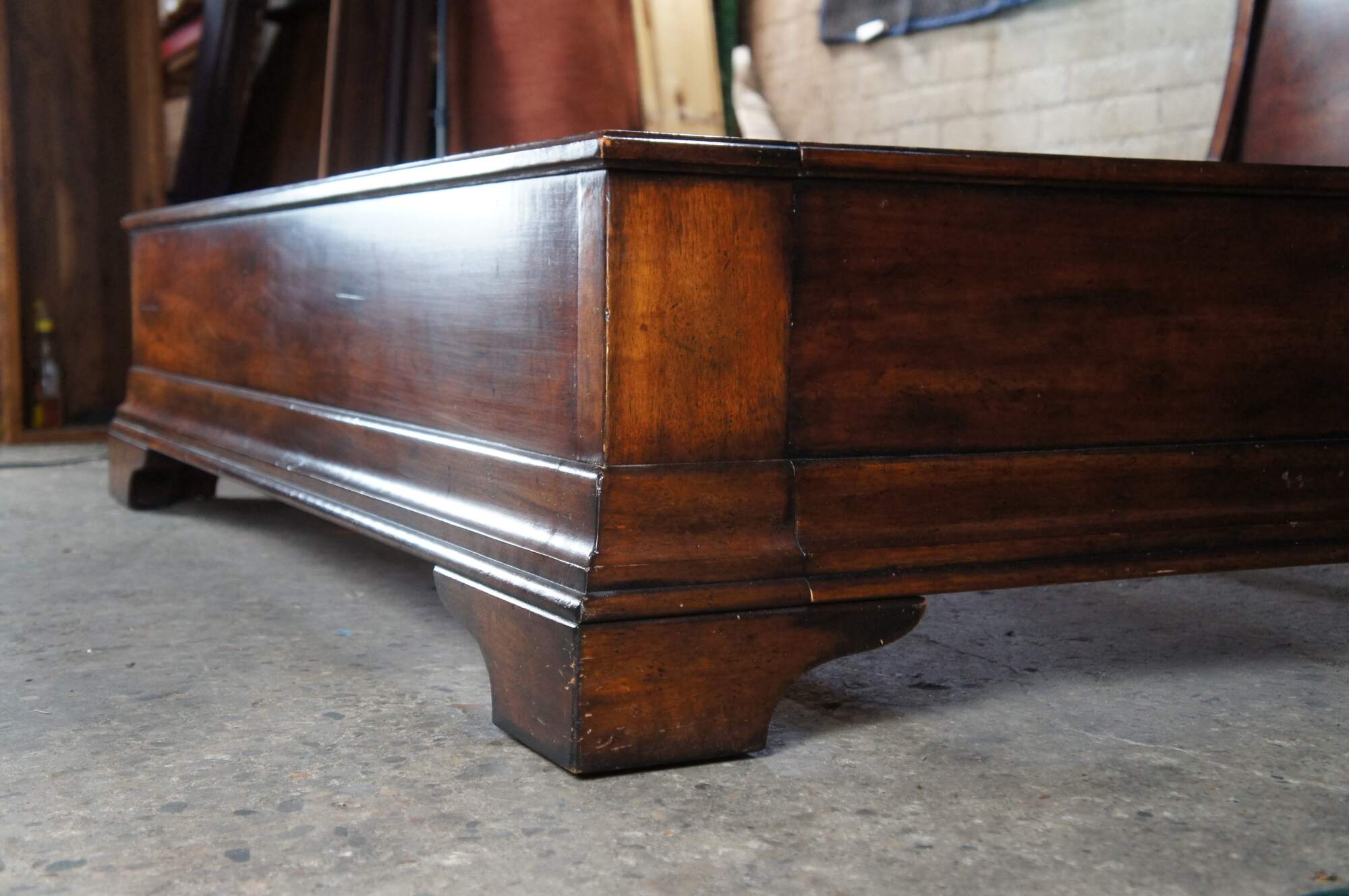 An exquisite Henredon Louis Philippe Style Queen Sleigh Bed. Made from Cavalier Cherry with a beautifully controured back over a steamlined frame with bracket feet. Henredon Furniture #6200.