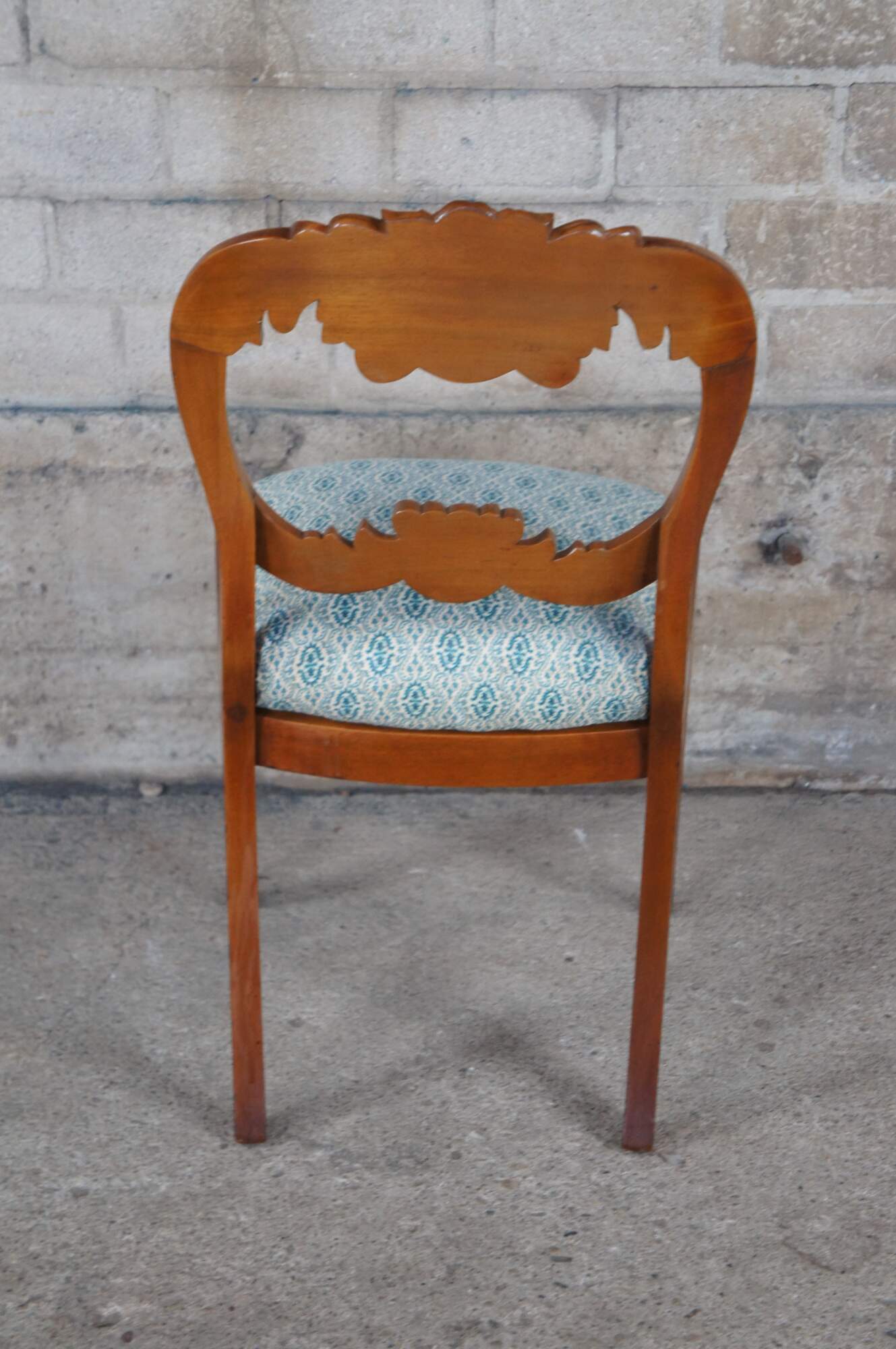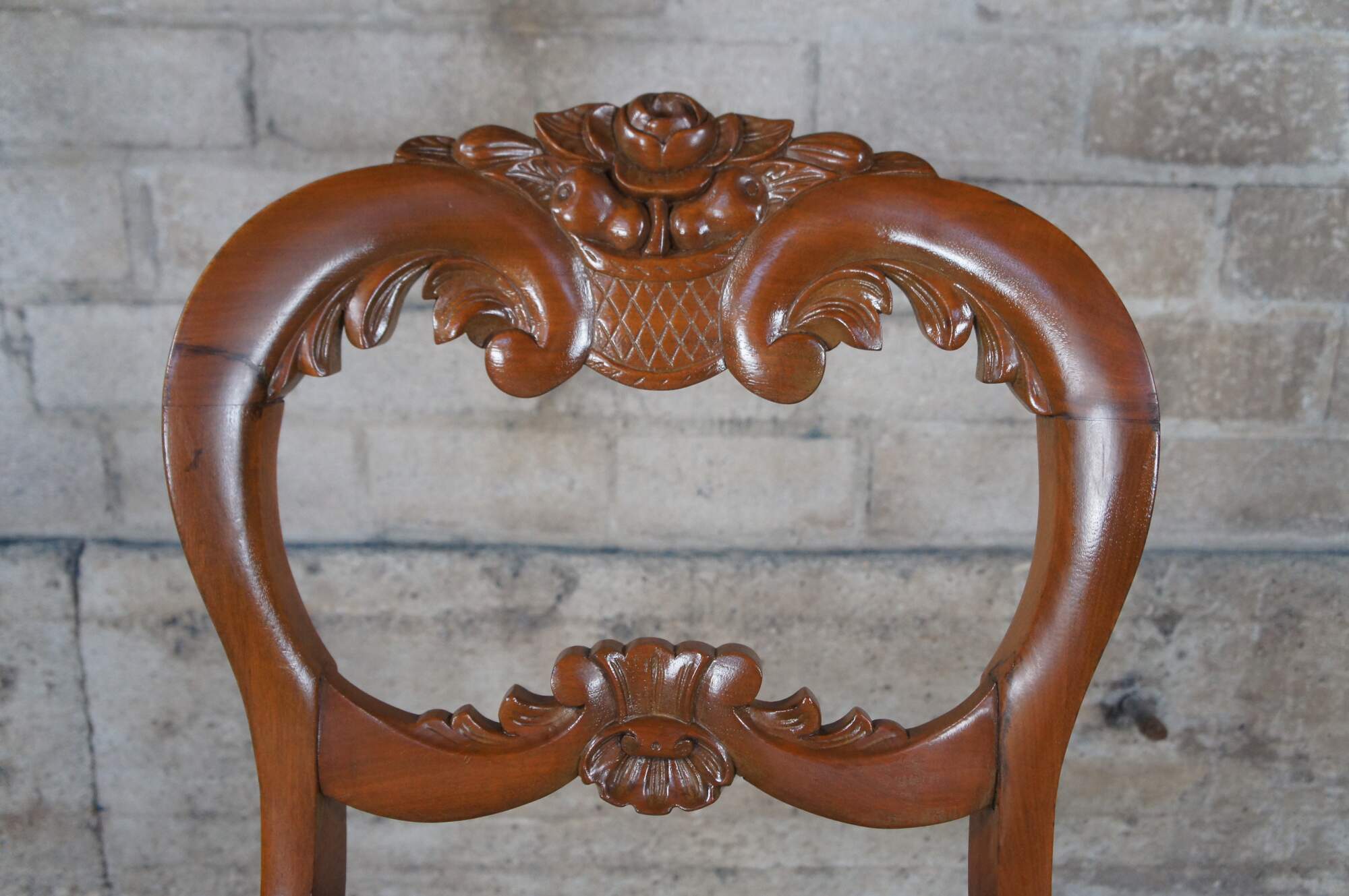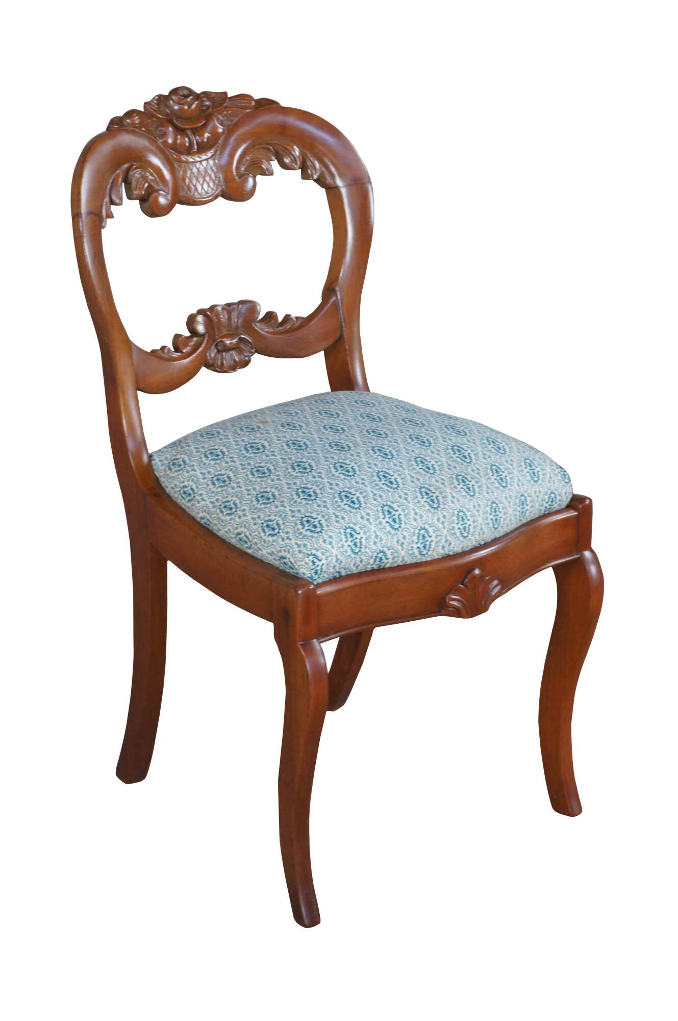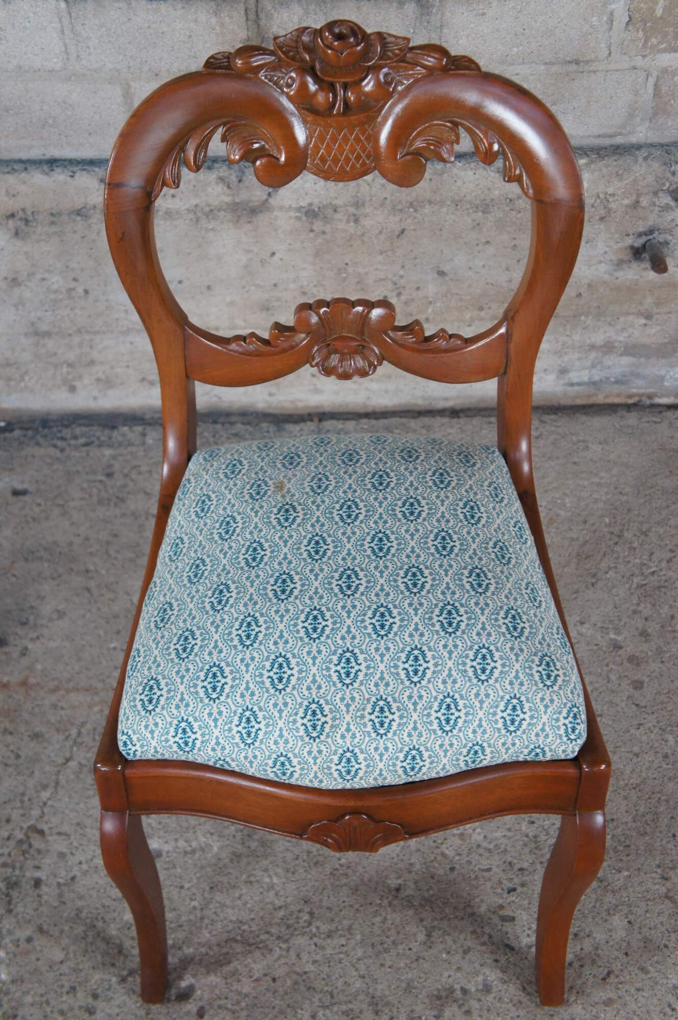 Antique Victorian parlor / vanity / desk chair. Made of carved walnut featuring a balloon back with carved floral rose design