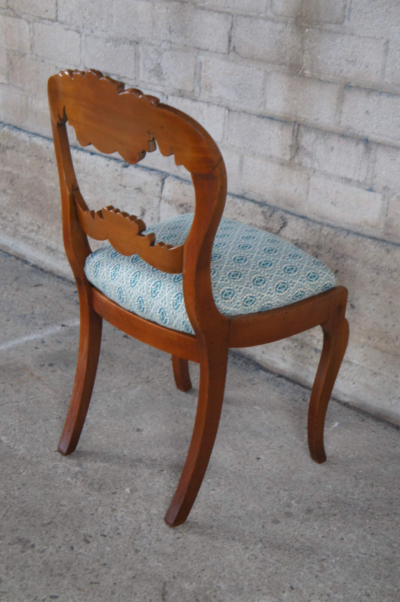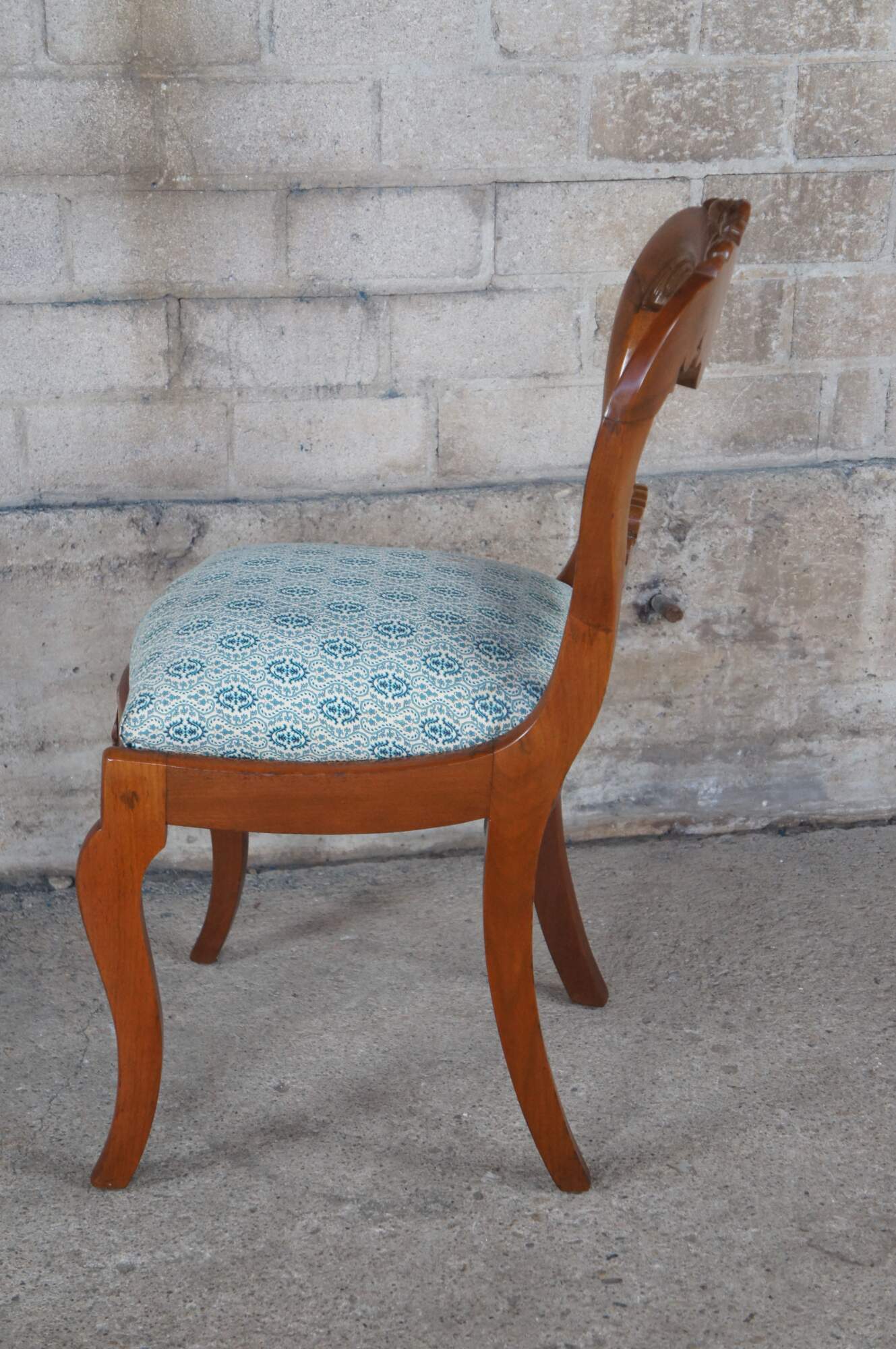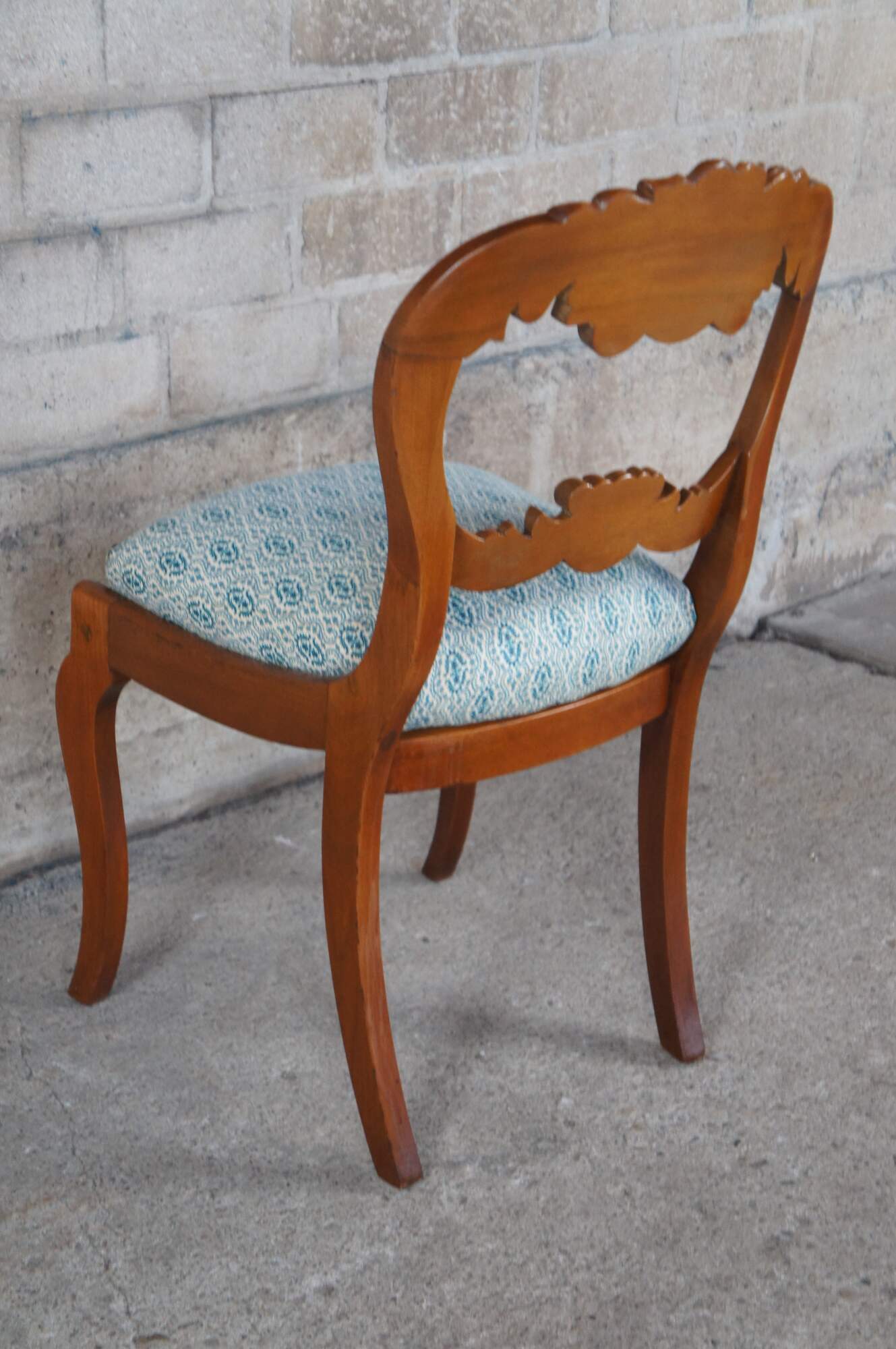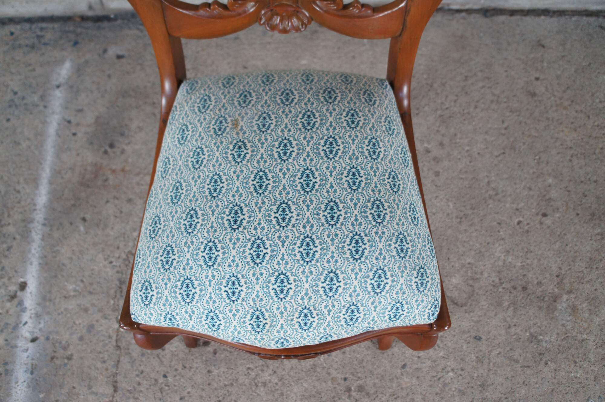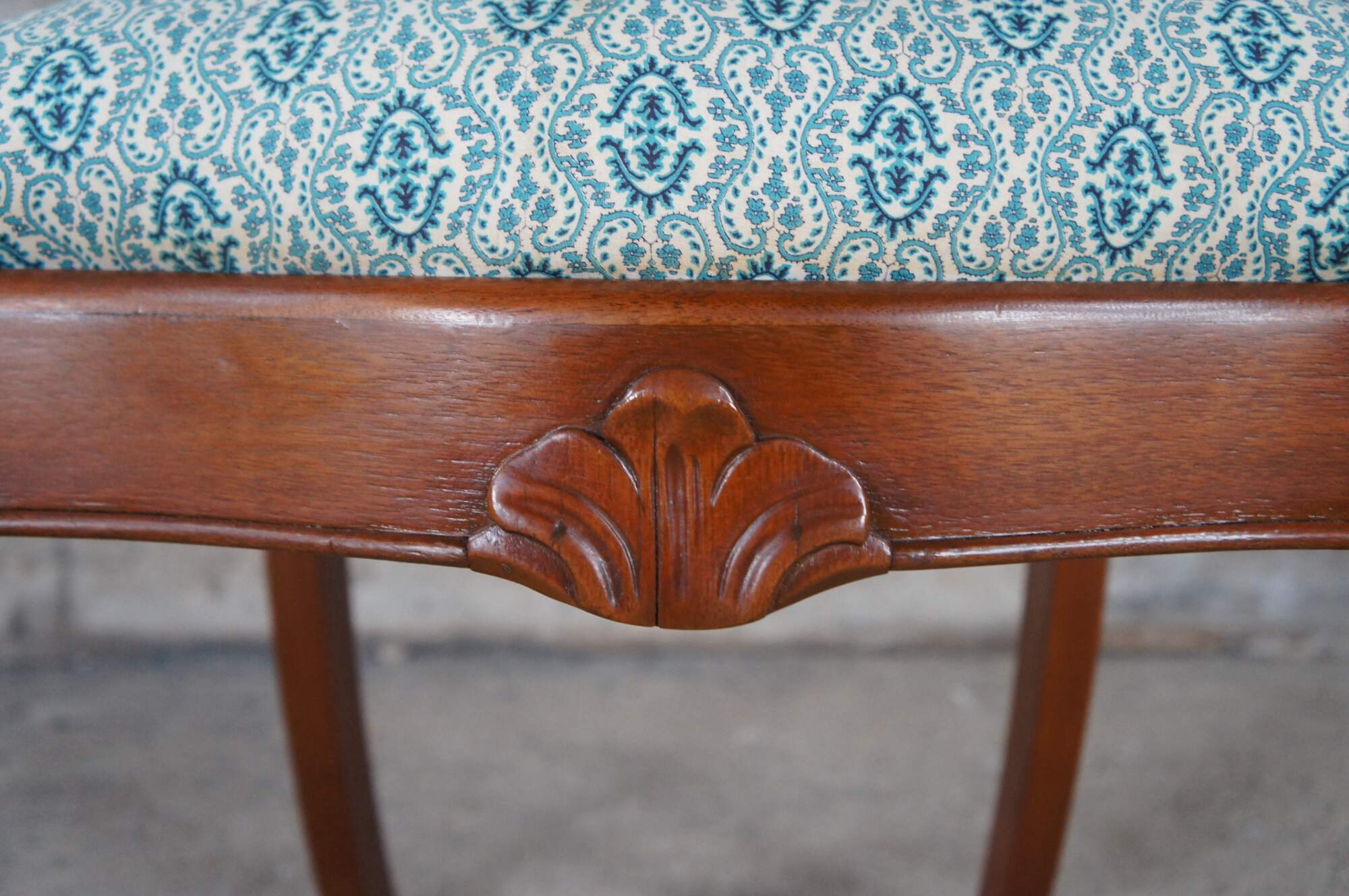 Antique Victorian parlor / vanity / desk chair. Made of carved walnut featuring a balloon back with carved floral rose design