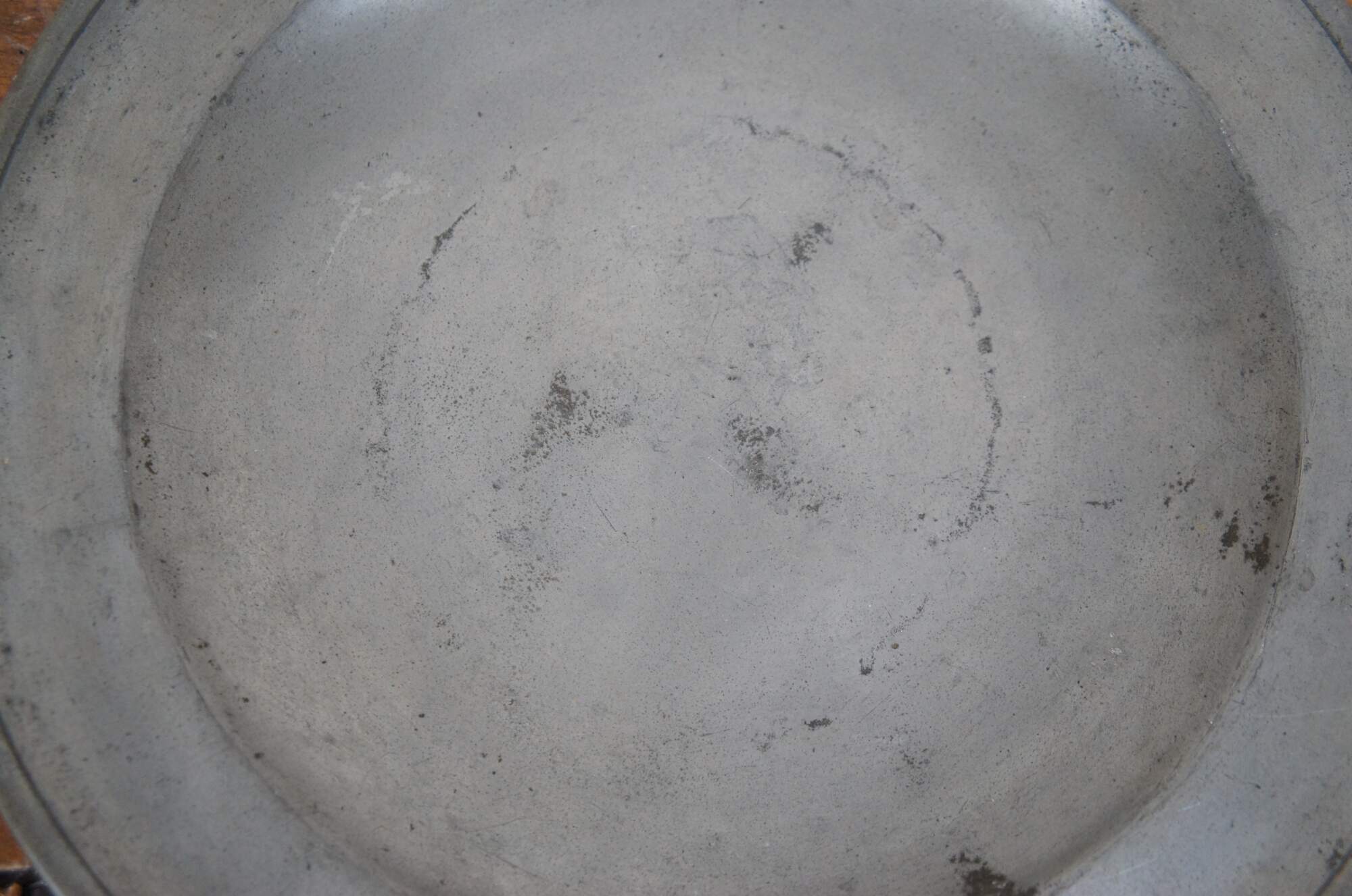 Late 18th early 19th century English Continental pewter charger / serving plate by Townsend & Compton (Thomas & Townsend Compton) of London. Round shape with recessed center and plain rim.
