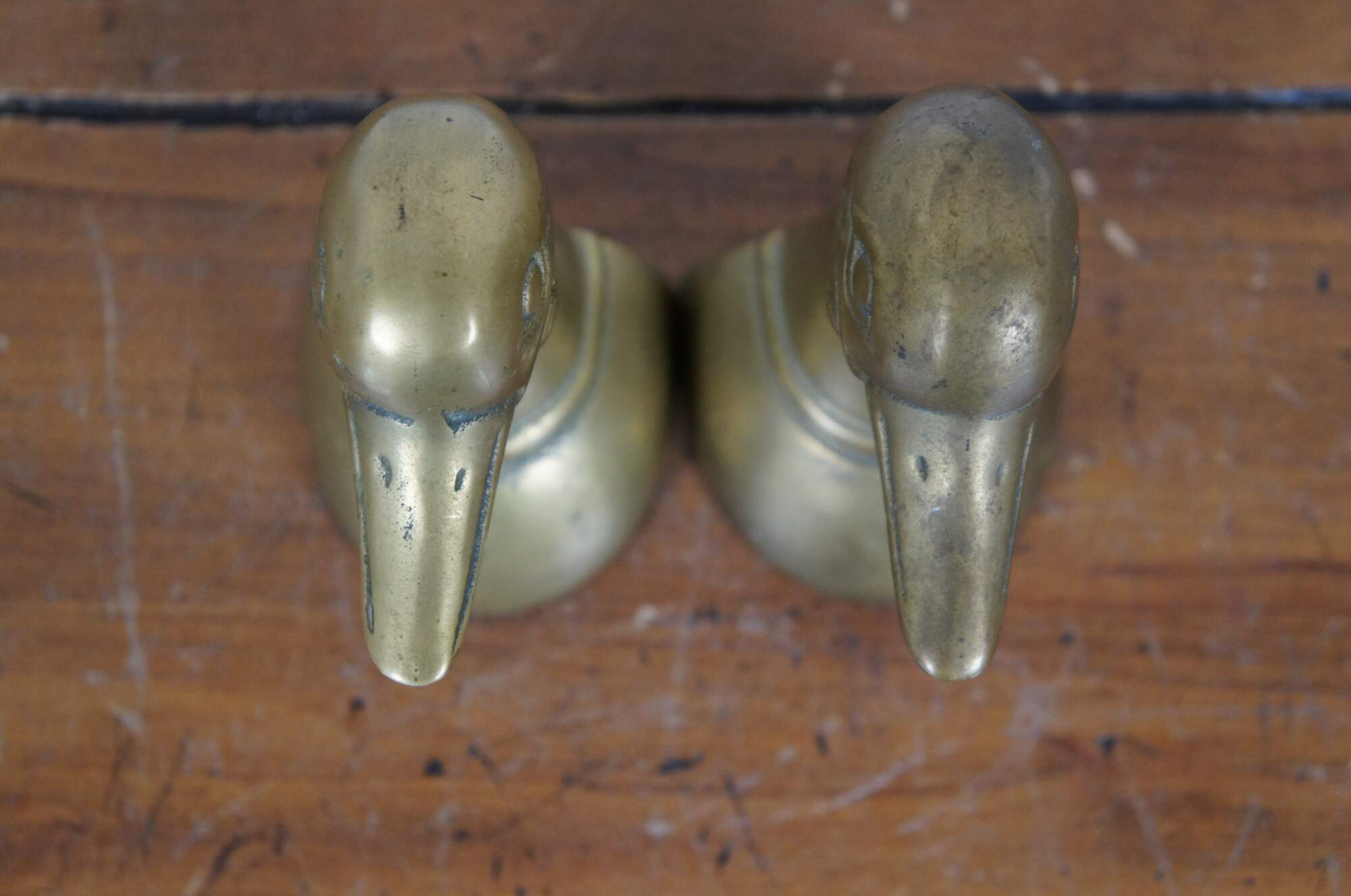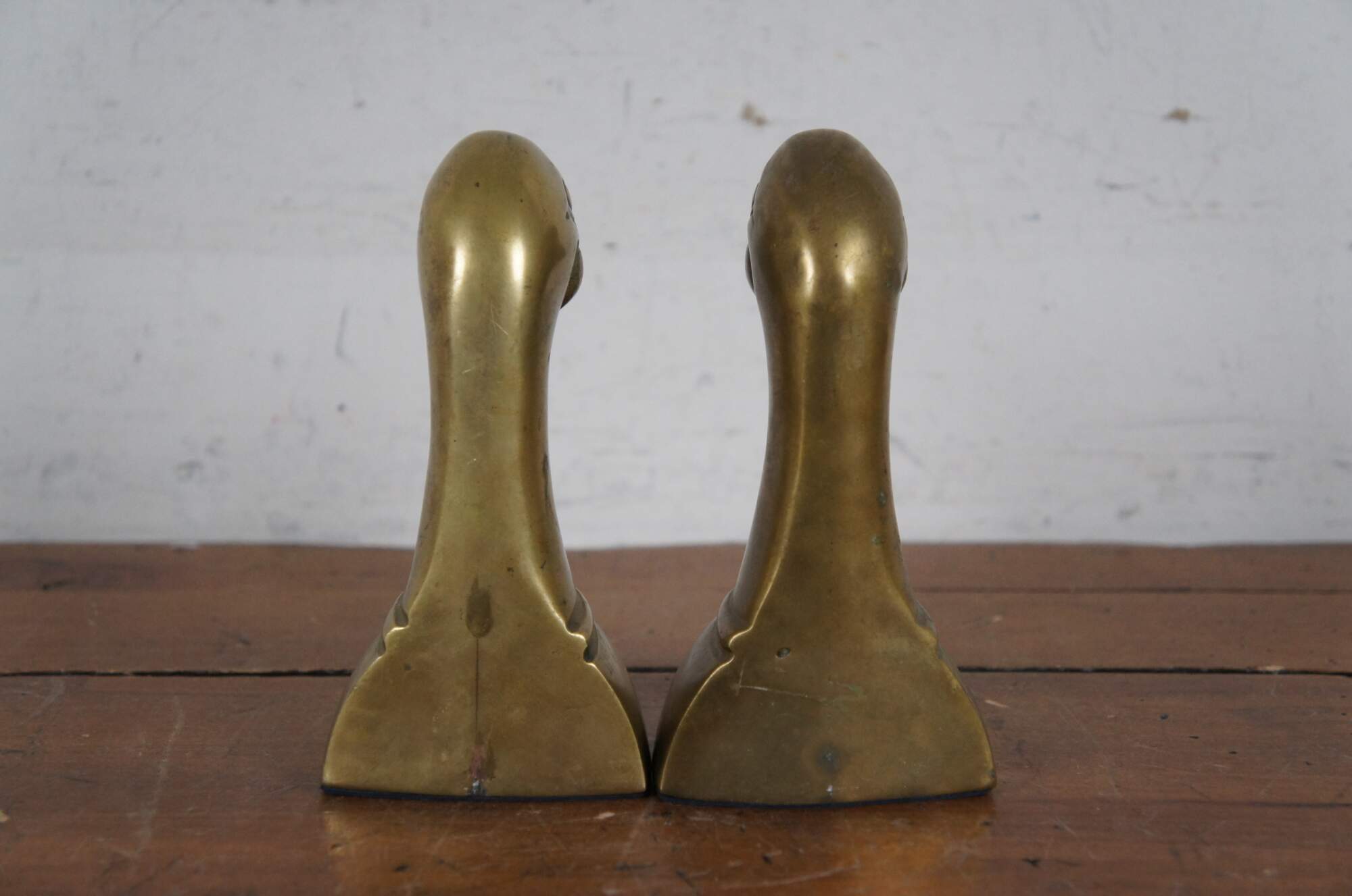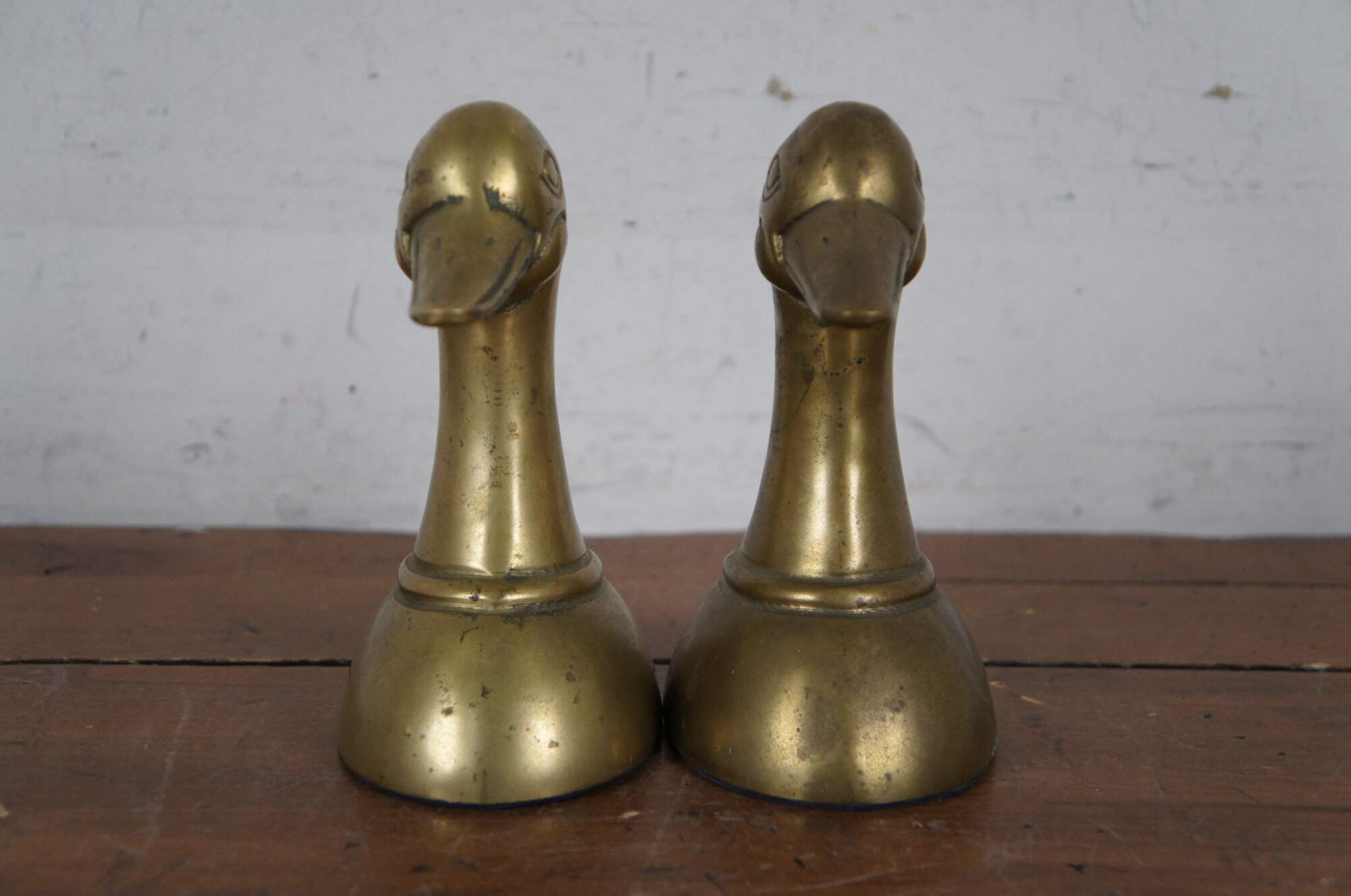 Mid 20th century pair of Leonard Silver mfg solid brass collection bookends in the shape of duck's / mallard heads. Made in Korea.