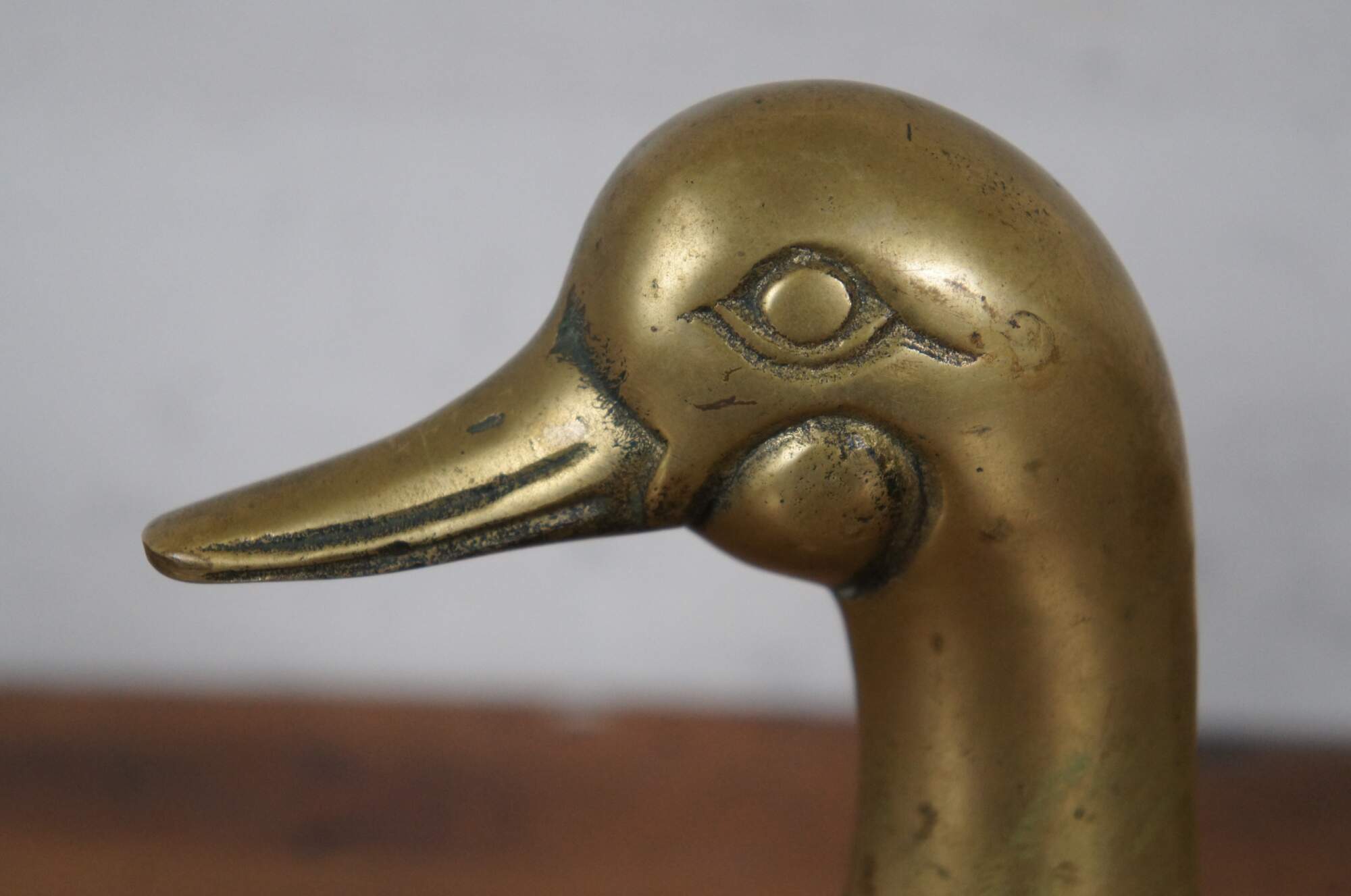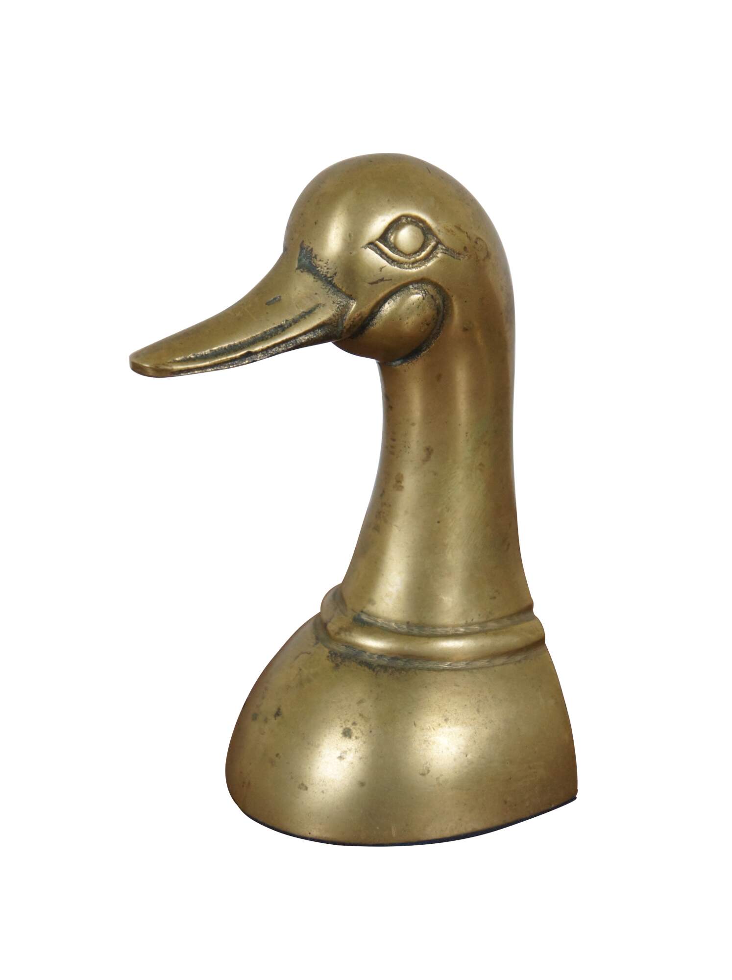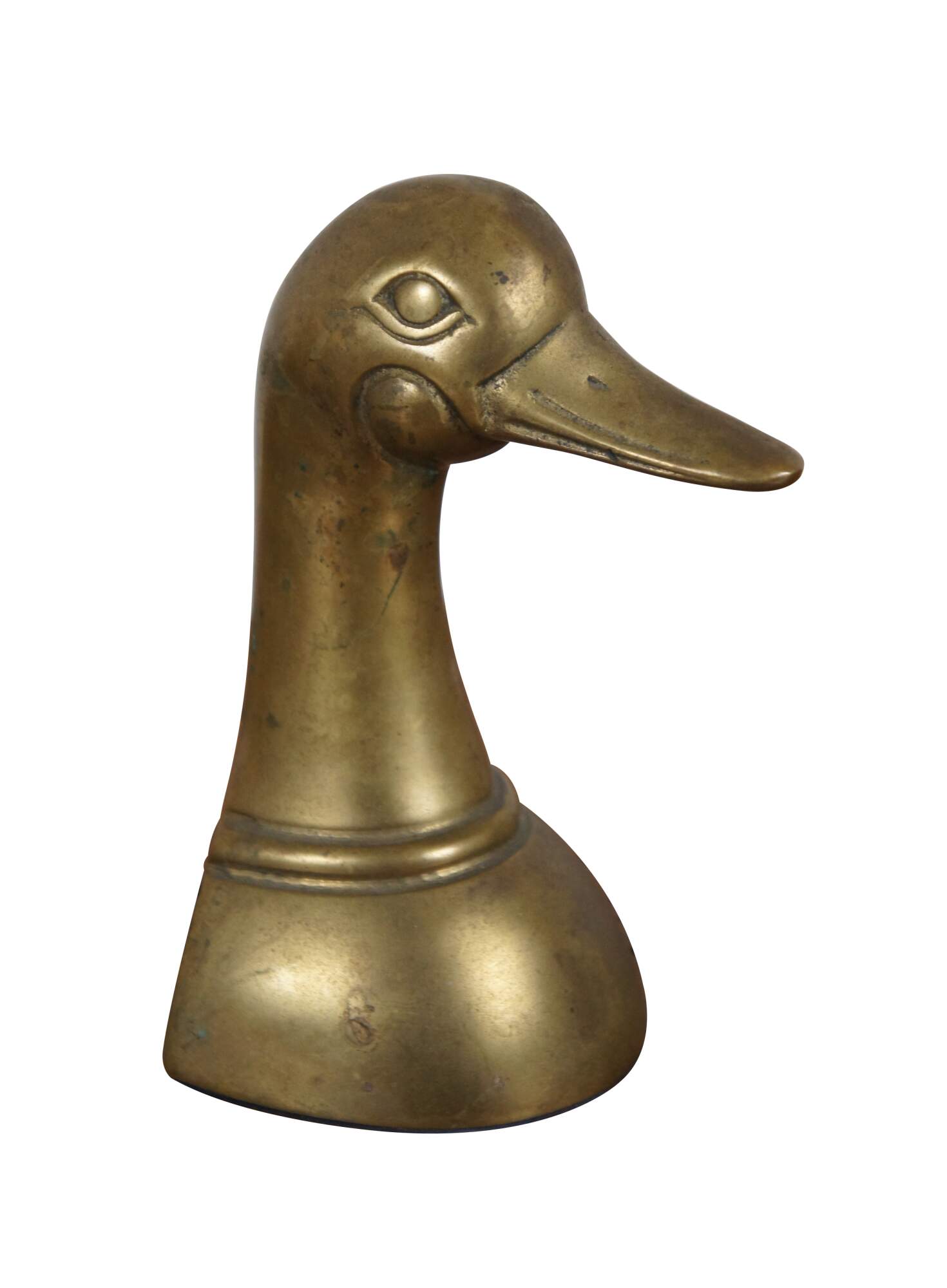 Mid 20th century pair of Leonard Silver mfg solid brass collection bookends in the shape of duck's / mallard heads. Made in Korea.