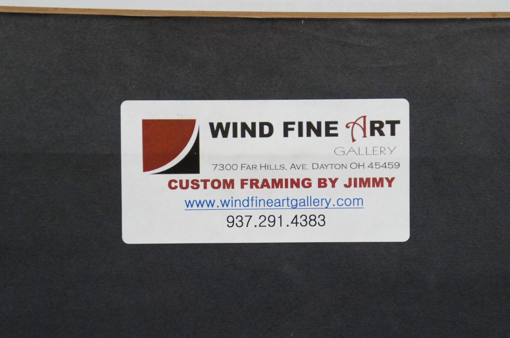 Limited edition hand embellished giclee print on canvas of "Bright Moment 2" by Anna Razumovskaya - depicts a bouquet of poppies and other flowers in a vanishing vase on a mottled yellow and purple background. Signed in lower right corner. Foliate carved gilt wood frame.