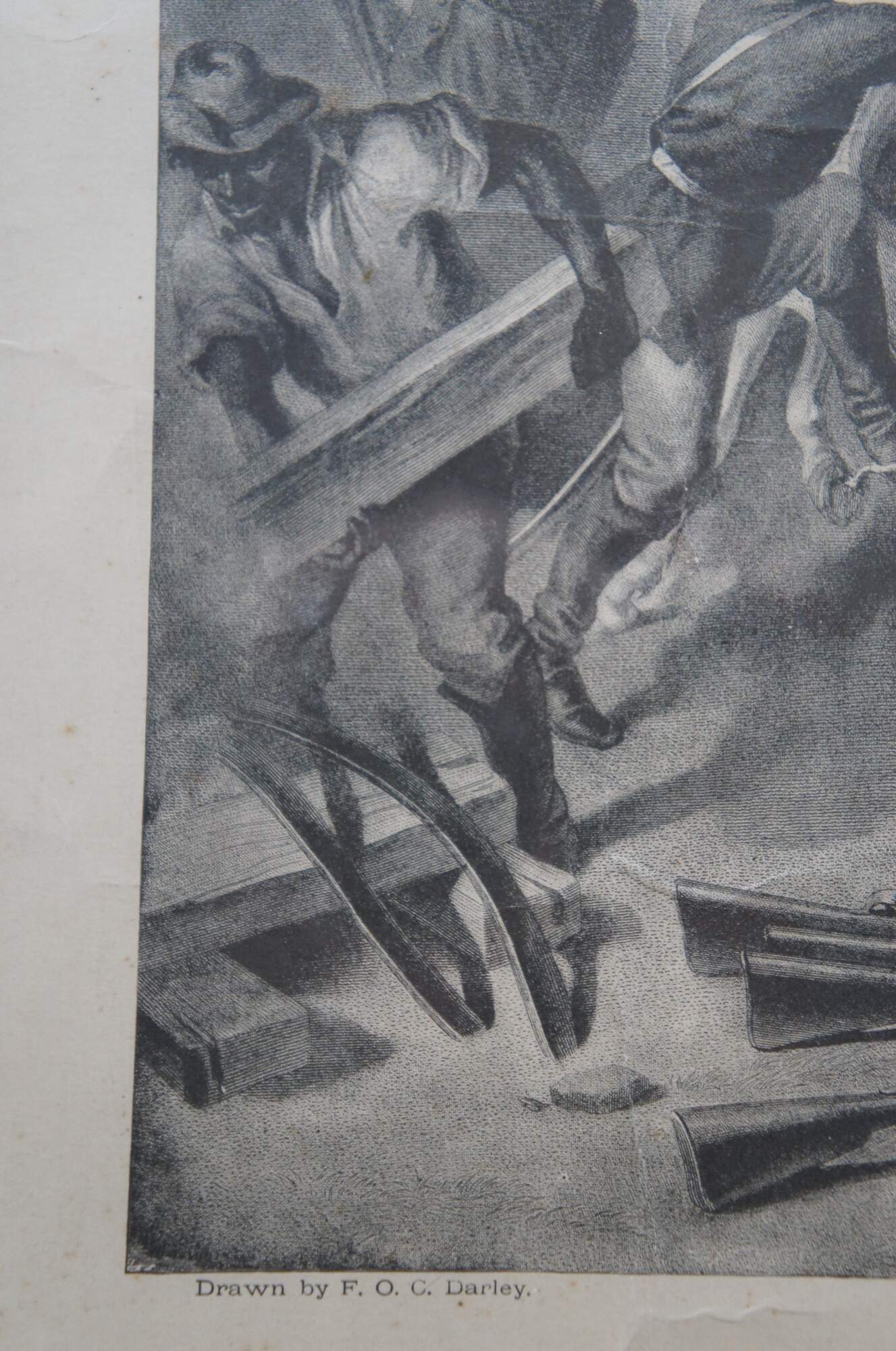 "Felix Octavius Carr Darley (June 23, 1822 – March 27, 1888), often credited as F. O. C. Darley, was an American illustrator, known for his illustrations in works by well-known 19th-century authors, including James Fenimore Cooper, Charles Dickens, Mary Mapes Dodge, Nathaniel Hawthorne, Washington Irving, George Lippard, Henry Wadsworth Longfellow, Donald Grant Mitchell, Clement Clarke Moore, Francis Parkman, Harriet Beecher Stowe and Nathaniel Parker Willis. Darley was a self-taught and prolific artist who started out as a staff artist for a Philadelphia publishing company, where he was given a wide variety of assignments. He later moved to New York City, and his work began to appear in magazines such as Harper's Weekly and in books by various publishers. Darley made 500 drawings for Benson John Lossing's History of the United States. Among his lithographic illustrations are those for Washington Irving's "The Legend of Sleepy Hollow", and some scenes in Indian life. The swing and vigor of his style, his facility, and versatility and the high average merit of his numerous works, make him one of the most noteworthy of American illustrators. " (Source: Wikipedia)