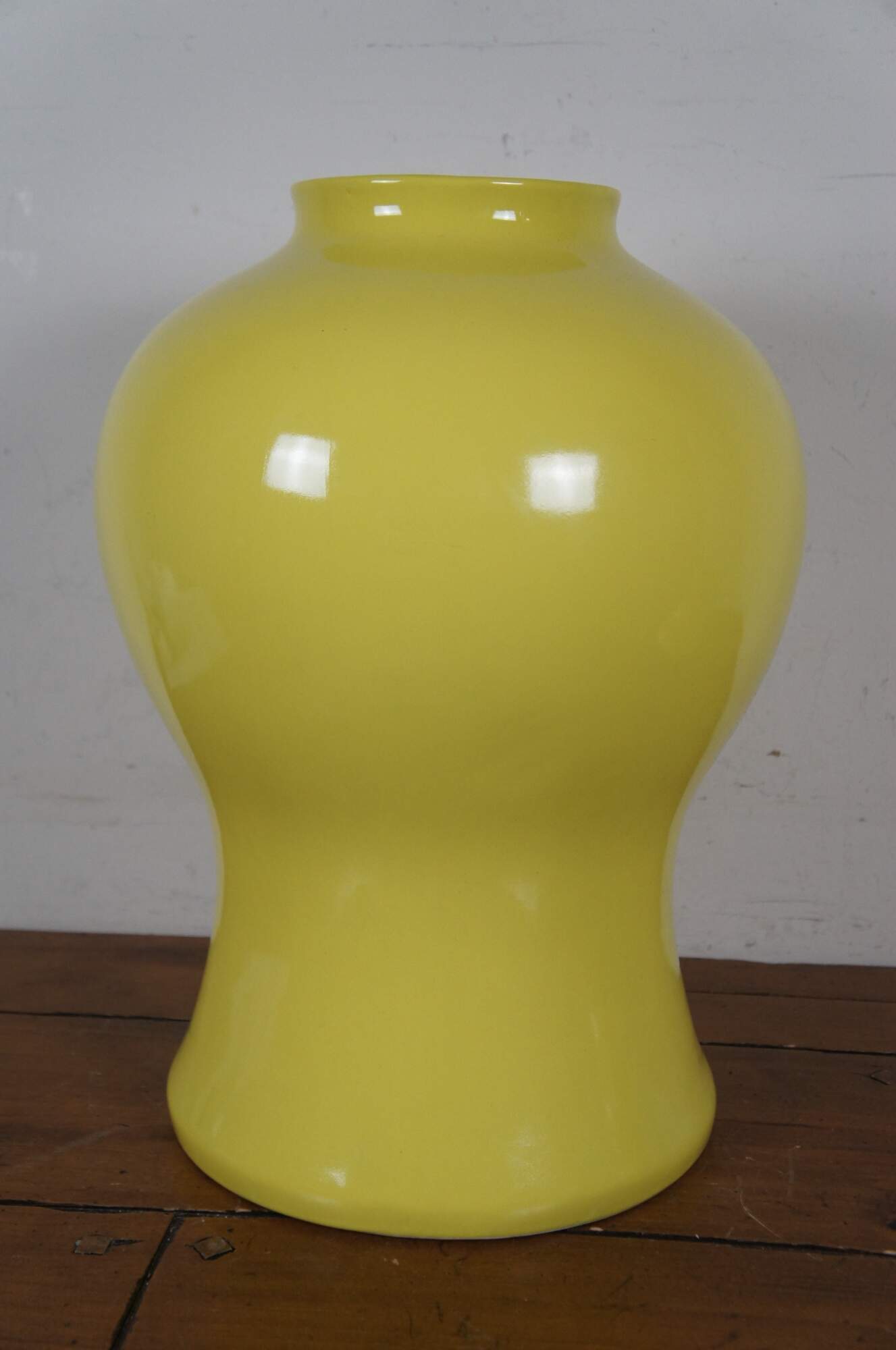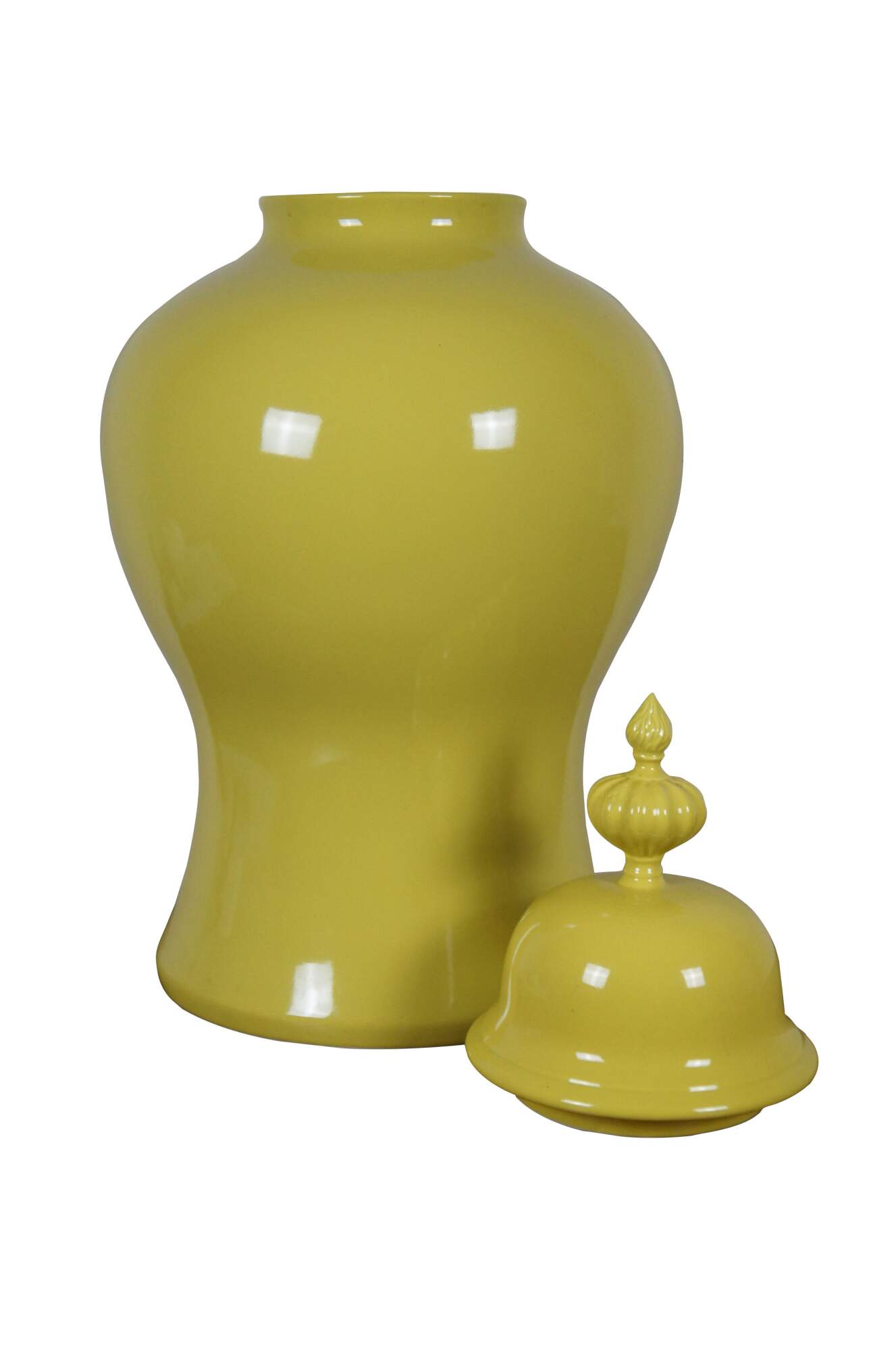 Global Views Colonial Williamsburg lidded Ginger Jar, in Yellow. Made from ceramic inspired by the fluted urn-shaped finials that crown a green japanned bedstead in the Governor’s Palace in Colonial Williamsburg’s Historic Area.