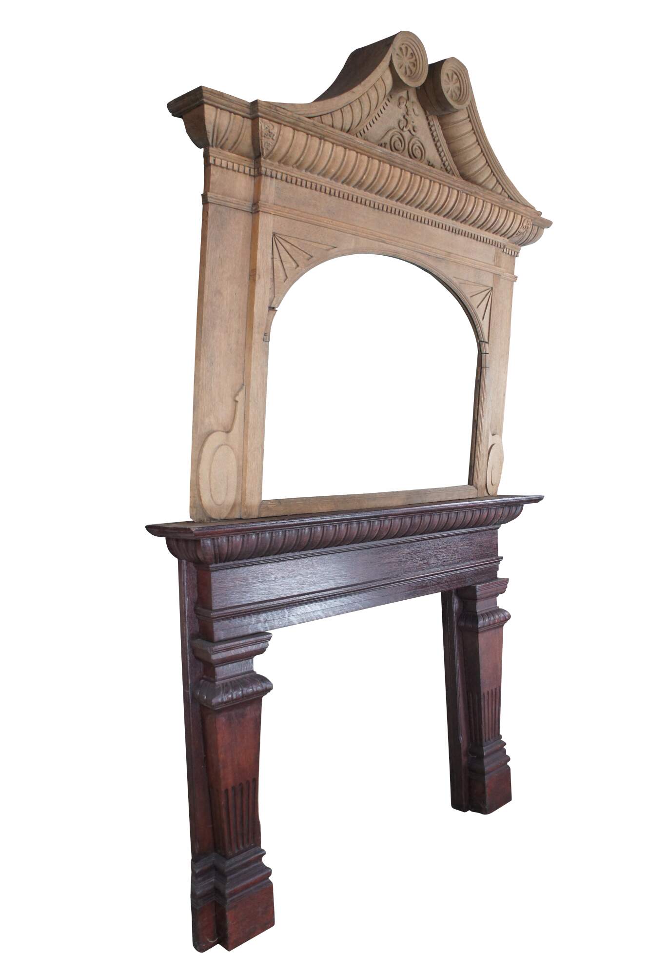 Good Antique Condition; Overmantel and crown are unfinished. Some splits and missing trim. Edgewear