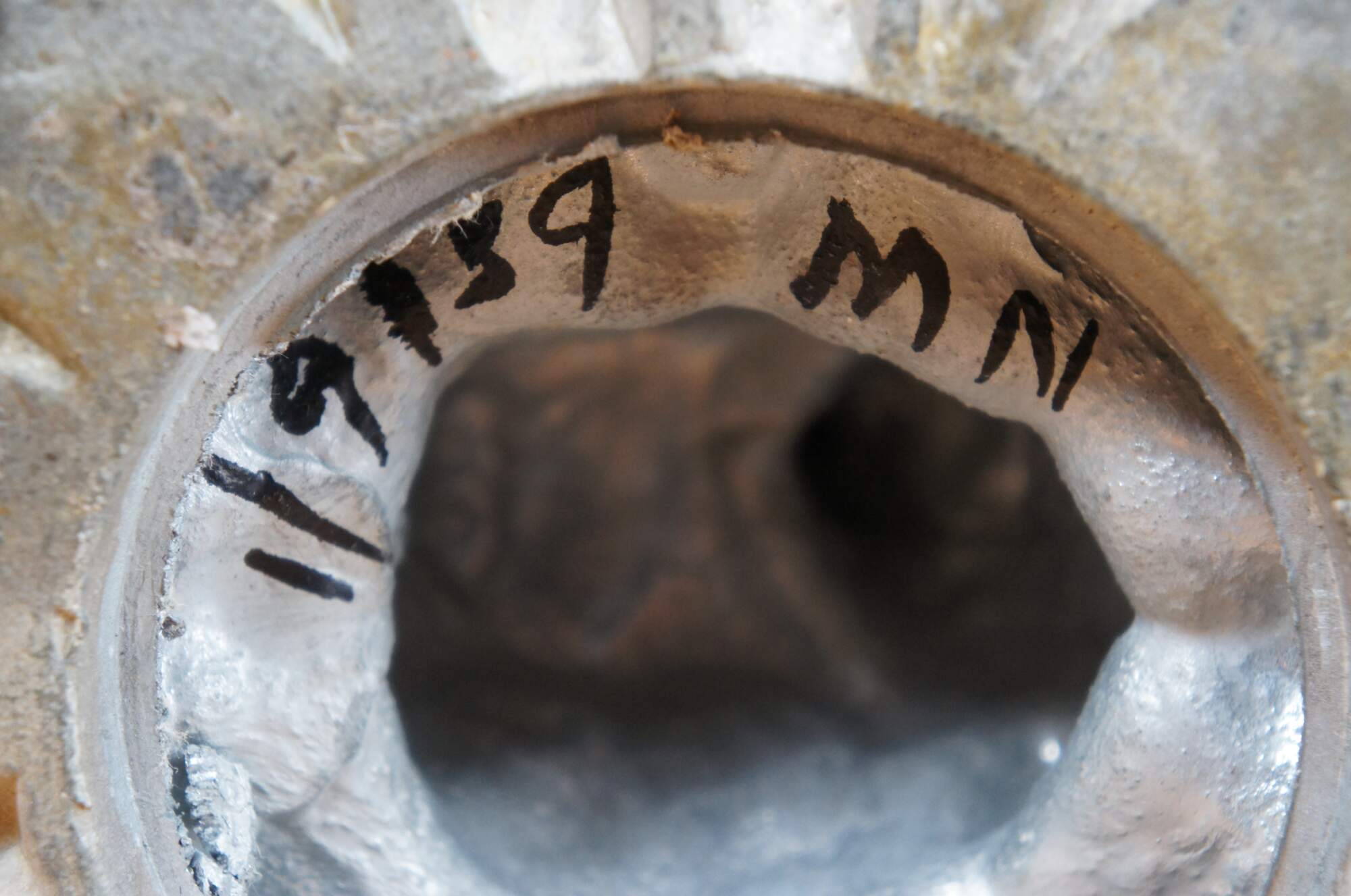 Pair of rare mid 20th century French Empire / Neoclassical compote bowls featuring cast metal pedestal bases in the shape of delphins / dolphins / fish, painted in off white, balancing cross cut crystal bowls on the tops of their tails. Base appears to read 1/9/1959.