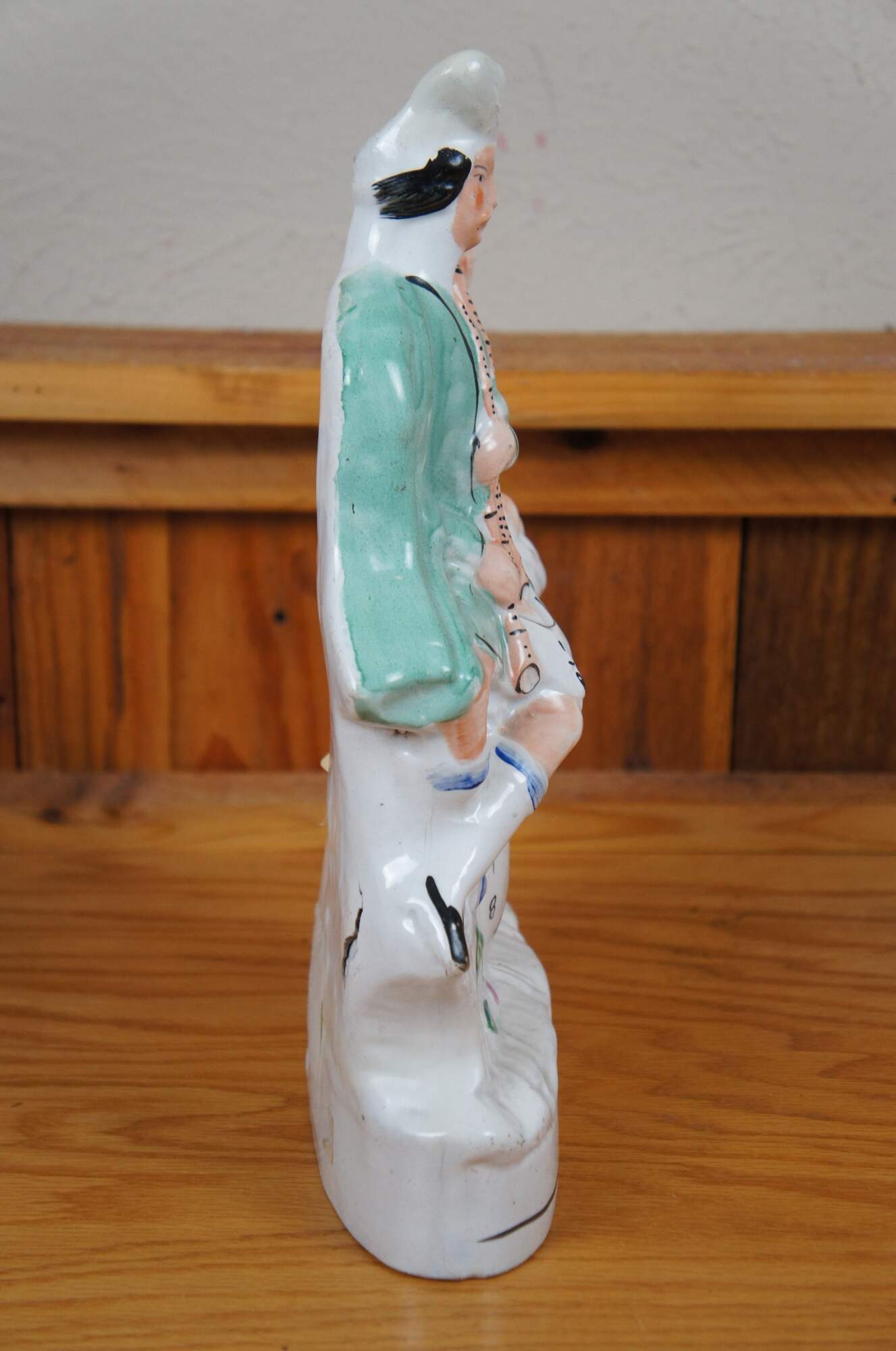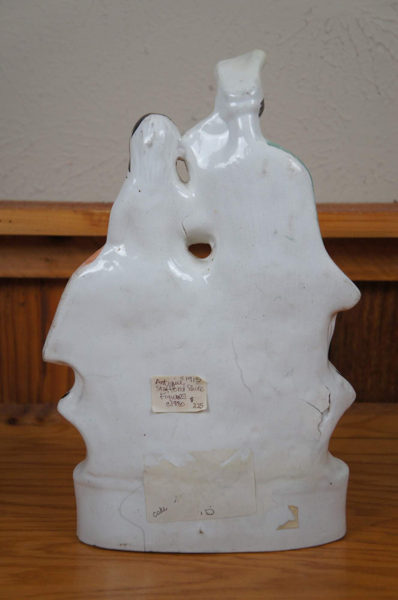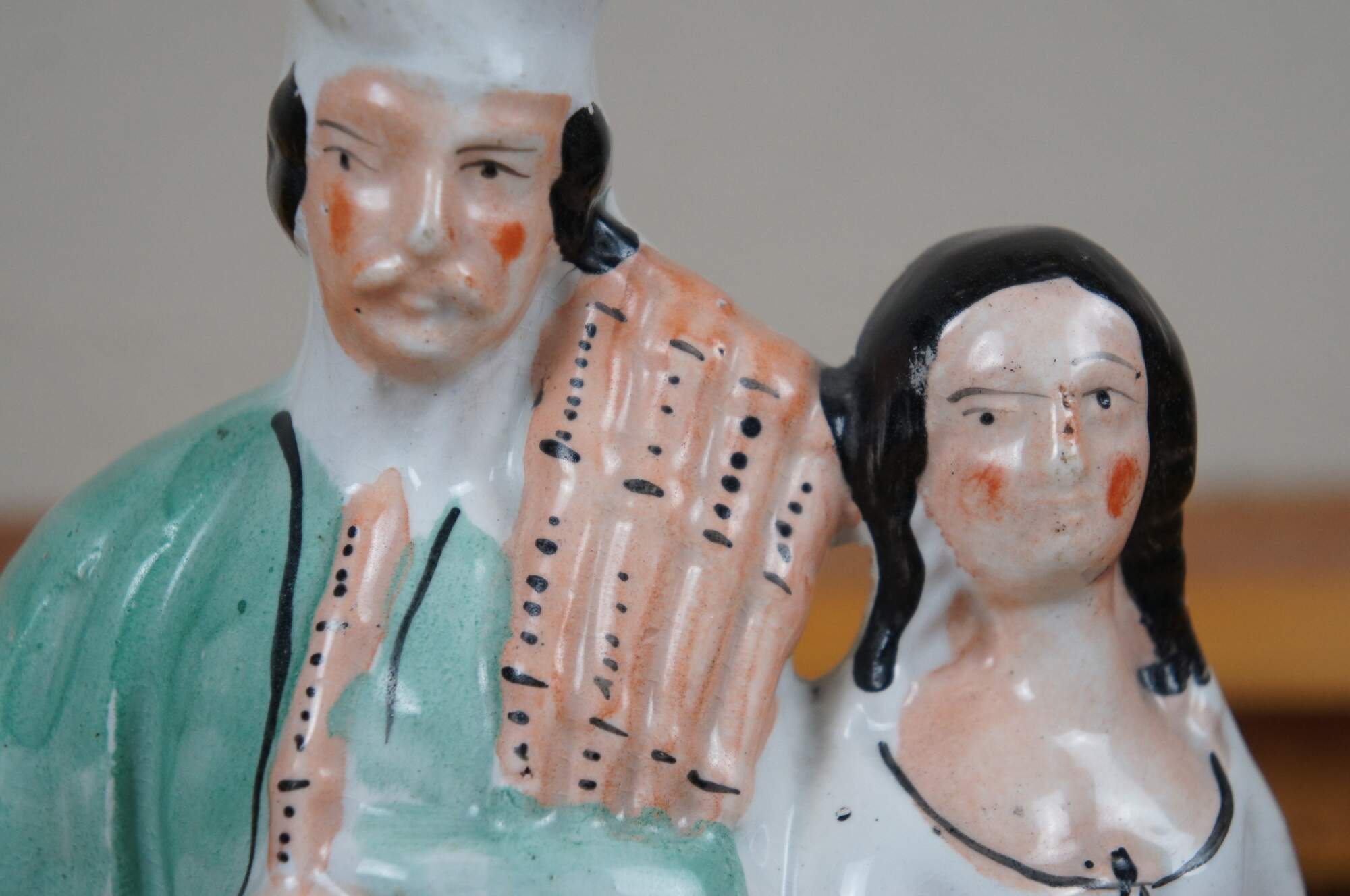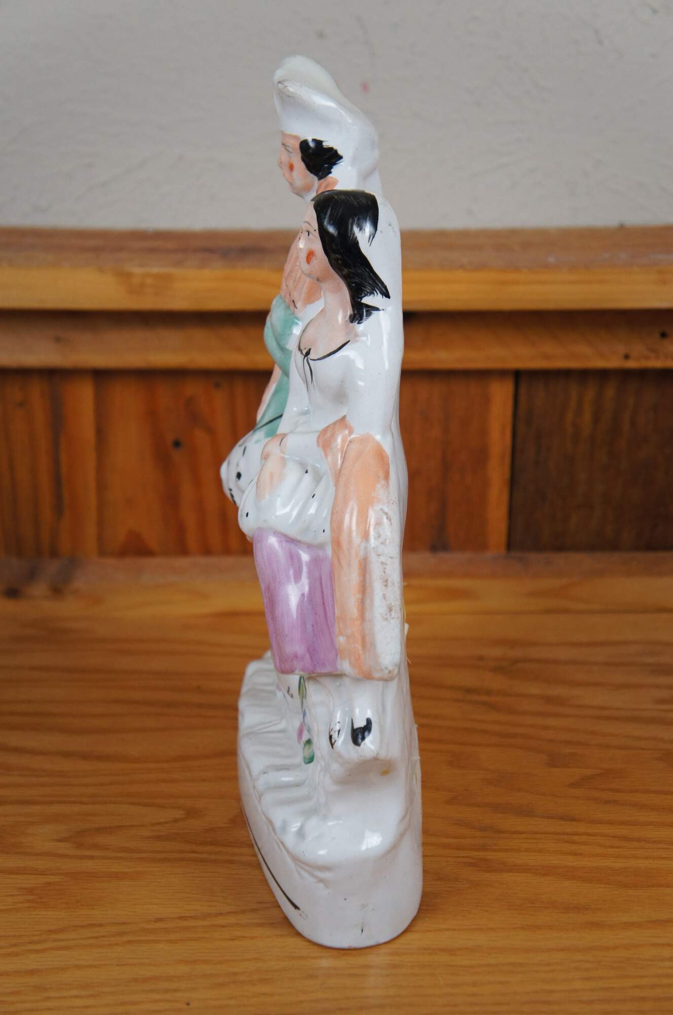 Antique Staffordshire Scottish Highland Couple Bag Pipes Clock Figurine 14"