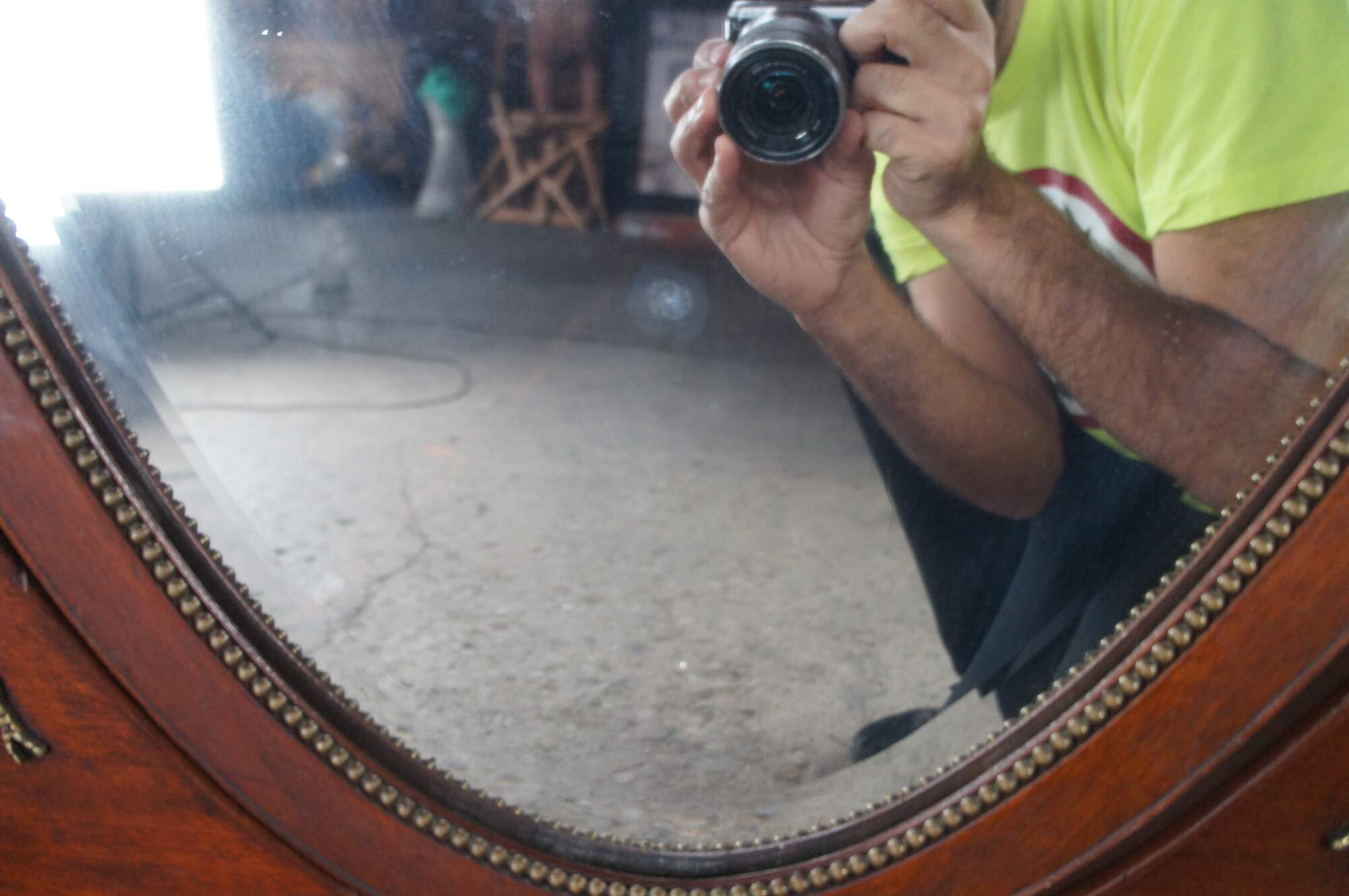 Good Antique Condition; general wear from use and age. Marking, distressing and scuffing from use and age. Some spotting and silver loss to the mirror