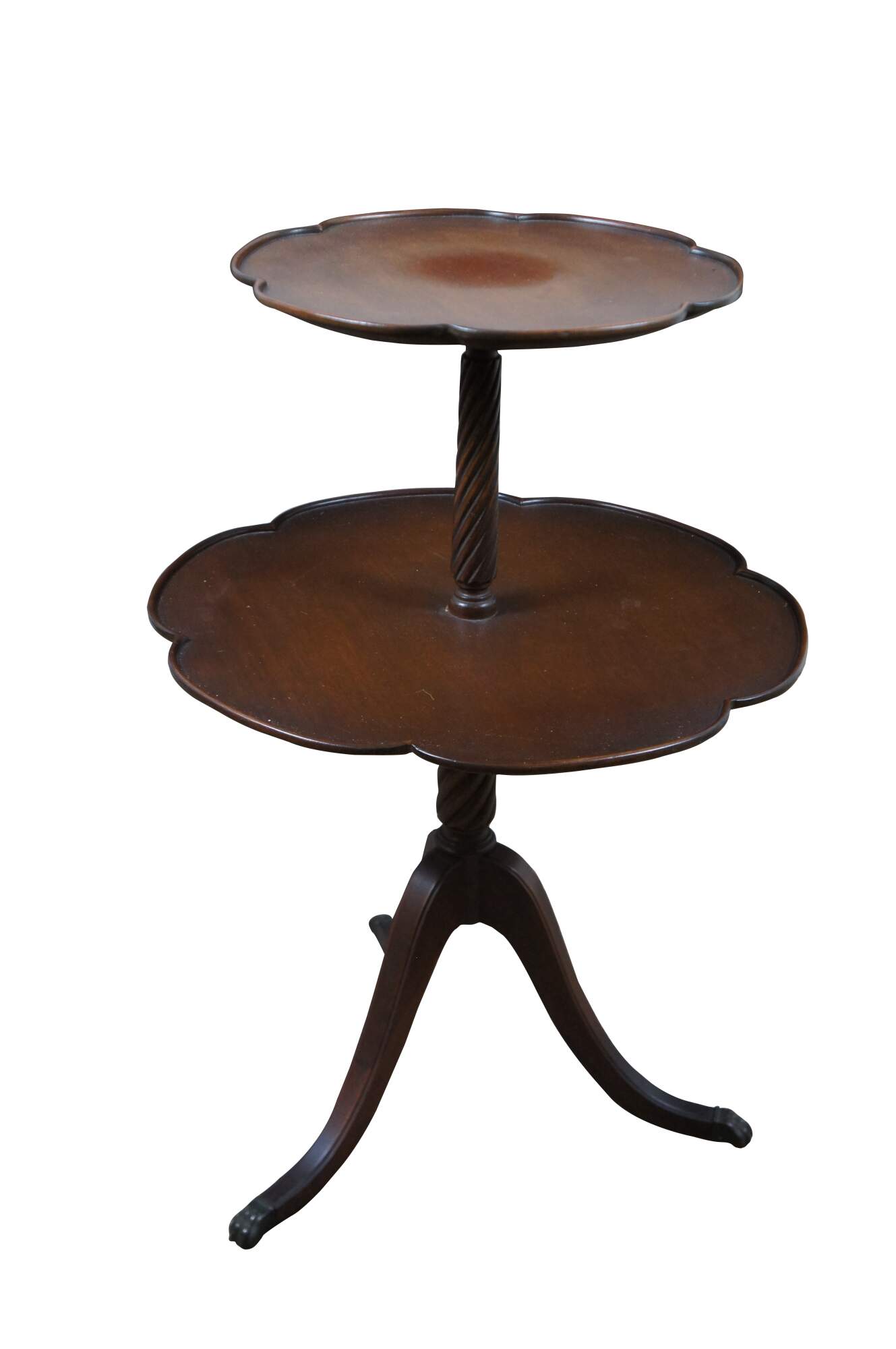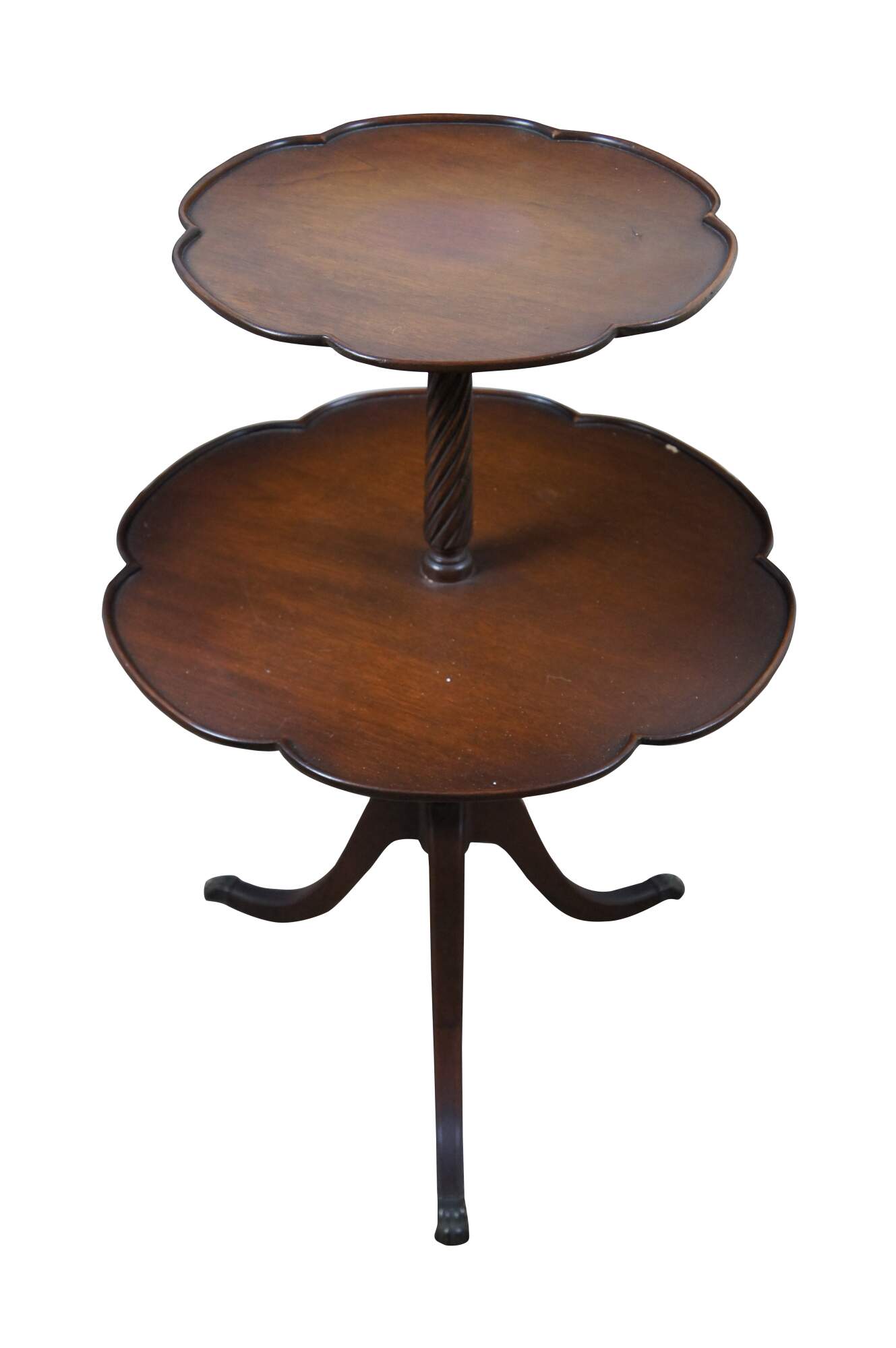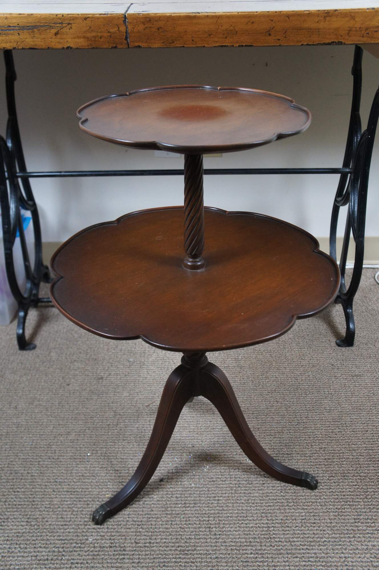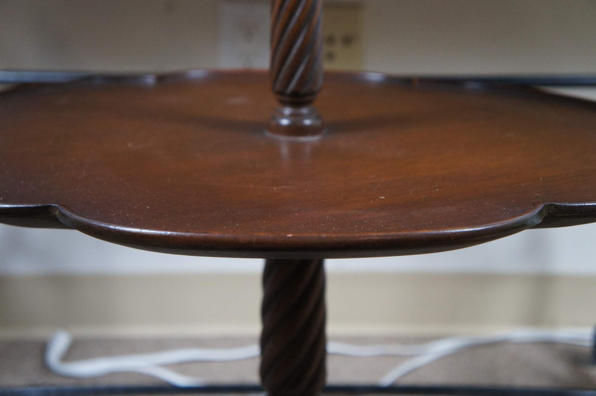 Antique Mahogany 2 Tier Pie Crust Dumbwaiter Butler Pedestal Serving Table 20"
