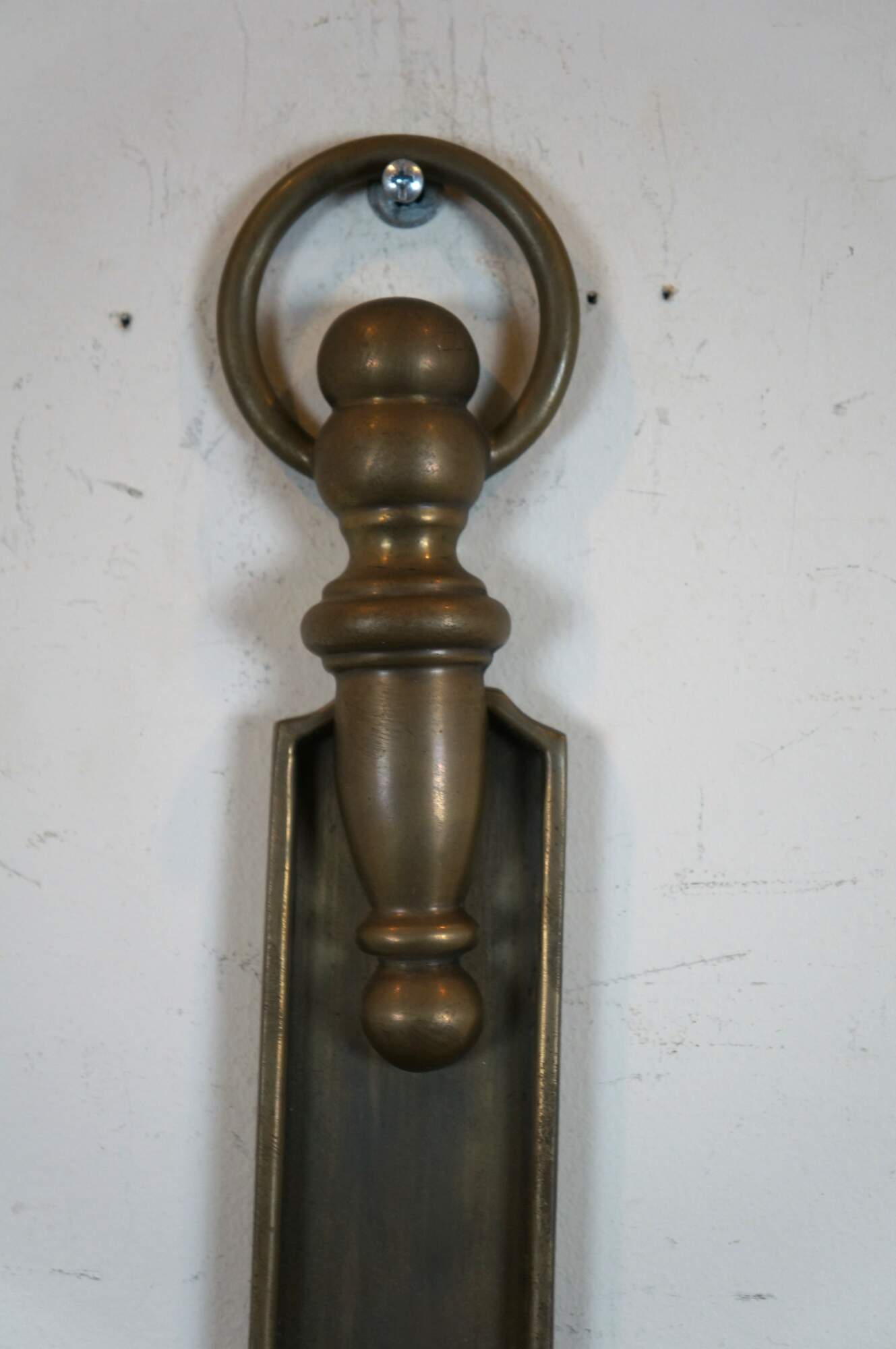 Pair of EF Chapman Visual Comfort Georgian style wall hanging candle sconces - brass finish with clear glass hurricane. Holds one pillar candle; not electrified.