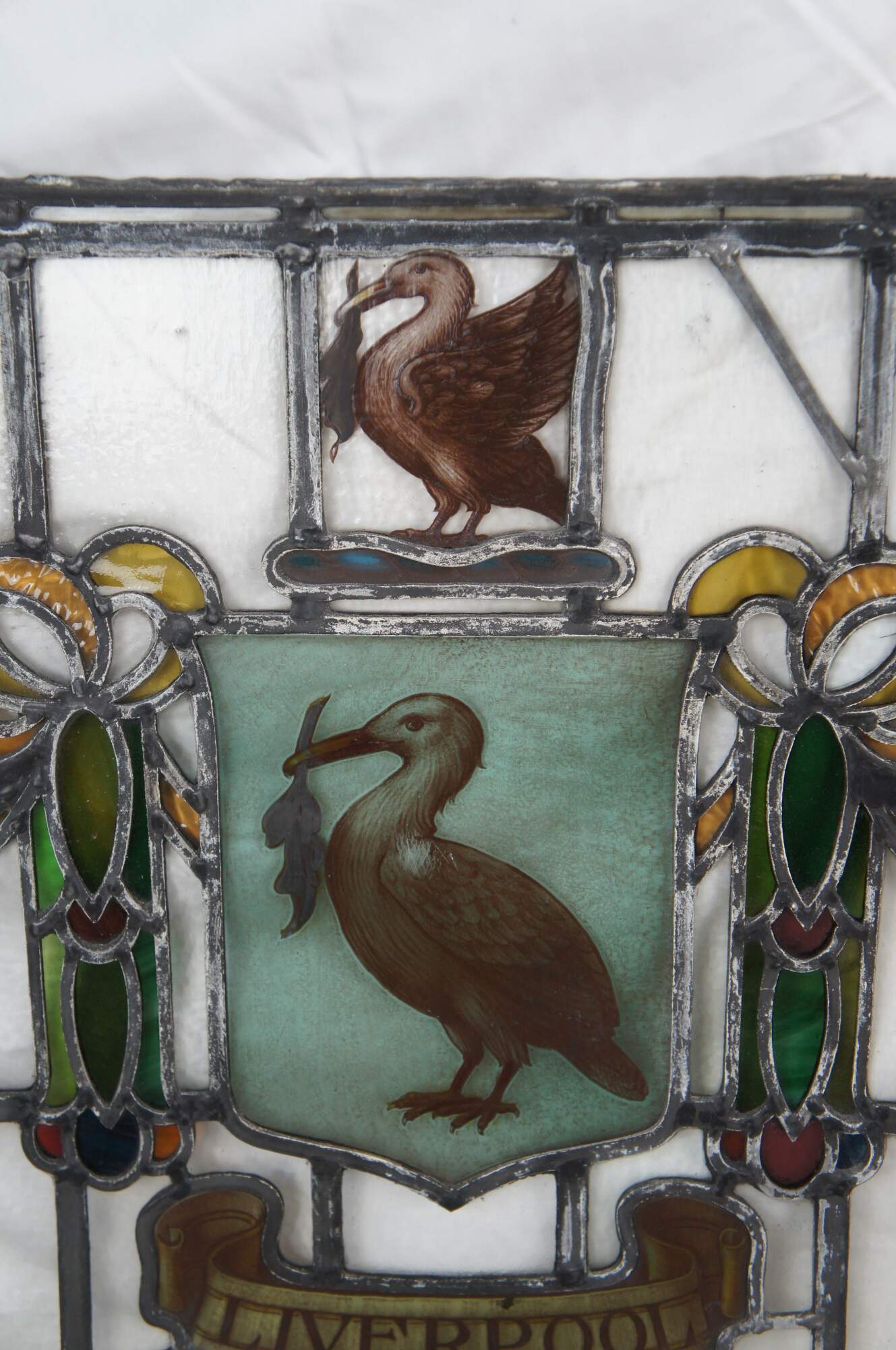 The cormorant is often referred to as the Liver Bird, and is used widely in the city. Liverpool was founded in 1207 by King John. He needed a new port to ship his troops to Ireland and to control the Irish Sea. The new town adopted King John's seal as its own. The seal showed the eagle of St John holding a sprig of broom in its beak. The broom, or planta genista was the symbol of the royal house of the Plantagenets.