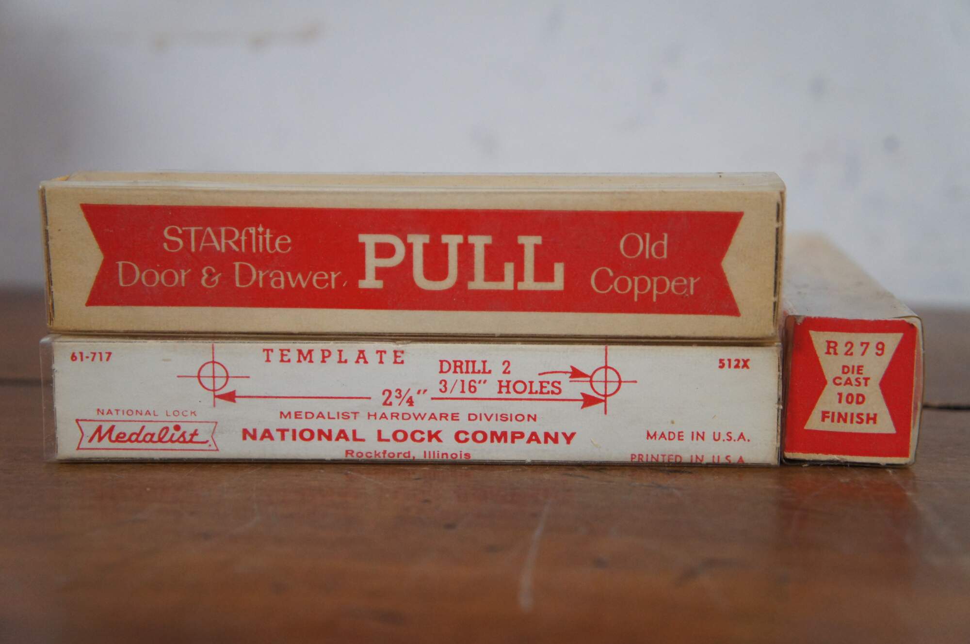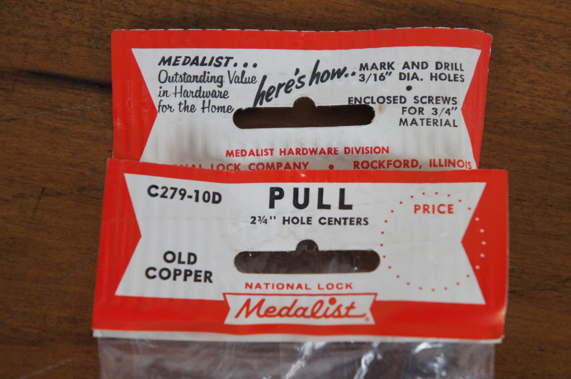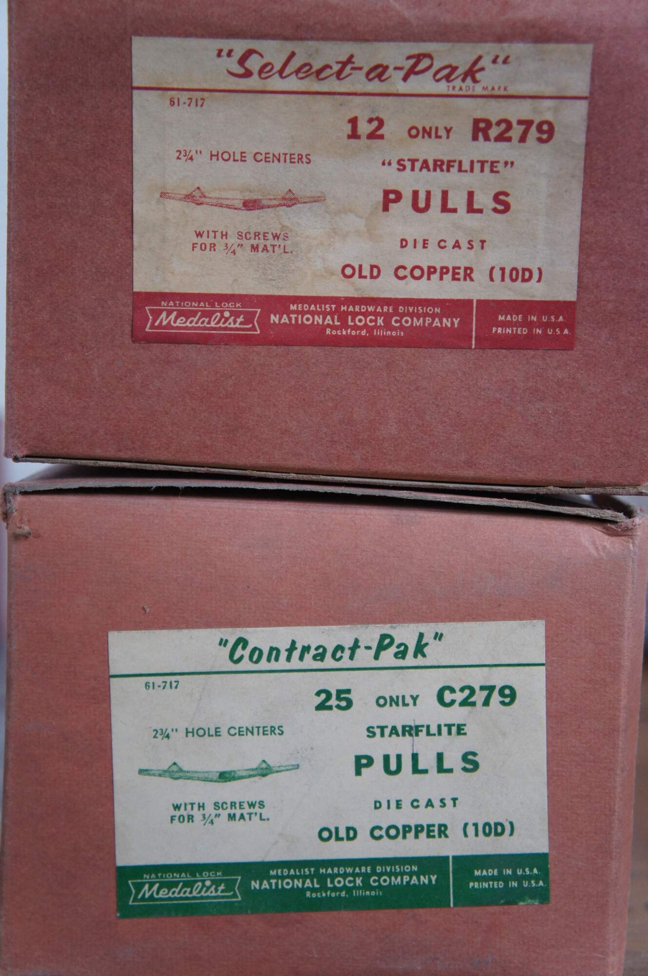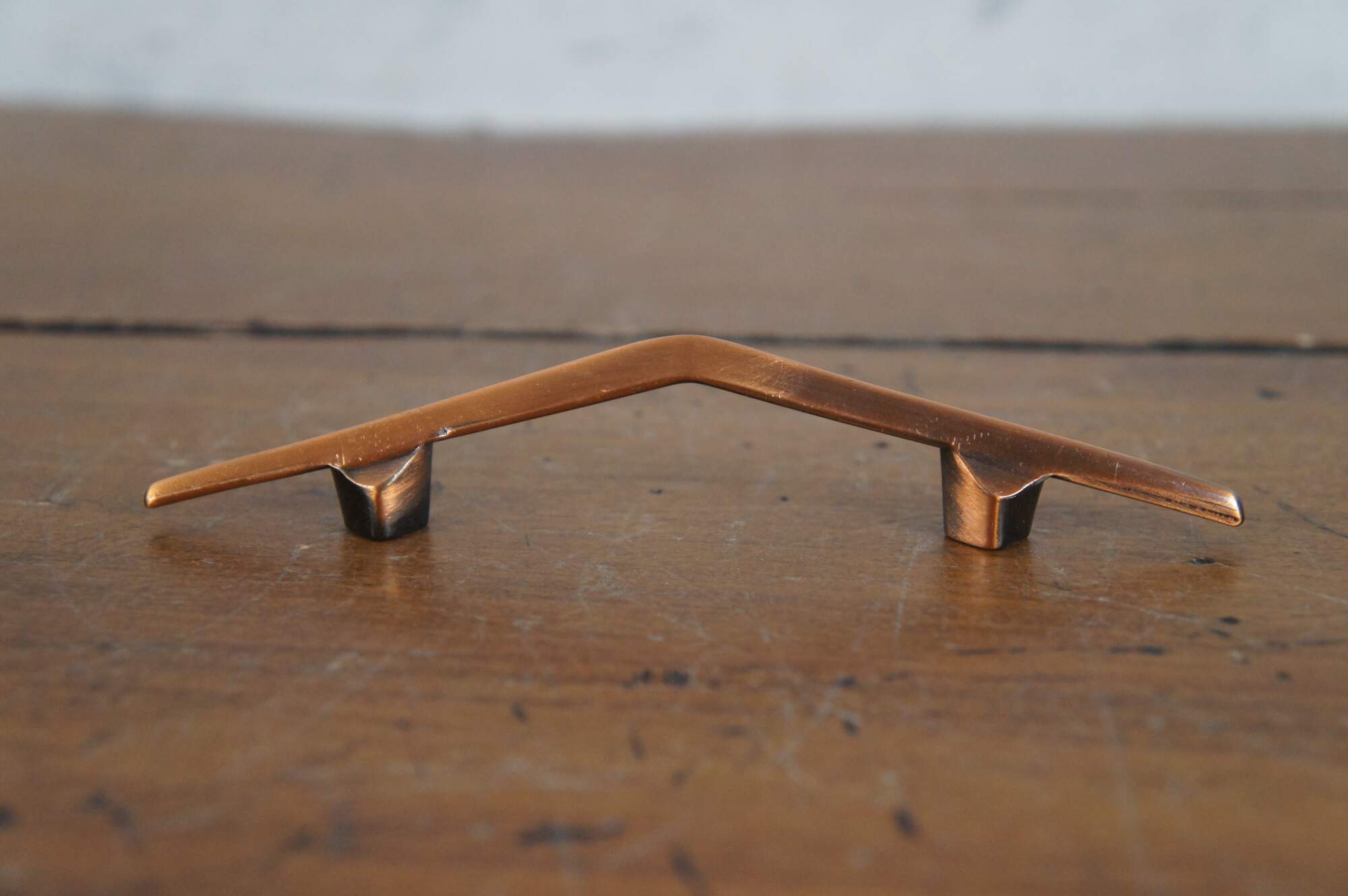 95 Available - Mid to late 20th century old-stock die cast drawer / cabinet pulls. Nationa Lock Company - Medalist, item number R279 / C279 "Starflite" Pulls, Old Copper (10D). 2.75" Hole Centers. Mid Century Modern styling. Triangular airplane / arrow-like shape.