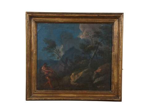 Antique Samson and the Lion oil painting on canvas. Framed in gold.
