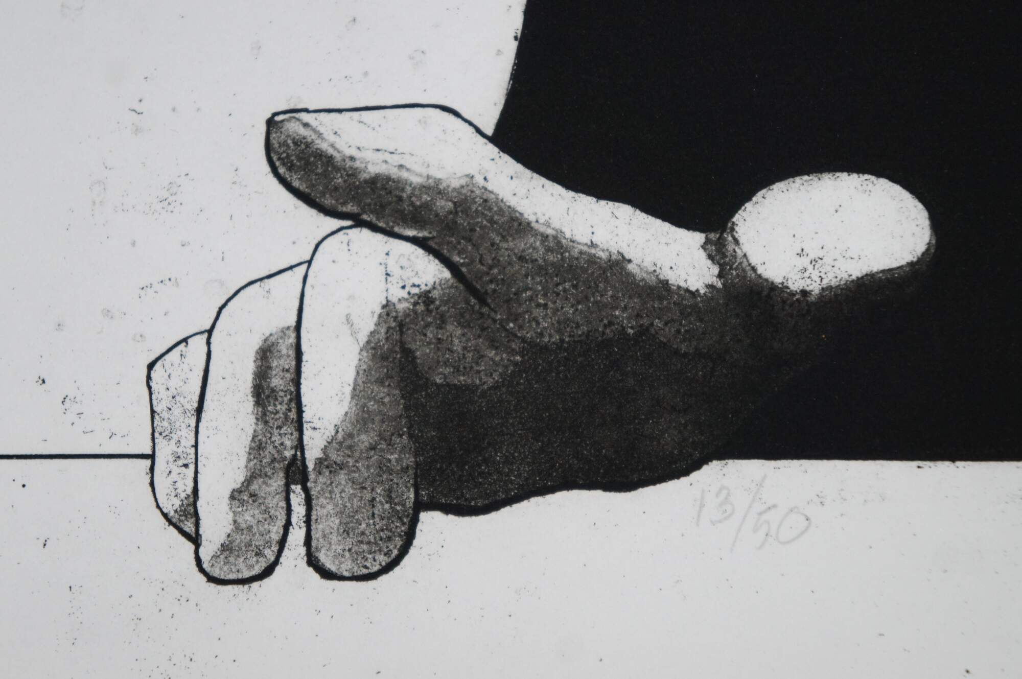 "Charles E. “Charlie” Roth (American, 1948-) internationally recognized artist, printmaker, illustrator, painter and instructor primarily known for his figurative etchings in aquatint, engravings, paintings and graphite drawings. Charles Roth studied printmaking at the State University of New York College at Fredonia, NY, and after graduation, he served for two years in the U.S. Army as an illustrator for the Government’s General Staff in Washington, DC, doing illustration work for the White House, the Pentagon and the Smithsonian Institution. In the fall of 1973, he furthered his art education in advanced printmaking in the Master of Fine Arts Program for two years at the State University of New York at Buffalo under noted printmaker Harvey Breverman (American, 1934-), earning his Master's Degree in 1975. After receiving his Master's, Charles Roth encountered the daunting problem of how to continue making his prints without having access to a professional etching press. Since he couldn’t afford to buy one at the size he needed to accommodate the large size and scale of his etchings, he set out to build one. With the help of his father, they designed and built what was believed to be one of the largest etching presses in the country at that time, thus opening the Roth Print Shop out of his garage in Angola, NY. The press was massive in size at 48” x 72”, and was made from scrap printing press parts and various other mechanical pieces, sheet metal, and an assortment of hardware. As a printmaker, Roth took inspiration from old magazines such as Life and Look, as well as from old antique photographs of people during the Great Depression as inspiration for his etchings. He would draw and re-draw his figures, then simplify and stylize the image until only the essential expressive elements remained, and typically he would only do small limited edition runs of 20-50 impressions for each image. Roth has exhibited locally, nationwide and abroad in many juried, group and solo exhibitions, winning numerous awards and prizes for his artwork. Roth credited his wife Beverly Ann (née Shulz) who was a reading teacher in the local school system, as the sustaining force in his efforts to bring his prints to the attention of commercial galleries early on in his career. In the summers, he and his wife would load his portfolio of prints into their car and they would visit various museums in different cities all over the country and in Canada, not only to view the art but to make contacts with the galleries in hopes of selling his artwork. The effort paid off and he soon exhibited and sold his prints in eight different galleries, in cities such as Washington, DC, Chicago, Cincinnati and Toronto. In addition to exhibiting locally, Roth was invited to show four intaglio works as part of the Department of States “Art in Embassies Program” at United States Embassy in Luxembourg in 1976, sharing the spotlight with notable American artists such as Willem de Kooning (1904-1997), Richard Estes (1932-) and Samuel Lewis Francis (1923-1994). He later exhibited three etchings at the “7th International Print Biennale” in 1978 in Kraków, Poland and had a solo show Berne, Switzerland in 1983. He also participated as a fine arts judge in several local art shows in and around Western New York. He is currently a Professor in the Graphic Arts department at Erie Community College, Orchard Park, NY where he has been teaching for over 36 years. Roth’s printmaking techniques, artwork and life were profiled in the American Artist magazine article titled “The Etchings of Charles Roth”, by Christian Emmitt (Vol. 43 Issue 447, Pgs. 80-85 & 116-117, October 1979). " (Source: Meibohm Fine Arts)