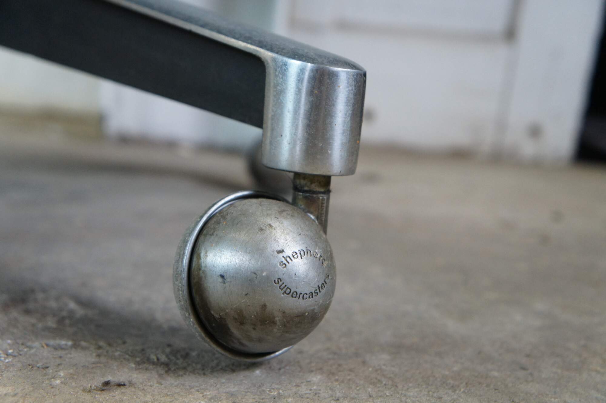 Vincent Cafiero Executive Task Chair by Knoll International, c. 1960. Features a minimalist design with original black leather tufted seat over a swivel base with Shepherd casters. Includes tilt function. Edition: Model no. 181