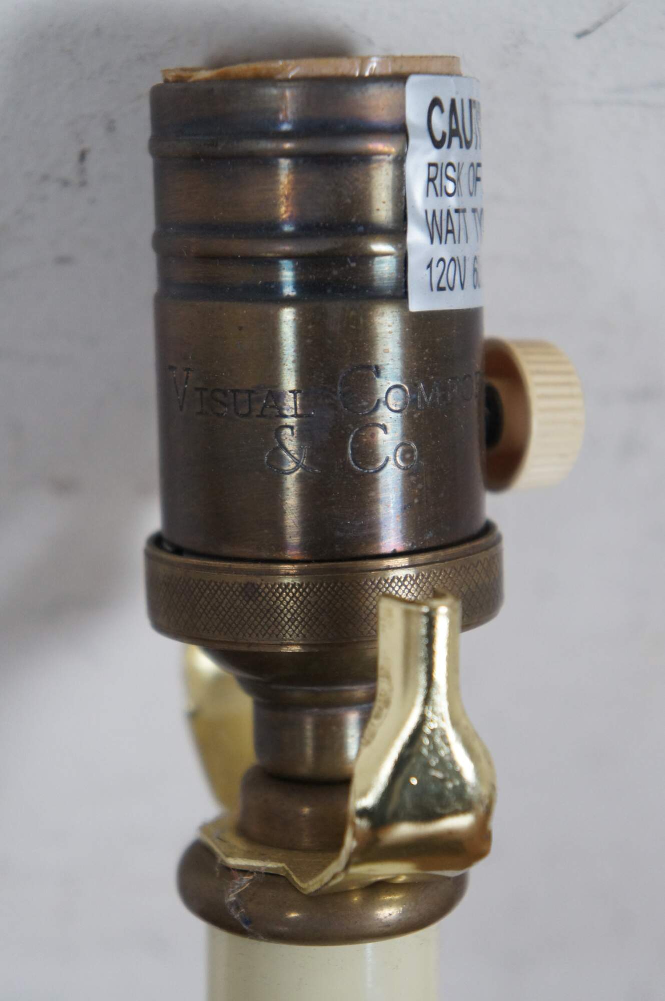 Visual Comfort & Company brass swing arm faux candlestick style wall sconces light, with antique brass finish and matching cord cover.